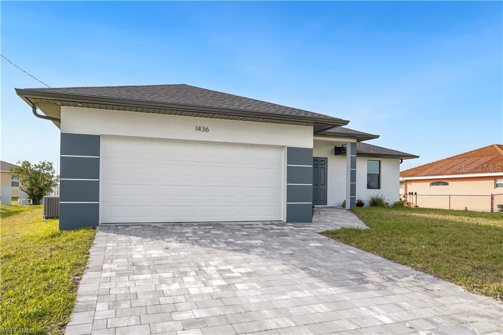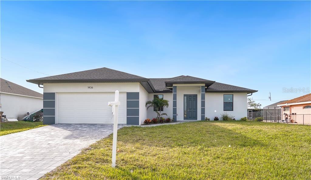 Spectacular 4 Bedroom 2 Bath, and two car garage. CBS New Construction.Home is in a beautiful neighborhood of Cape Coral. This Home features plenty of living room space with High Ceilings and a marvelous Open Floor Plan Kitchen with upgraded cabinets and countertops. The home has a total of 2,388 square feet and 1,658 Living Area Square Feet. All Windows and Doors are top-quality Hurricane impact resistant. The master bedroom is large, with plenty of closet space and a large bathroom. All Rooms are spacious and have excellent storage space. The home's patio features a screened pool and a large backyard. Open concept design is perfect for entertaining and creating lasting memories with your loved ones. The kitchen is a chef's dream, with modern stainless-steel appliances, beautiful counter