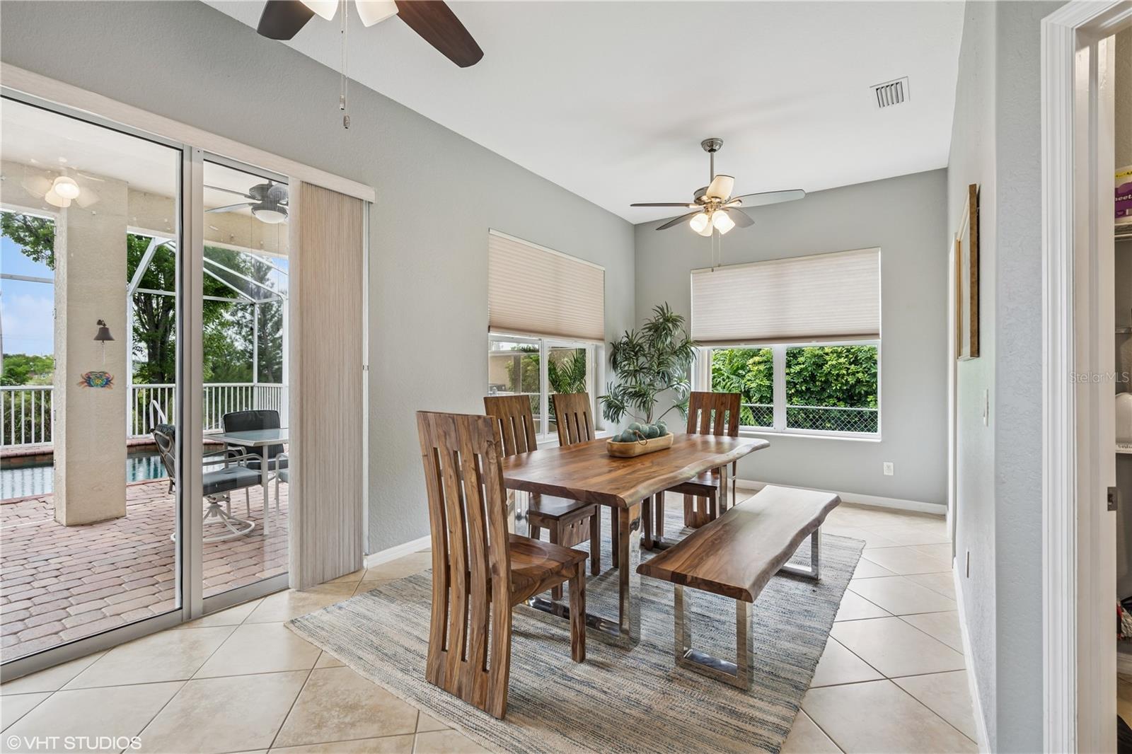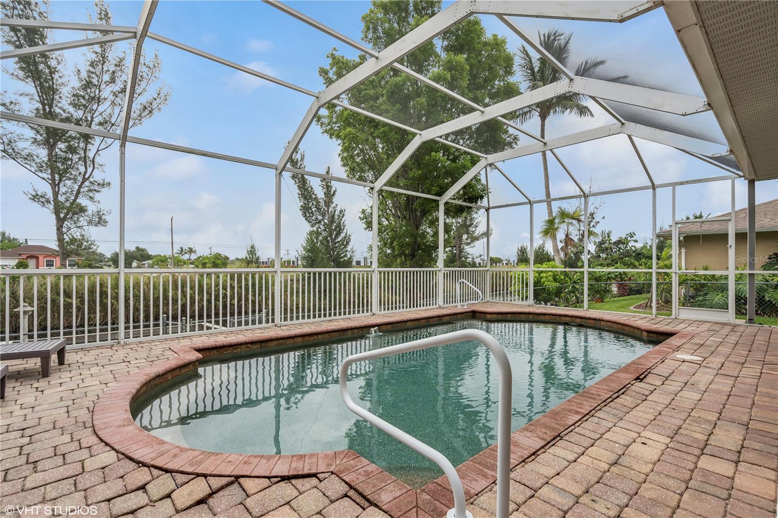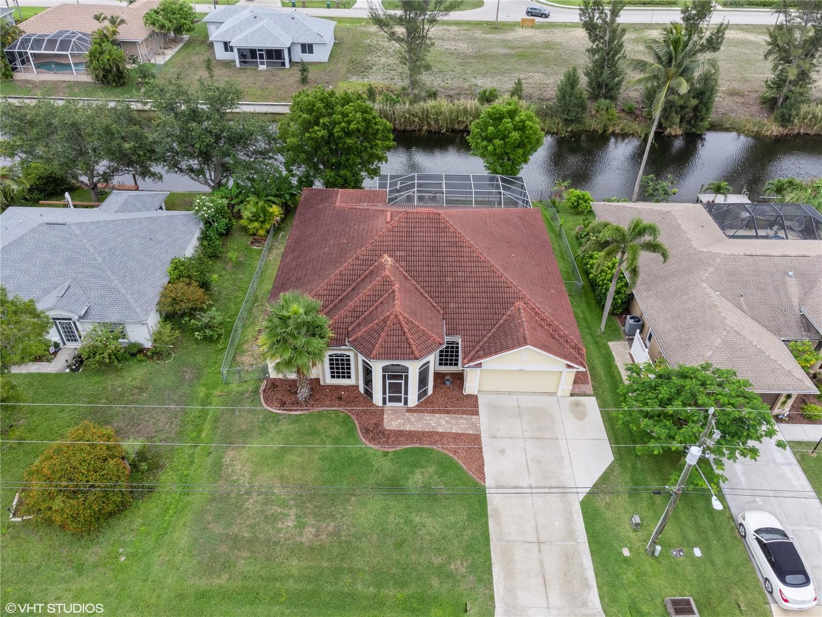 Welcome this Stunning Canal-Front Home with Pool & Outdoor Living in Cape Coral! This beautifully maintained 3-bedroom, 2.5-bath home offers the perfect blend of comfort, style, and functionality, all located in a desirable, flood zone X area (no flood insurance required). Step inside to a spacious open floor plan featuring luxury vinyl plank and tile flooring throughout, providing durability and low maintenance. The heart of the home is perfect for entertaining, with a large living area that flows seamlessly into the dining and kitchen spaces. A dedicated office and bonus play area offer flexibility for all of your lifestyle needs. The primary suite is a private sanctuary, complete with a luxurious en-suite bathroom and an oversized walk-in closet designed for ultimate convenience. Outside, enjoy true Florida living with a screened-in patio featuring a TV setup and cozy ambiance lighting, perfect for year-round gatherings. Take a dip in the in-ground pool, or simply relax and soak in the serene canal views from your private concrete dock—a fisherman's paradise! Some additional features include a relaxing screened in front porch, fully fenced yard, irrigation system, No HOA fees and an elevated lot. This home is a rare gem that combines indoor comfort with exceptional outdoor living. Schedule your private showing today and experience all that Cape Coral has to offer!