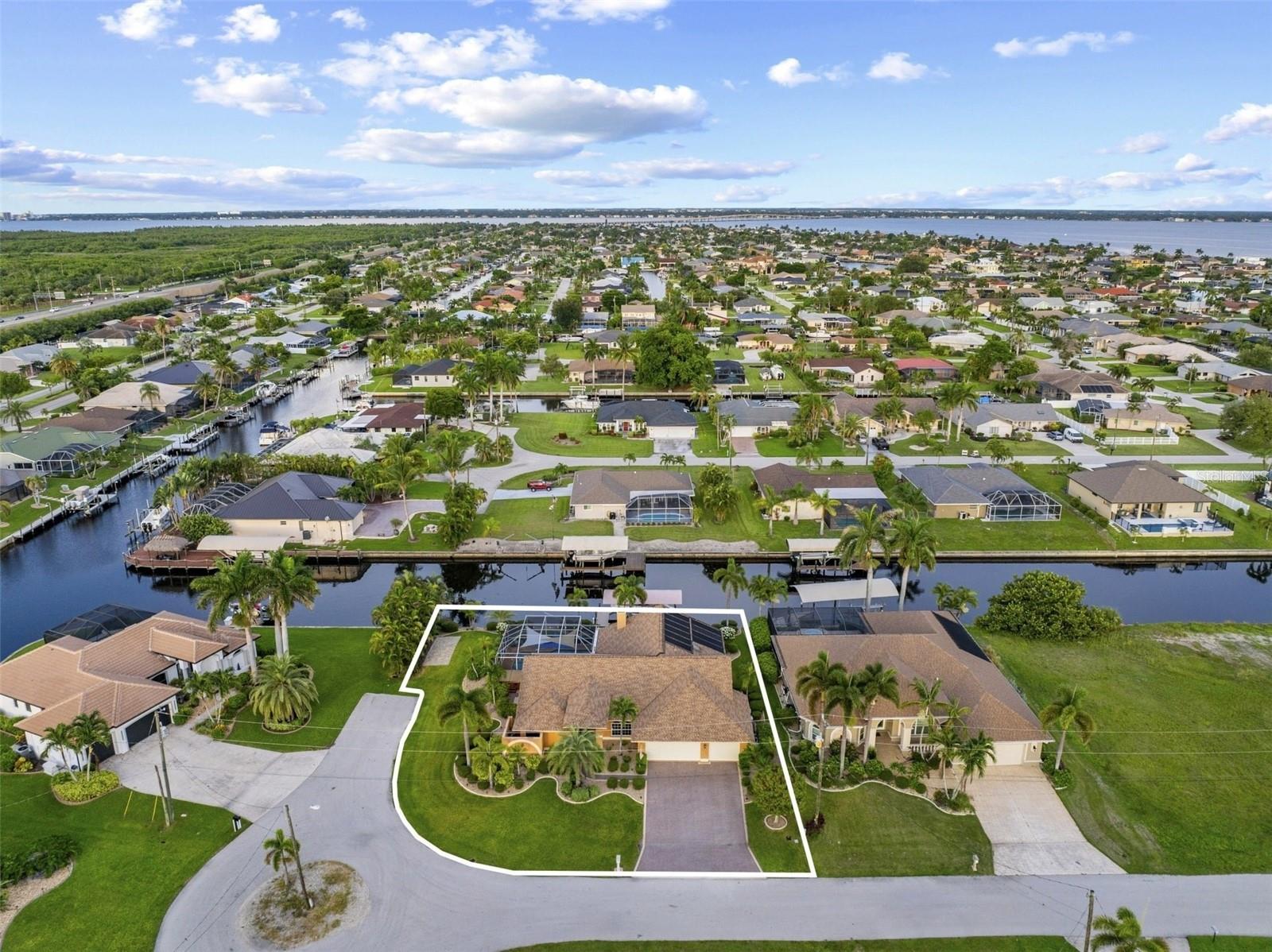Nestled on a sprawling ? acre lot in the prestigious Southeast Cape Coral neighborhood of Gold Coast Estates, this custom-built 3 bedroom, 3 bathroom pool home offers the ultimate blend of architectural craftsmanship and direct Gulf access with no HOA and city utilities with assessments paid. Boasting over 2,500 sq. ft. of living space and nearly 5,500 sq. ft. under roof, this home has been meticulously maintained by its original permanent resident since its construction in 1989. The property provides absolute peace of mind as it is truly hurricane-proof. With zero history of flooding, brand-new impact-resistant glass windows and garage doors supplemented by a whole-house Storm Smart curtain system protecting this investment. The lanai is a reinforced structure that has weathered major storms without damage, ensuring your outdoor living space remains secure. The 3-car garage is equally well-equipped, featuring a generator transfer station and professional epoxy flooring. Designed for the ultimate entertainer, the massive screened lanai features a stunning wood tongue-and-groove ceiling and a large sitting area with space for a TV and dining table. Enjoy spectacular sunrise views from the coveted East rear exposure. The designer saltwater pool is a dream with a new variable-speed pump and new solar panels, complemented by a separate 6-person freestanding spa. The pool bathroom is ideally positioned for entertaining, ensuring a delightful and seamless indoor-outdoor experience. Boaters will appreciate the 8-minute direct sailboat access to the river, a custom covered dock with an 8,000 lb recently upgraded lift, and additional paved boat parking on the side of the home. The backyard includes an upgraded 8 zone sprinkler system with misters and the paver driveway enhances the home’s impressive curb appeal. The interior exudes elegance with a grand entrance featuring formal living and dining areas that offer fantastic views and serve as a perfect flex space for a home office. The family room is anchored by a warm fireplace, creating a cozy gathering space for evening entertaining. The heart of the home is the kitchen featuring LG ThinQ refrigerator, expansive granite counters, custom cabinetry, and a massive organized pantry. Retreat to the huge primary suite, a true tropical oasis featuring space for a private sitting area with spectacular views of the canal and direct pool access. The primary bathroom features a private garden and large soaking tub, creating a serene escape. Guest bedrooms are generously sized and include huge walk-in closets, with custom cabinetry in bathrooms. For storage, the enormous loft-style attic offers standing height, making maintenance easy and providing abundant space. For added longevity, the home has been recently upgraded with all-new plumbing throughout and features a 2021 roof. This is the ultimate blend of craftsmanship, comfort, and coastal lifestyle—move-in ready and impeccably maintained. Seller is motivated. Custom furniture and the boat are negotiable.