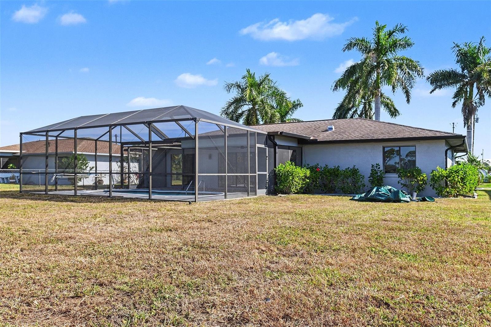 Welcome to this beautifully maintained, move-in ready 3 bed two bath single-family home offering the best of Southwest Florida living. Situated with the Palmetto-Pine Country Club located directly behind the property, enjoy peaceful golf course views and added privacy—no rear neighbors. Step outside to your enclosed, screened-in pool, perfect for year-round enjoyment, entertaining, or relaxing in the Florida sunshine. Inside, the home features a bright, open layout with spacious living areas, abundant natural light, and a seamless indoor-outdoor flow ideal for the Cape Coral lifestyle. Located in the heart of Cape Coral, known for its wide canals, palm-lined streets, and laid-back coastal charm, this property offers convenient access to shopping, dining, beaches, boating, parks, and top-rated schools. Cape Coral is celebrated for its waterfront living, warm climate, vibrant community, and proximity to Fort Myers and Southwest Florida International Airport. Whether you’re looking for a primary residence, seasonal retreat, or investment opportunity, this home delivers comfort, location, and lifestyle.