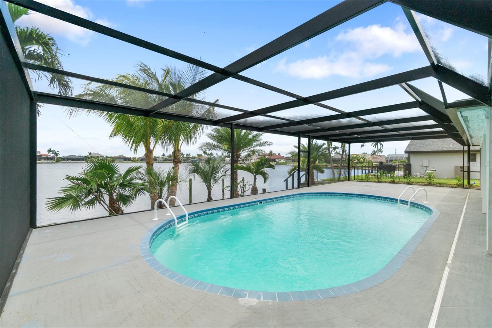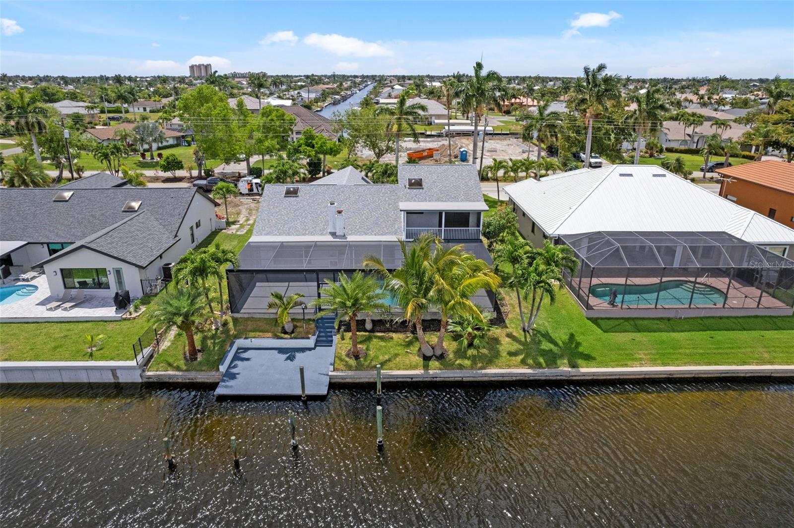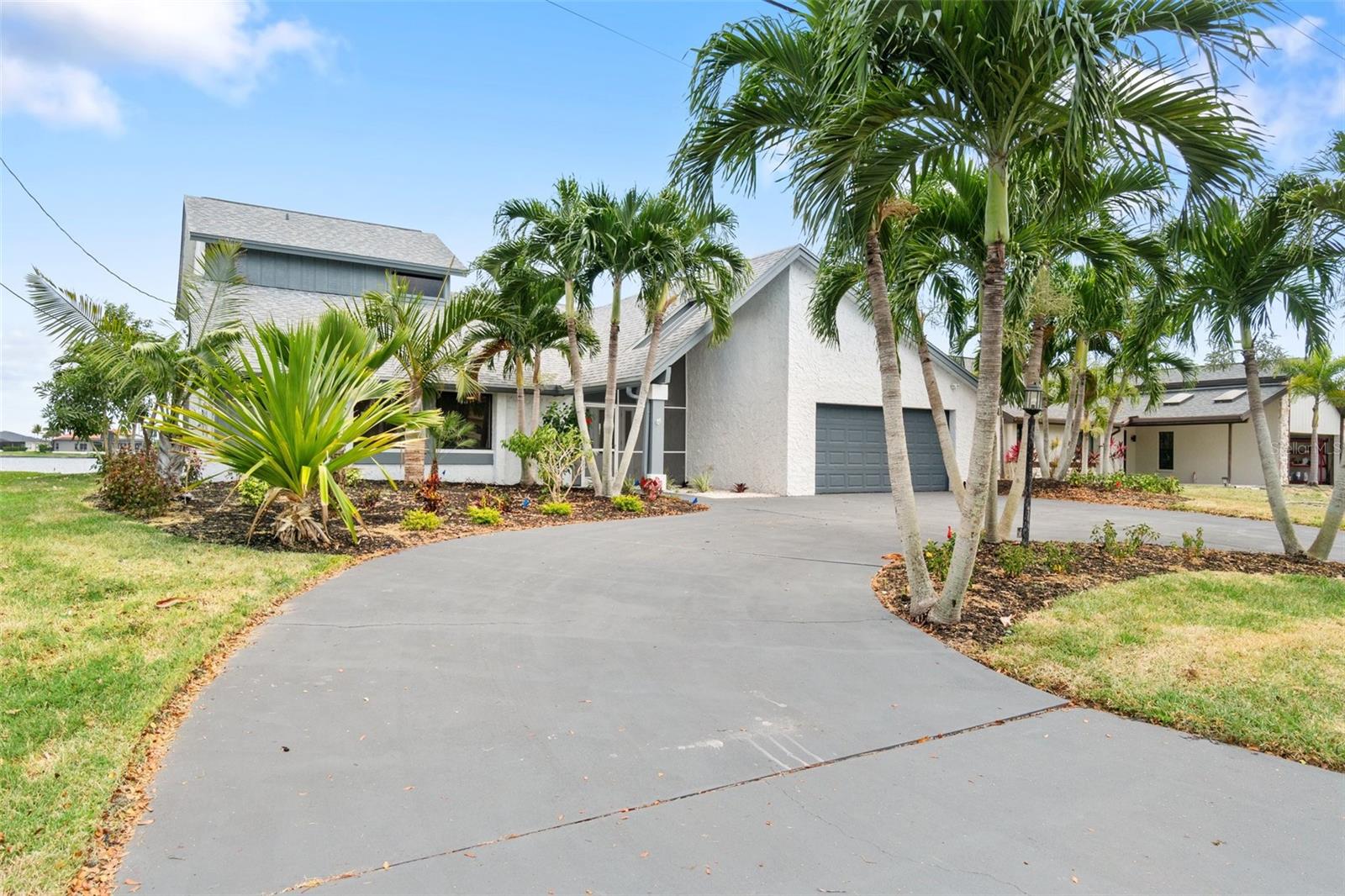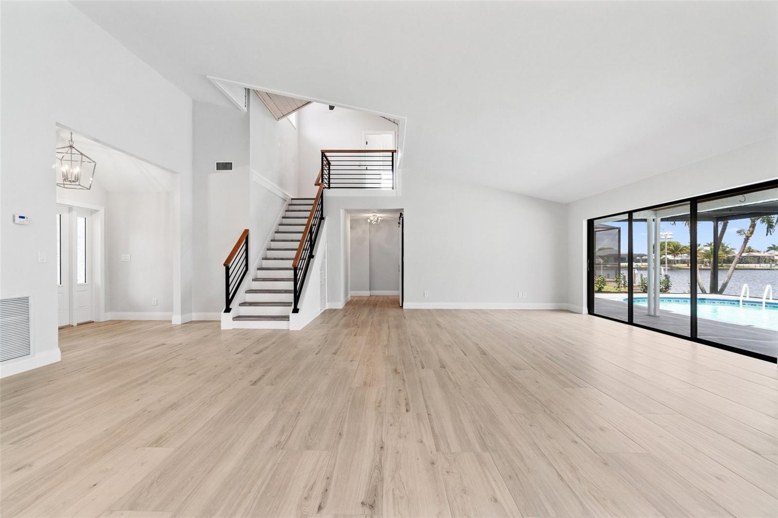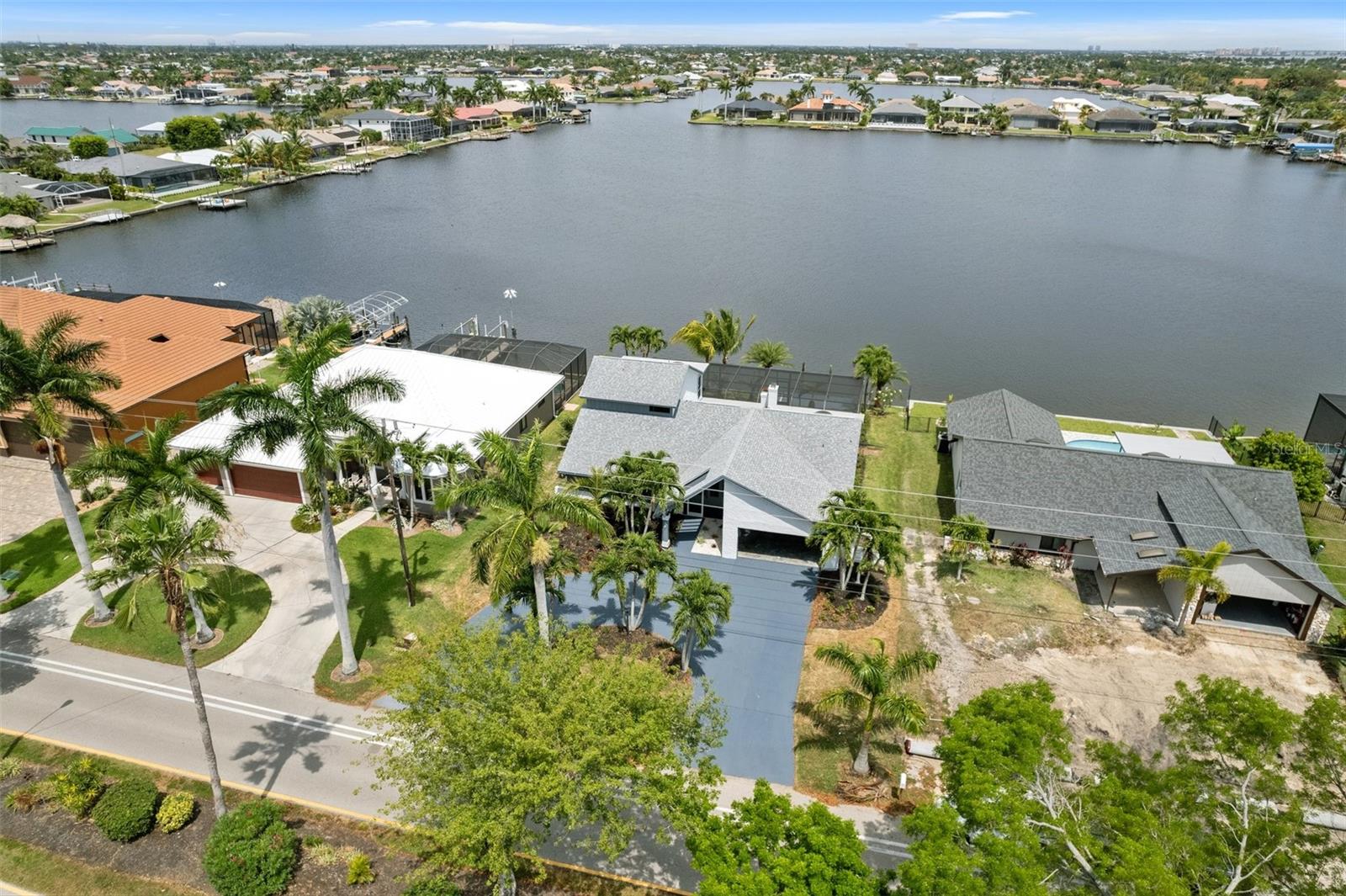Looking for that WOW factor... this is your home! Amazing remodel on this home took over a year to complete and you can tell the attention to detail that went into this home. Starting with the double front doors leading into the home which has 5 total sliders in main living area showcasing the amazing waterfront view out back! The 18-foot-long island with waterfall countertops really stands out along with the amazing full tiled fireplace. This fireplace has more options than most cars! Every inch of this home has been remodeled and looks amazing. The 4 bedrooms offer ample space, and all have built in closet systems that scream luxury! The second-floor owner's suite is equipped with a great screened balcony to sit out and enjoy the views and sunrises. This home is a must see just for the views. The home is located on one of the 8 lakes in SW Cape Coral. Quick access out to open water with great views of million-dollar homes along the way. Out to open water in under 25 minutes. Located within Short distance to great shopping and restaurants in Cape Harbour and Marina Village! Ready to settle down and watch dolphins and manatees in your backyard? This home also has a BRAND-NEW pool cage and Roof! New AC! Come live the easy life in beautiful Cape Coral. Call today for your private showing of this amazing home!