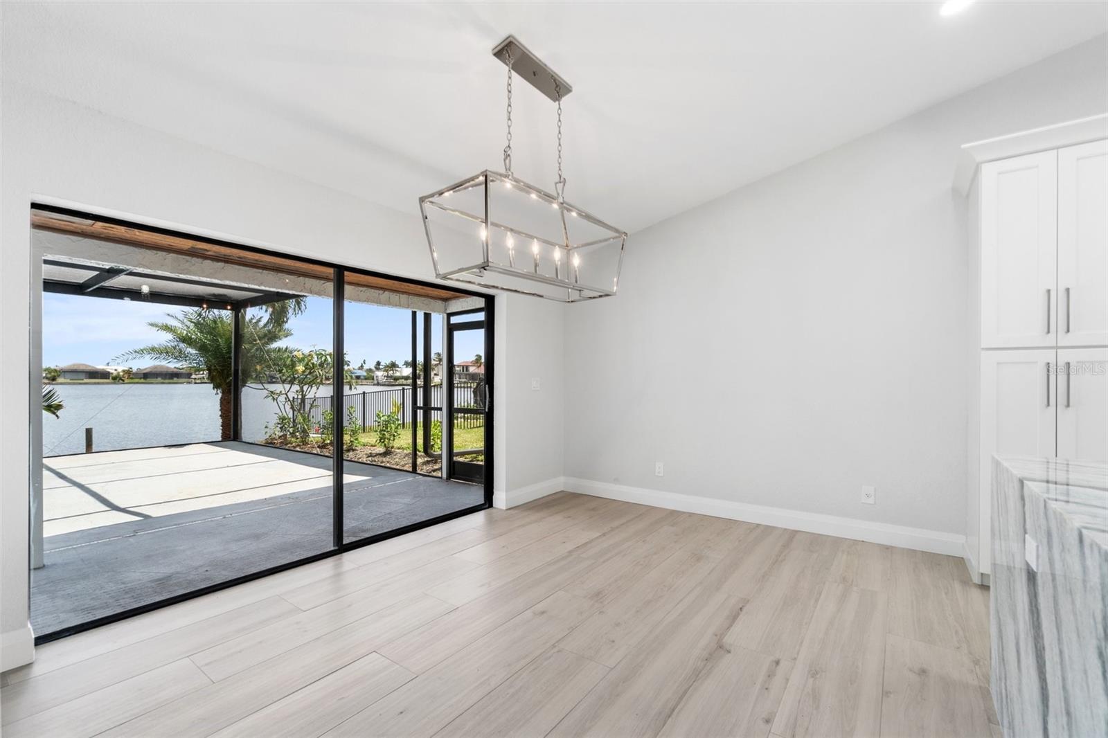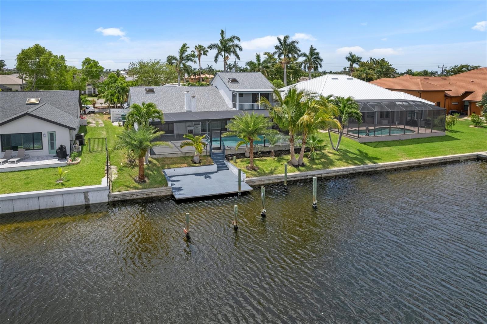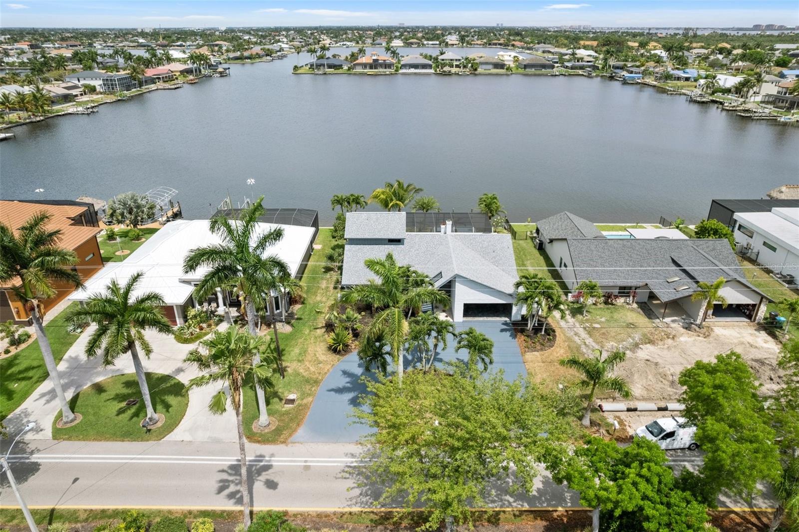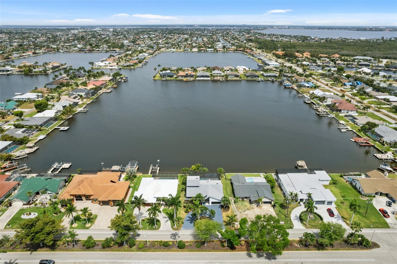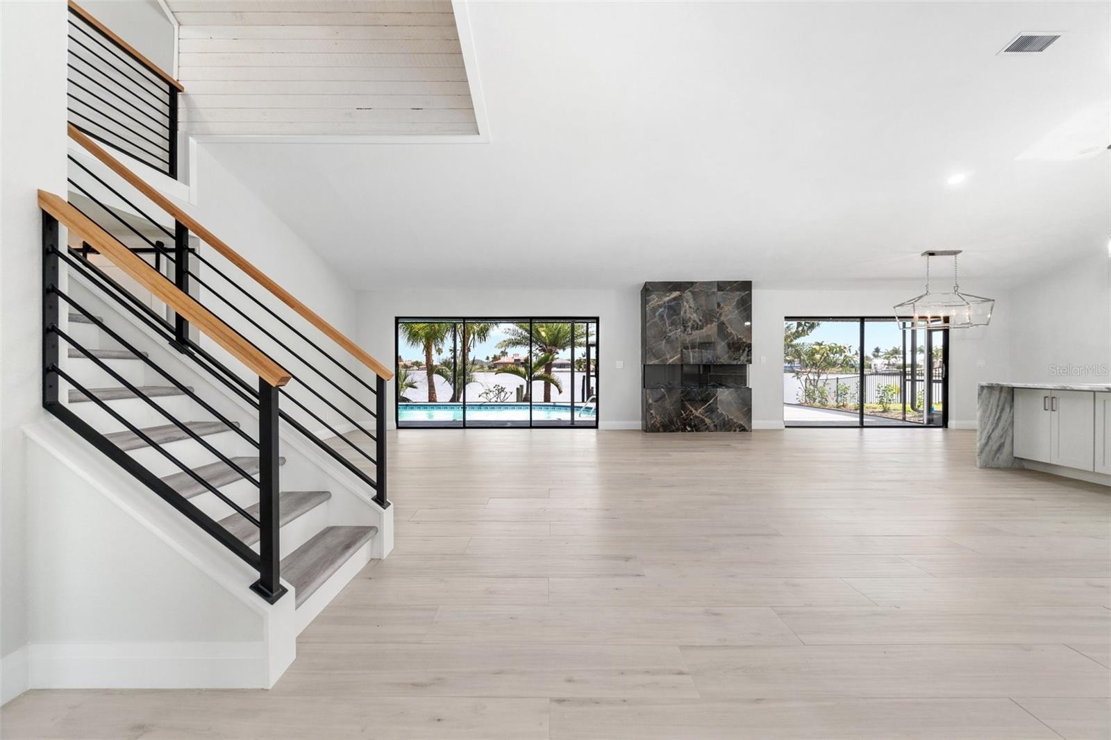 Looking for that WOW factor... this is your home! Amazing remodel on this home took over a year to complete and you can tell the attention to detail that went into this home. Starting with the double front doors leading into the home which has 5 total sliders in main living area showcasing the amazing waterfront view out back! The 18-foot-long island with waterfall countertops really stands out along with the amazing full tiled fireplace. This fireplace has more options than most cars! Every inch of this home has been remodeled and looks amazing. The 4 bedrooms offer ample space, and all have built in closet systems that scream luxury! The second-floor owner's suite is equipped with a great screened balcony to sit out and enjoy the views and sunrises. This home is a must see just for the views. The home is located on one of the 8 lakes in SW Cape Coral. Quick access out to open water with great views of million-dollar homes along the way. Out to open water in under 25 minutes. Located within Short distance to great shopping and restaurants in Cape Harbour and Marina Village! Ready to settle down and watch dolphins and manatees in your backyard? This home also has a BRAND-NEW pool cage and Roof! New AC! Come live the easy life in beautiful Cape Coral. Call today for your private showing of this amazing home!