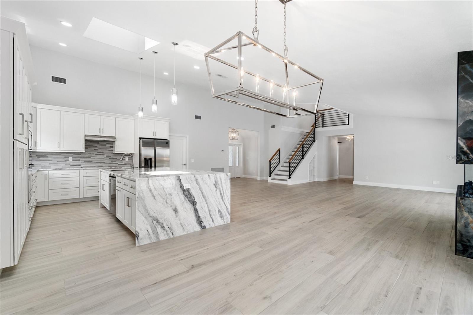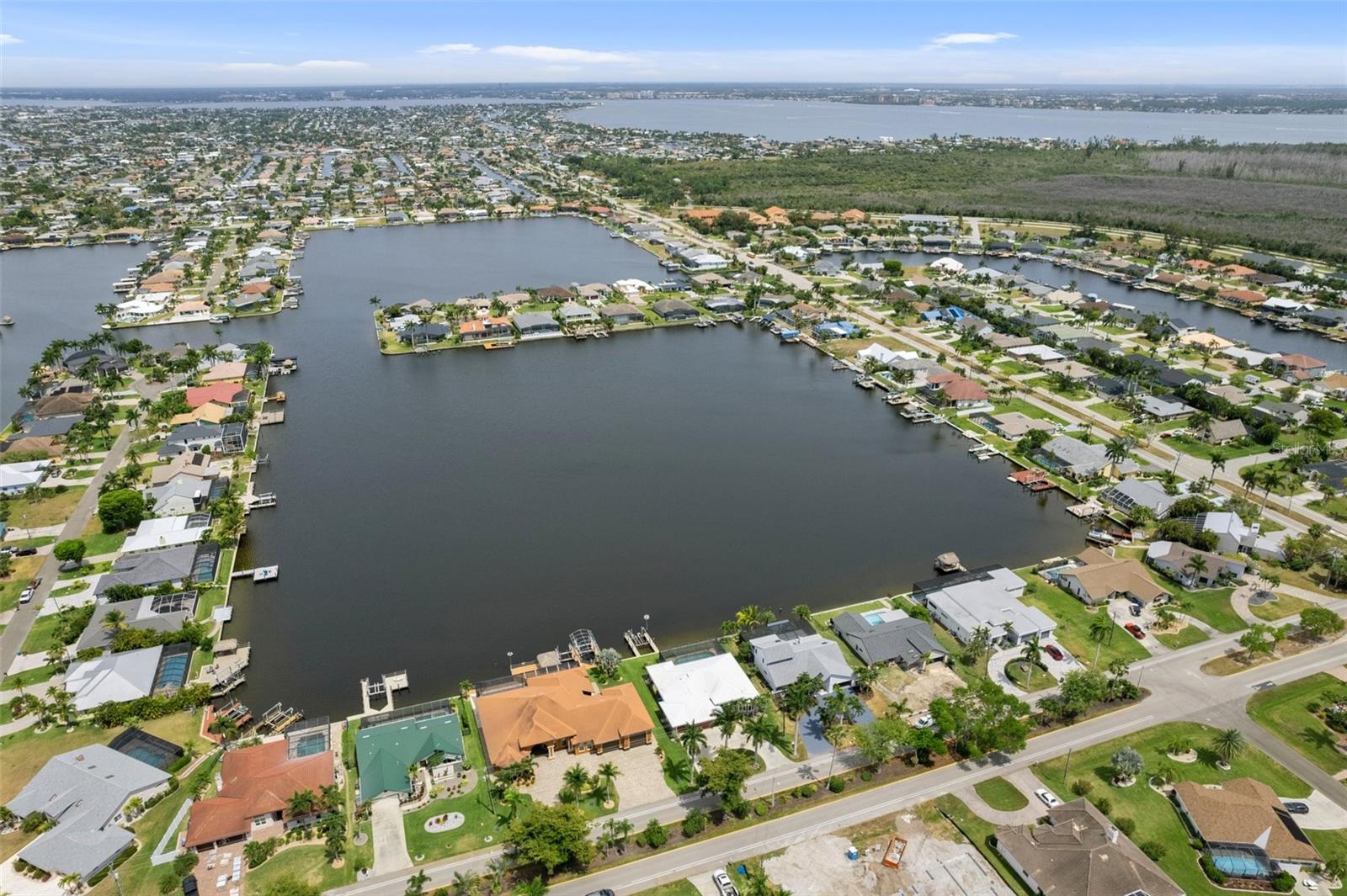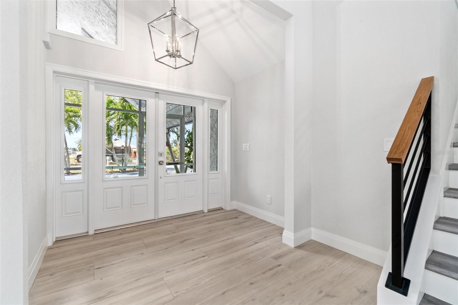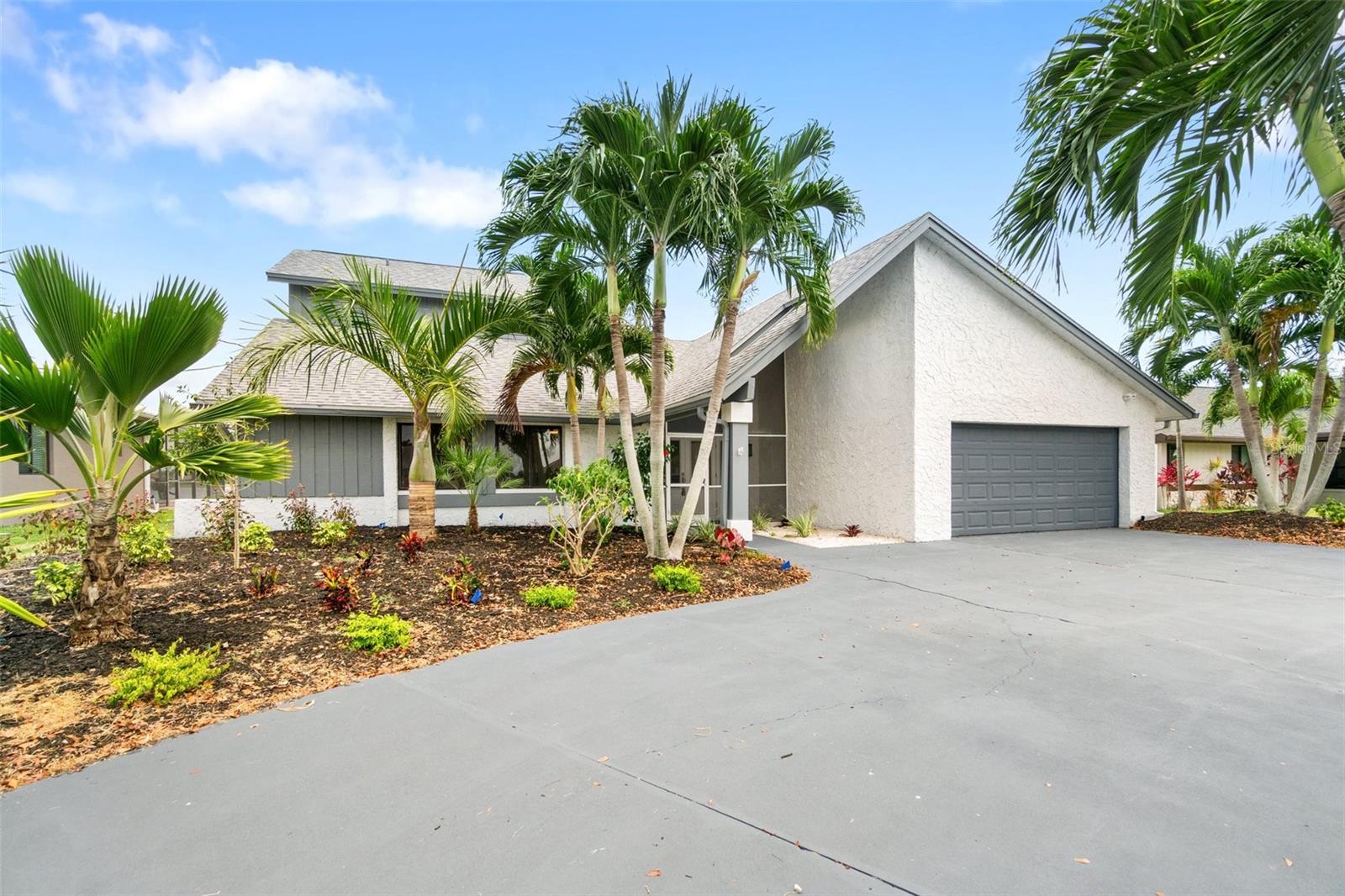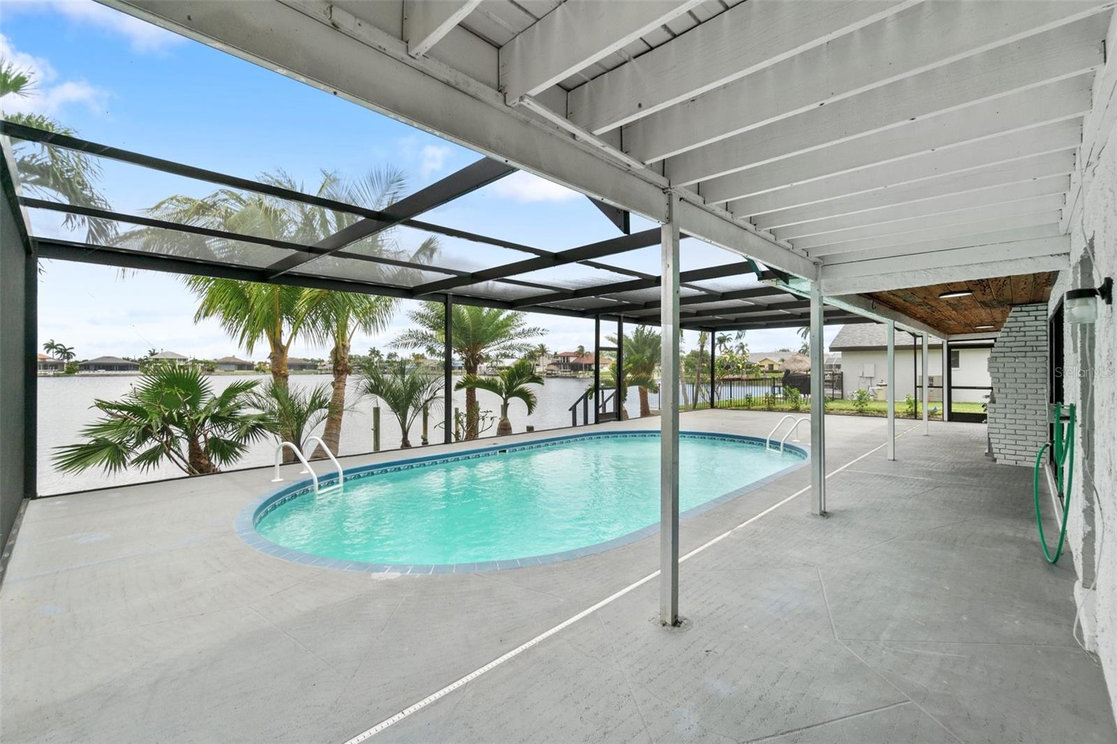 Looking for that WOW factor... this is your home! Amazing remodel on this home took over a year to complete and you can tell the attention to detail that went into this home. Starting with the double front doors leading into the home which has 5 total sliders in main living area showcasing the amazing waterfront view out back! The 18-foot-long island with waterfall countertops really stands out along with the amazing full tiled fireplace. This fireplace has more options than most cars! Every inch of this home has been remodeled and looks amazing. The 4 bedrooms offer ample space, and all have built in closet systems that scream luxury! The second-floor owner's suite is equipped with a great screened balcony to sit out and enjoy the views and sunrises. This home is a must see just for the views. The home is located on one of the 8 lakes in SW Cape Coral. Quick access out to open water with great views of million-dollar homes along the way. Out to open water in under 25 minutes. Located within Short distance to great shopping and restaurants in Cape Harbour and Marina Village! Ready to settle down and watch dolphins and manatees in your backyard? This home also has a BRAND-NEW pool cage and Roof! New AC! Come live the easy life in beautiful Cape Coral. Call today for your private showing of this amazing home!