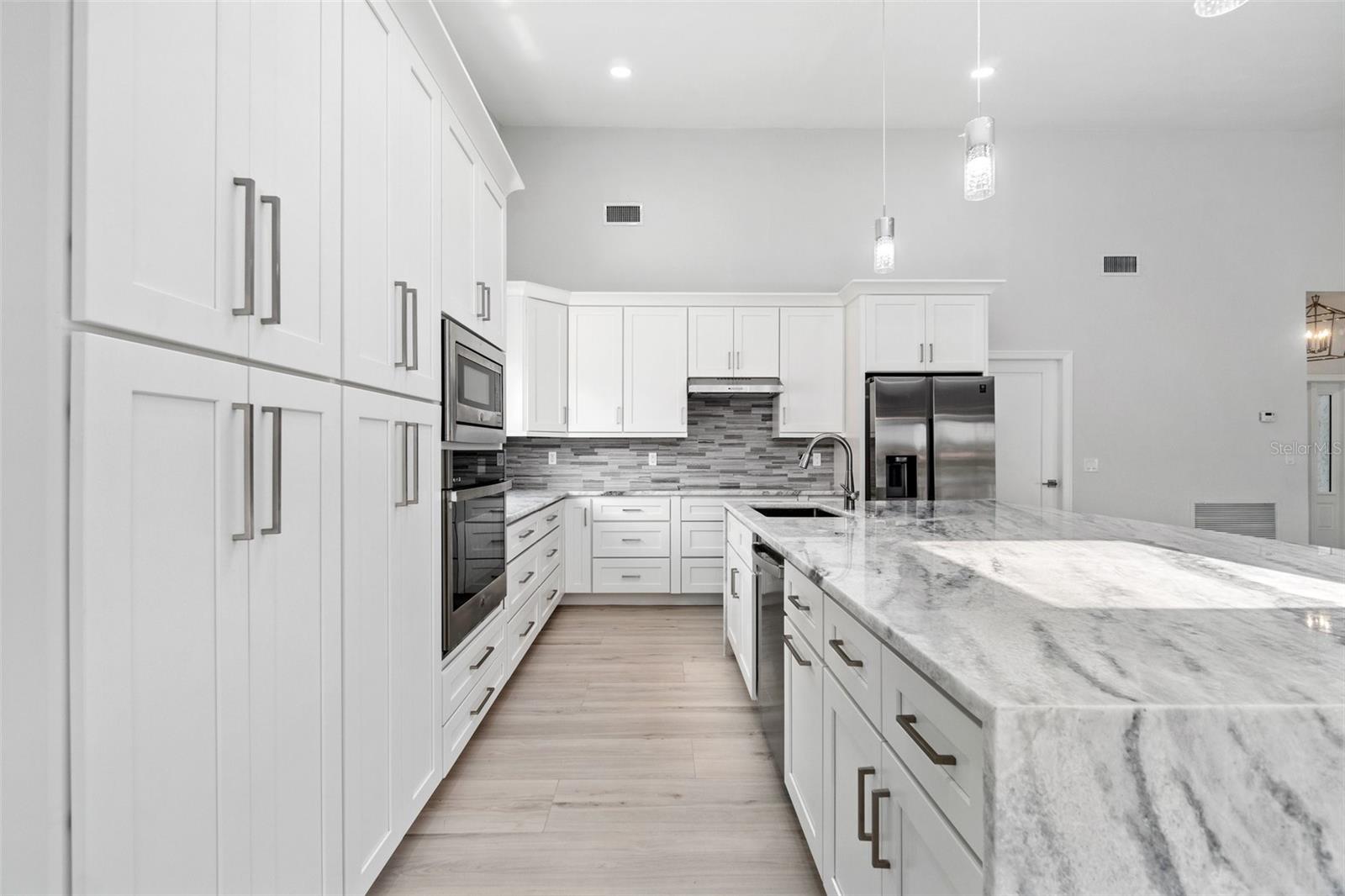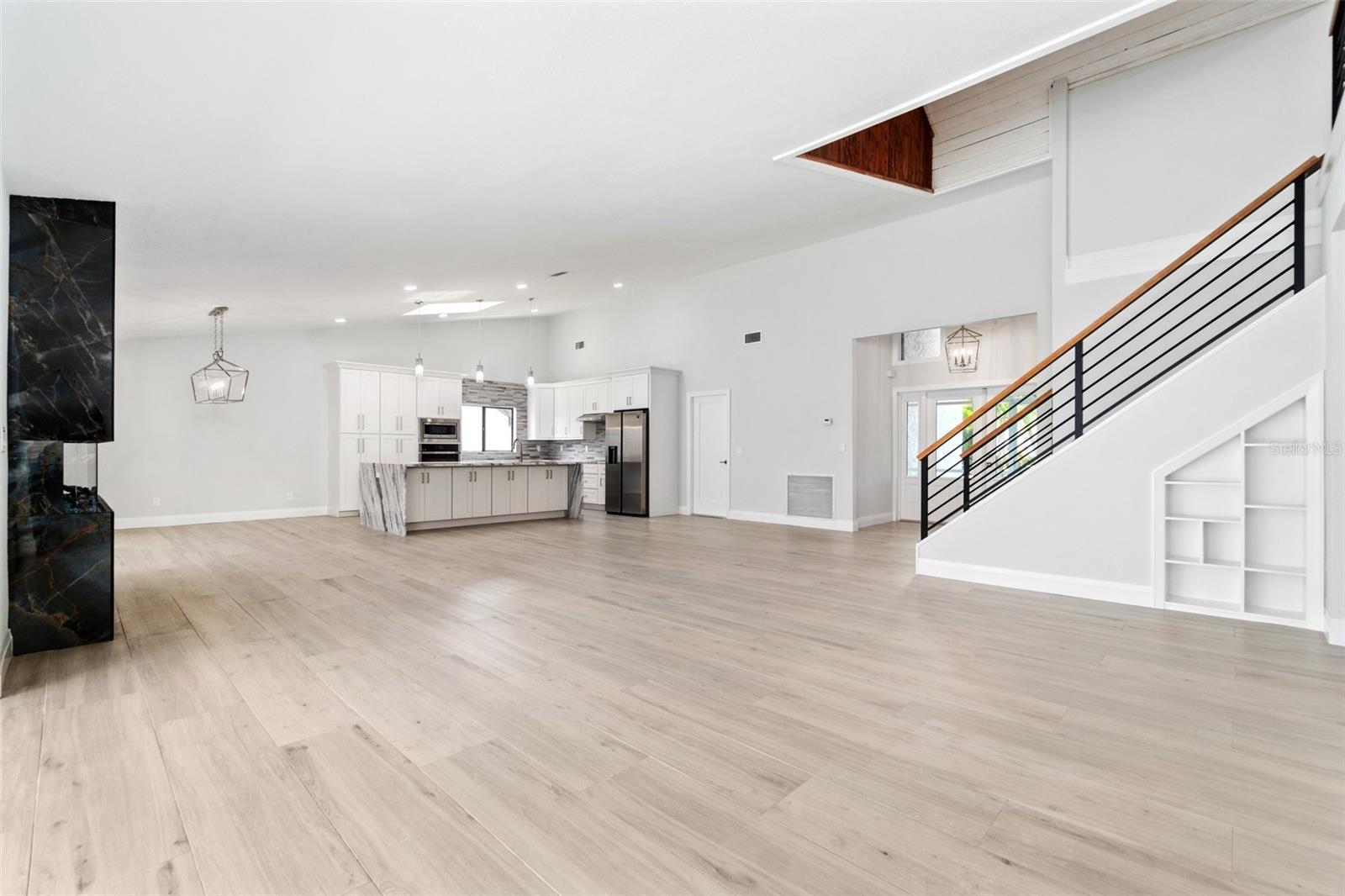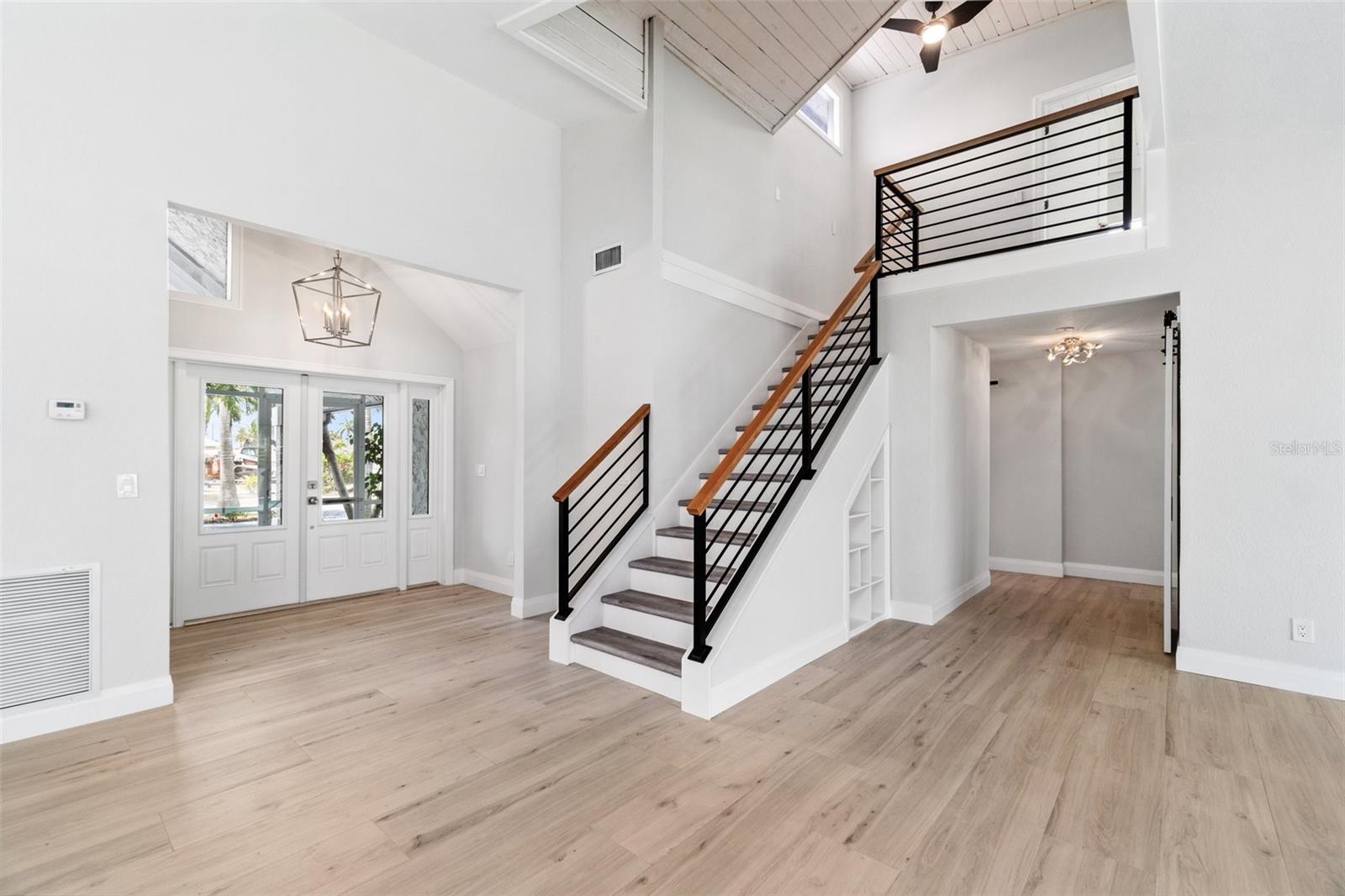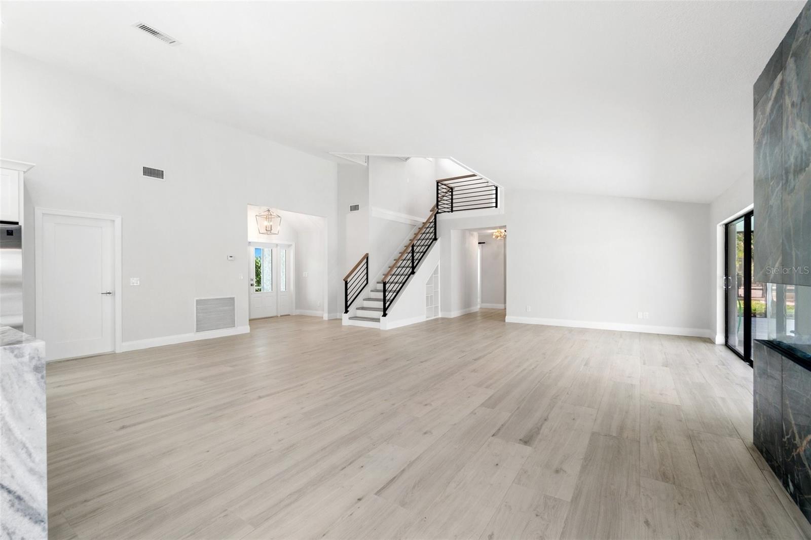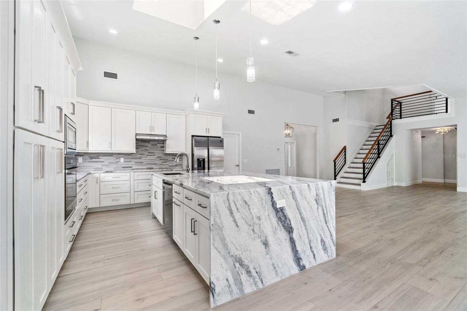 Looking for that WOW factor... this is your home! Amazing remodel on this home took over a year to complete and you can tell the attention to detail that went into this home. Starting with the double front doors leading into the home which has 5 total sliders in main living area showcasing the amazing waterfront view out back! The 18-foot-long island with waterfall countertops really stands out along with the amazing full tiled fireplace. This fireplace has more options than most cars! Every inch of this home has been remodeled and looks amazing. The 4 bedrooms offer ample space, and all have built in closet systems that scream luxury! The second-floor owner's suite is equipped with a great screened balcony to sit out and enjoy the views and sunrises. This home is a must see just for the views. The home is located on one of the 8 lakes in SW Cape Coral. Quick access out to open water with great views of million-dollar homes along the way. Out to open water in under 25 minutes. Located within Short distance to great shopping and restaurants in Cape Harbour and Marina Village! Ready to settle down and watch dolphins and manatees in your backyard? This home also has a BRAND-NEW pool cage and Roof! New AC! Come live the easy life in beautiful Cape Coral. Call today for your private showing of this amazing home!