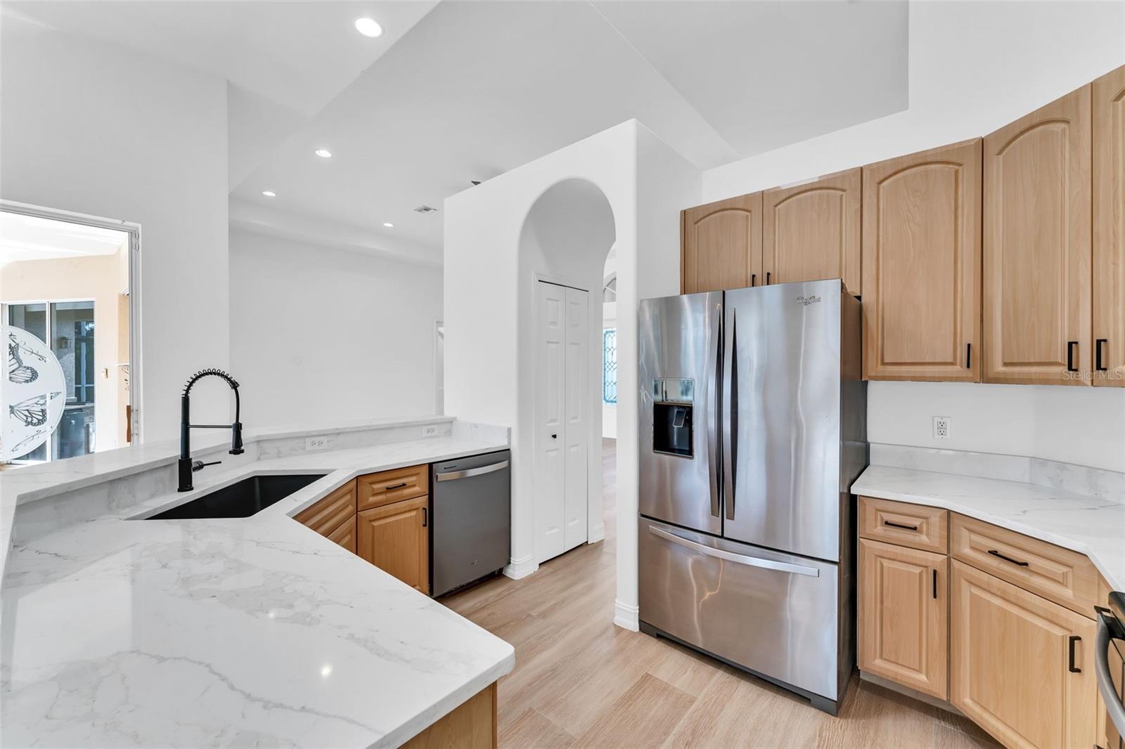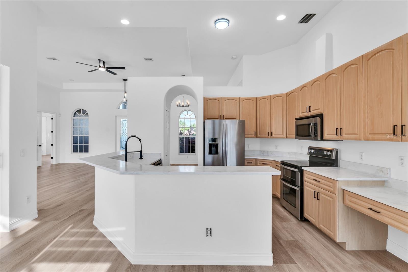 Experience waterfront luxury in this fully upgraded 4-bedroom, 2.5-bath Cape Coral home! Featuring brand-new flooring and stunning quartz countertops throughout the kitchen and all bathrooms, this home offers modern elegance and comfort with high ceillings. Enjoy Florida living at its finest with a private pool, hot tub, canal access to the Gulf and dock with covered boat lift—perfect for boating or relaxing by the water. No HOA restrictions give you the freedom to truly make it your own. Don’t miss this rare gem on the canal that has not flooded!