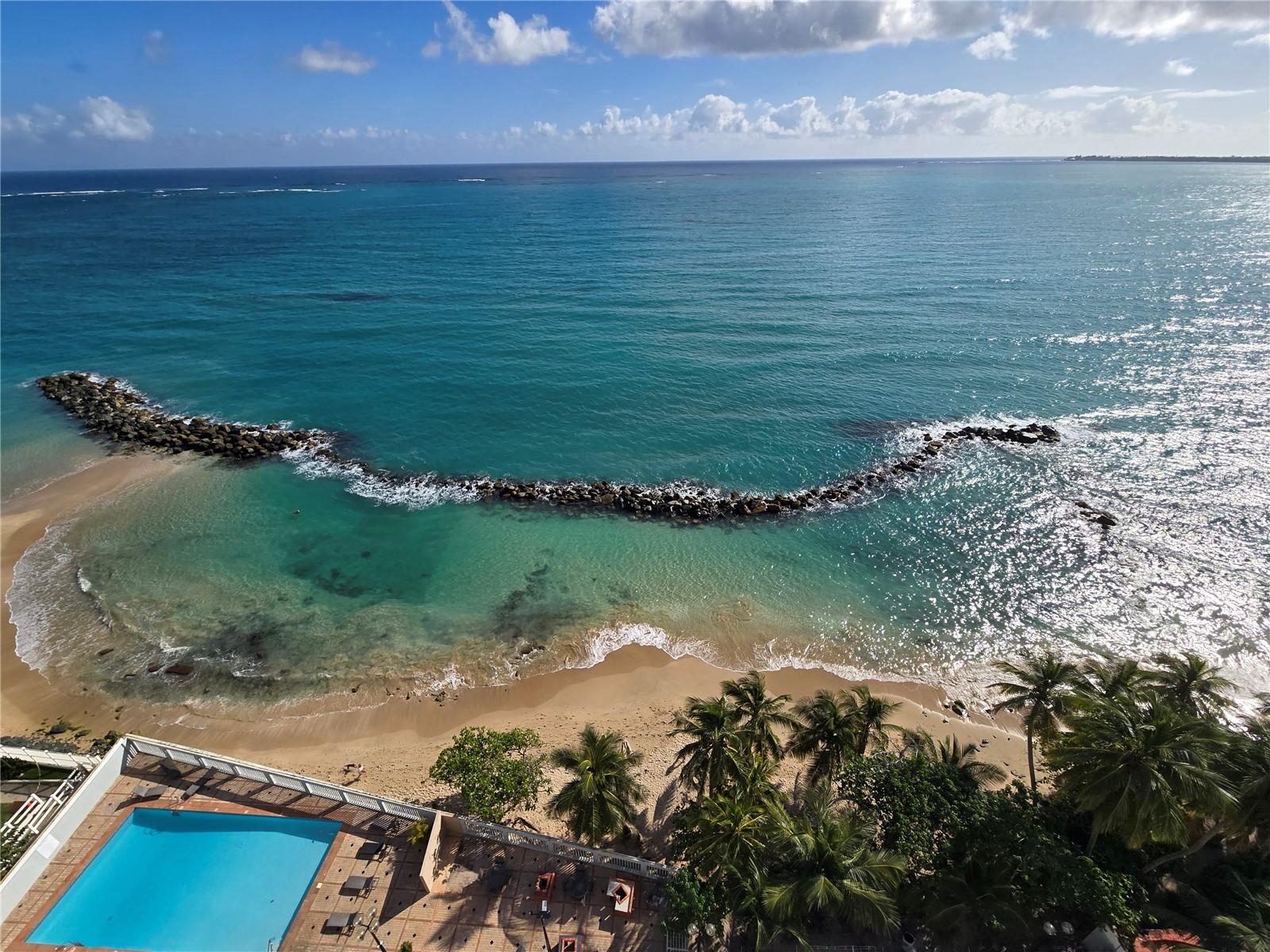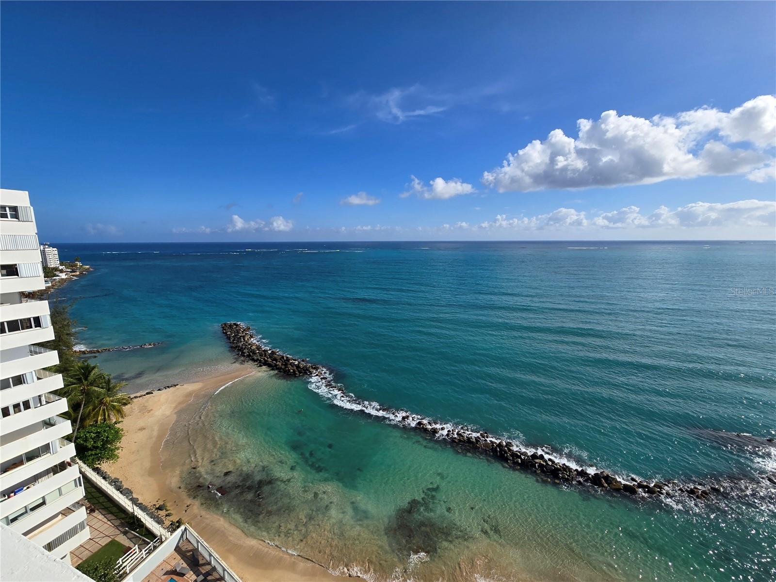 A rare opportunity to acquire a high-floor residence at The Galaxy Condominium, set directly on Isla Verde Beach — consistently ranked among the world's top ten beaches. Units with these breathtaking 180-degree panoramic ocean views seldom come to market. An added advantage unique to this building is a man-made breakwater that creates a year-round natural shallow pool ideal for families and young swimmers, while the full expanse of Isla Verde's two-mile open shoreline remains just steps away. Thoughtfully appointed amenities include a pool and outdoor grilling area. Nestled in a vibrant pedestrian corridor abundant with diverse restaurants and eateries, and just minutes from Luis Muñoz Marín International Airport and Old San Juan. Island living at its finest.