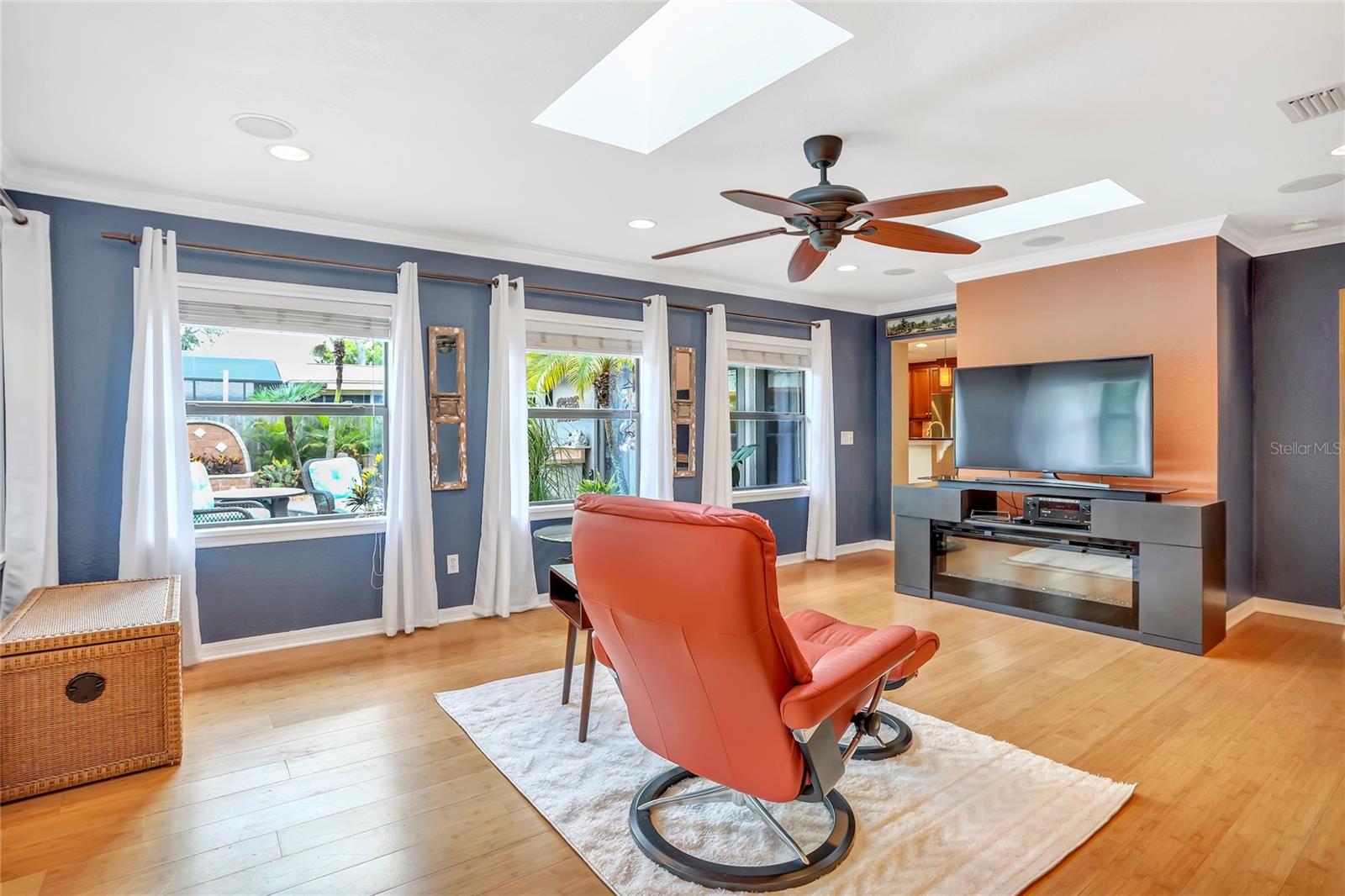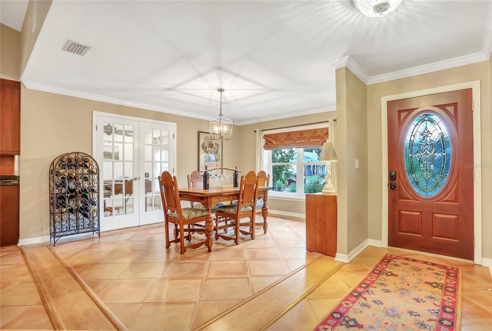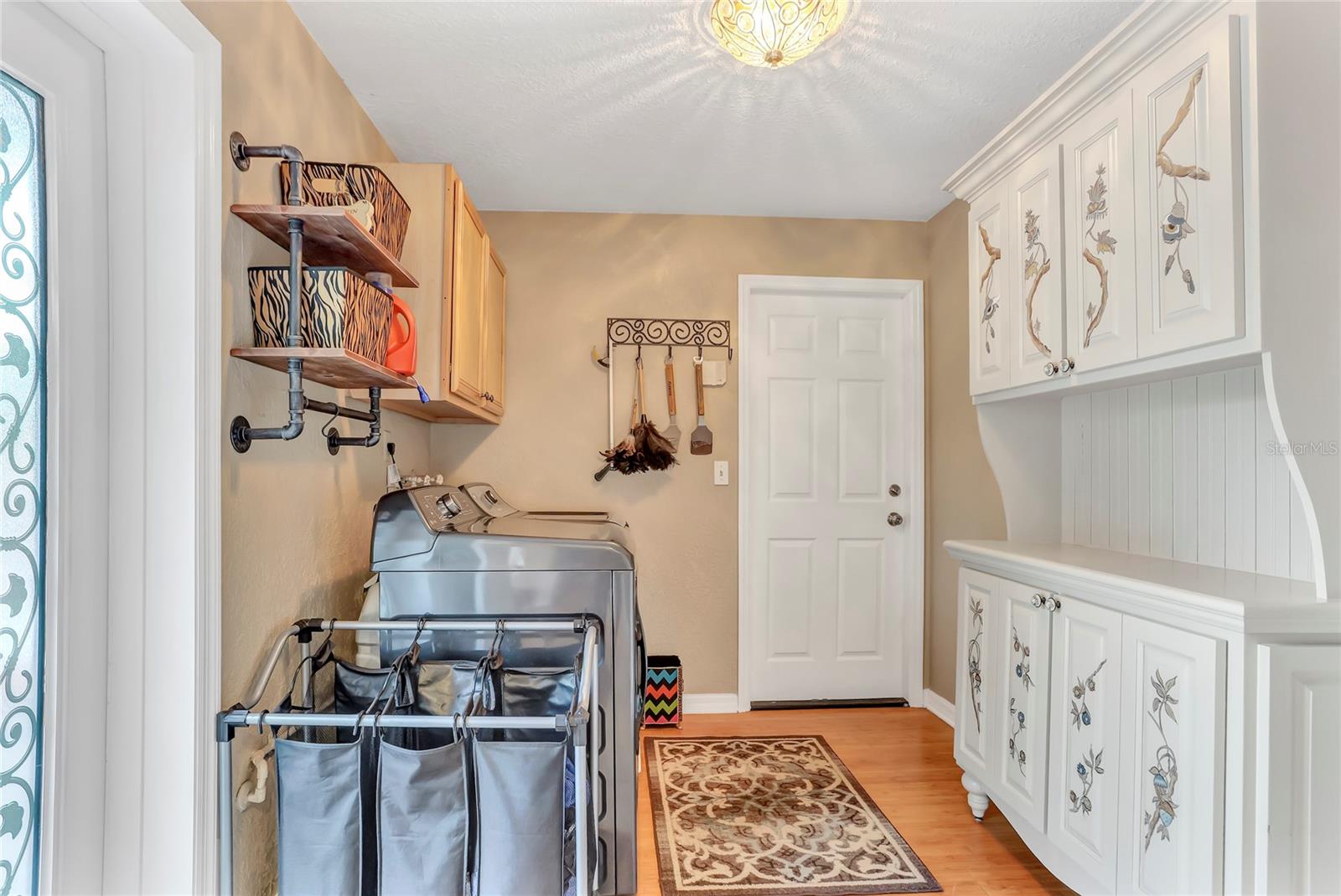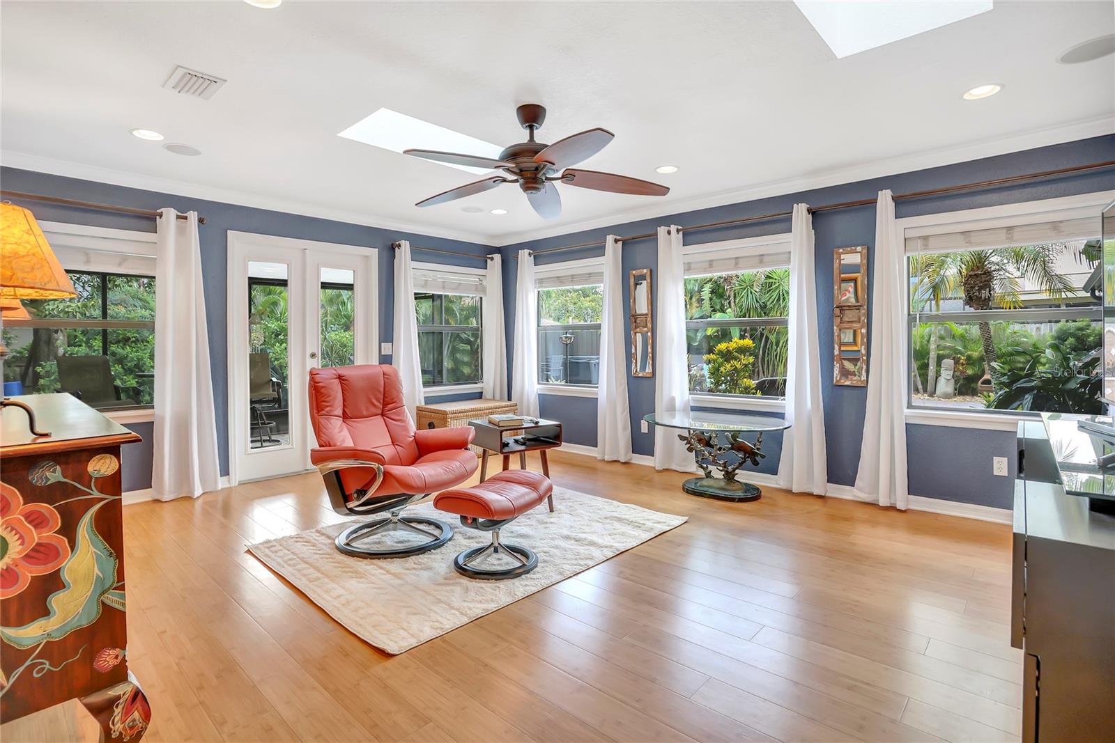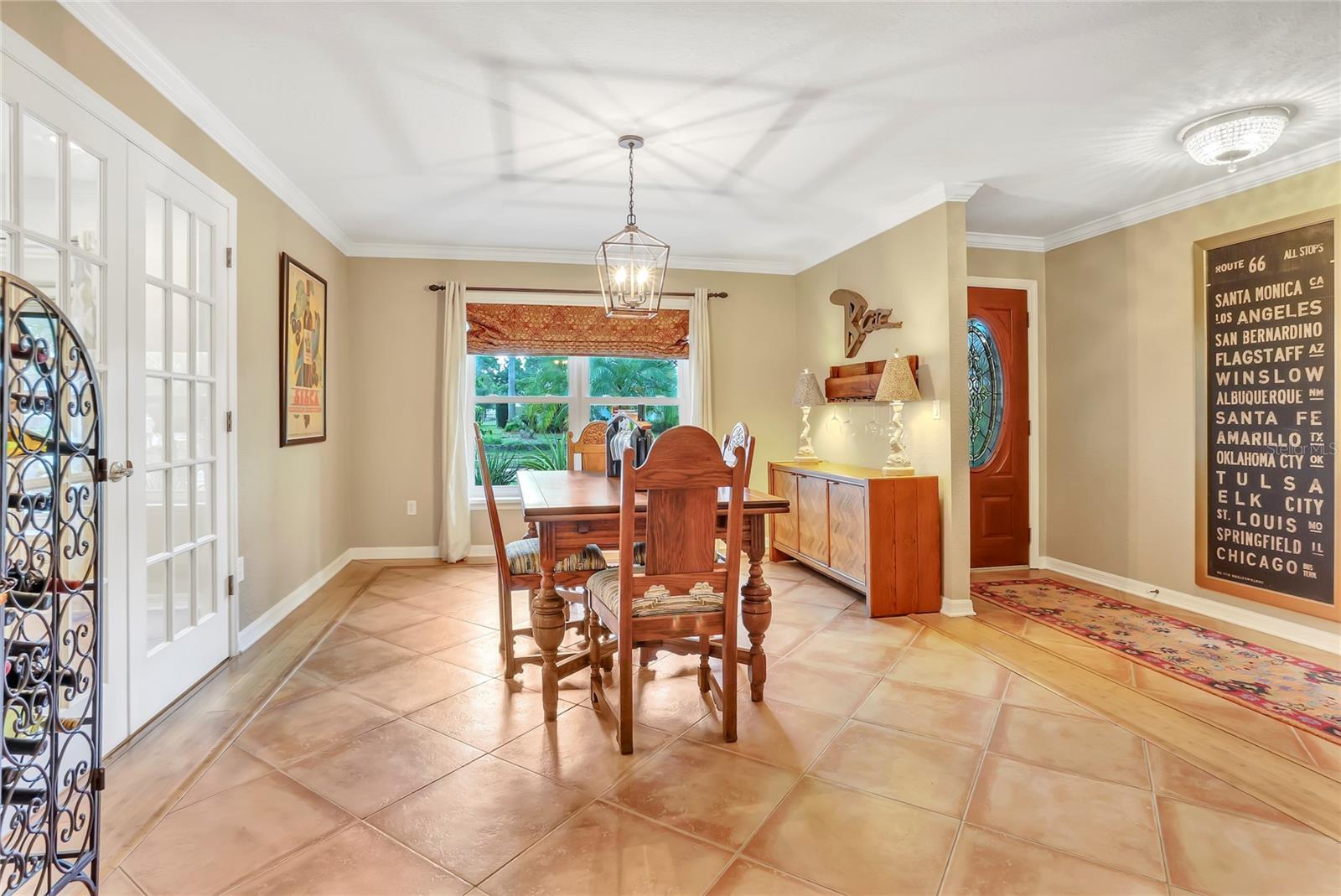 Your PERSONAL OASIS and incredible home await you! Expect to be impressed as you enter and are welcomed by an open floor plan with high ceilings, crown molding, tile floors, brick fireplace, remodeled kitchen to include brand new refrigerator, cherry wood cabinets, granite countertops, and SS appliances. Private home office off the dining room, with glass French doors, allows you to work in quiet with plenty of natural light. A spacious and separate family room/sunroom provides another area for large gatherings for family and friends. Recent renovations to the primary bathroom include ceramic wood-like tile floors, dual sinks and pass through shower off a very large primary bedroom with walk-in closet. Plenty of storage space not only in the oversized garage with built-in workshop but also the large indoor laundry room to include washer and dryer. If that’s not enough, step outside to your entertainer’s delight! Beautiful brick paver patio and walkways, lush landscaping and tropical setting where you can enjoy your recently resurfaced pool with deck jets, new Polaris, surround sound system (that also includes the living room, family room and garage on their own zones), new outdoor grill and a Hot Springs hot tub that is constantly cleaning on its own! A covered screened porch gives you a break from the sun and to get out of the rain and outdoor shed provides a place for all your tools. Roof (2022), AC (2015), Water Heater (2015), replumbed with PVC, newer windows and new gutters. Located within an active, city owned golf course community where you can see wild peacocks on your evening walks! Don’t pass on this home – you won’t be disappointed!