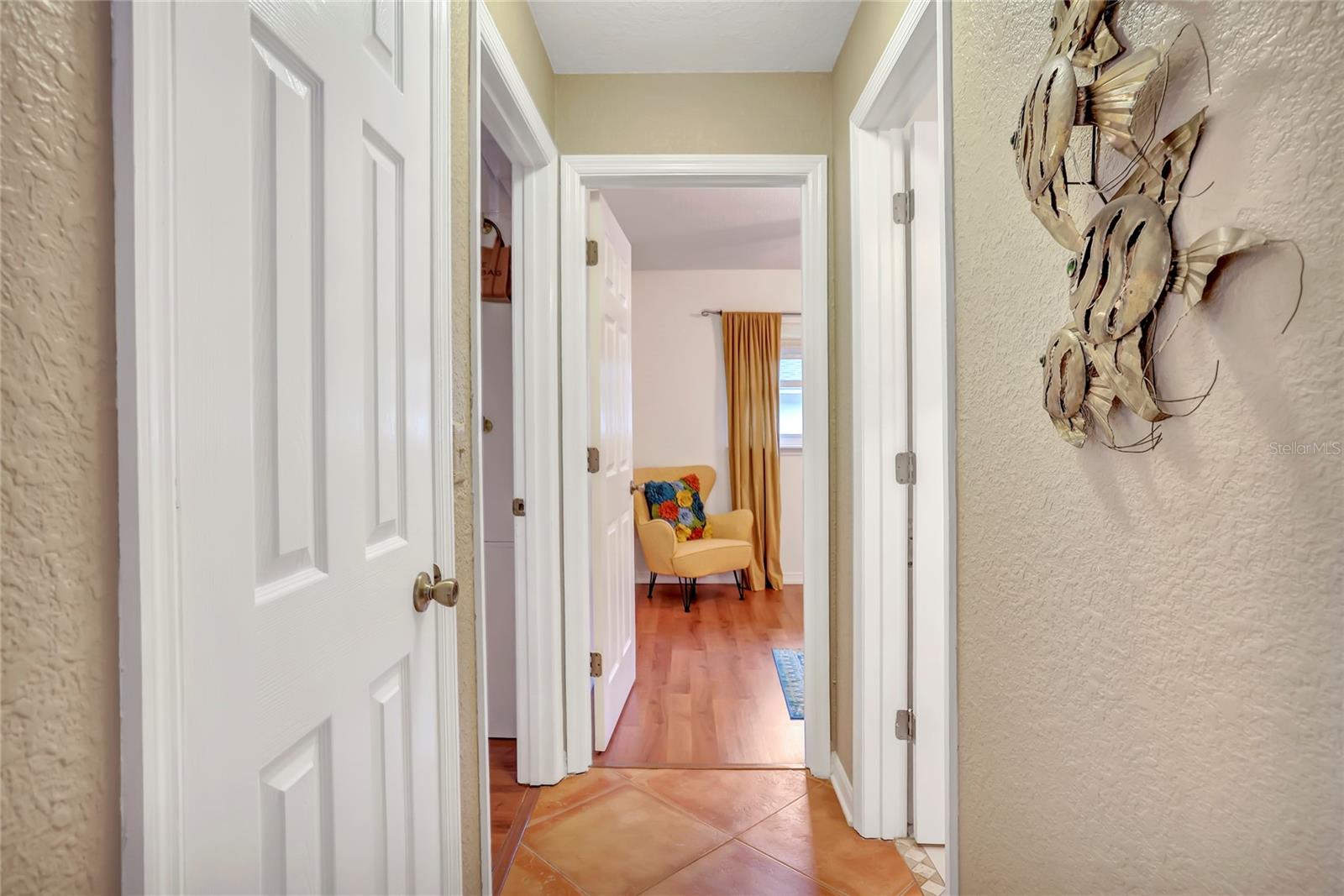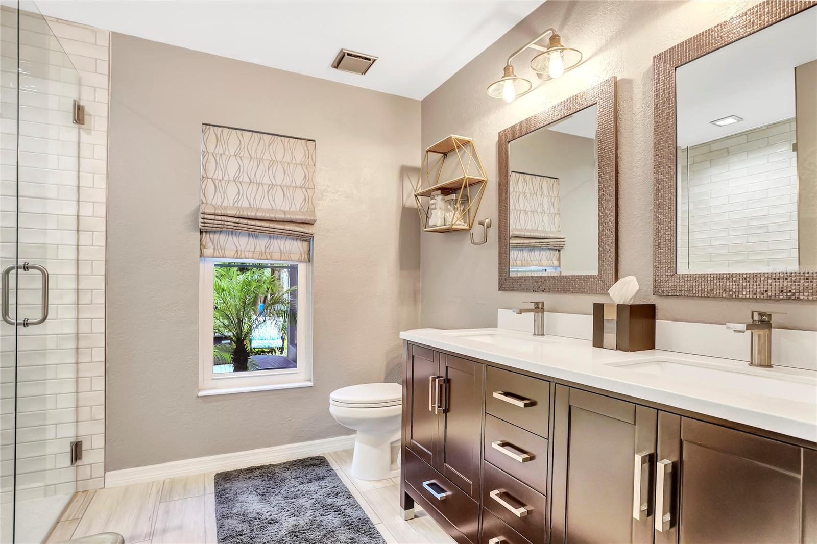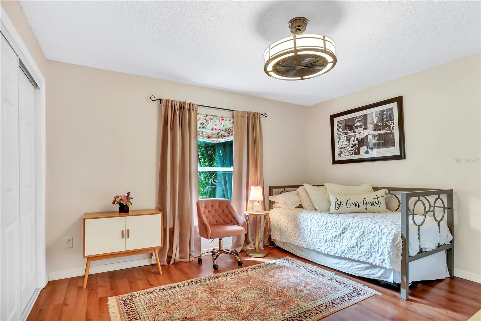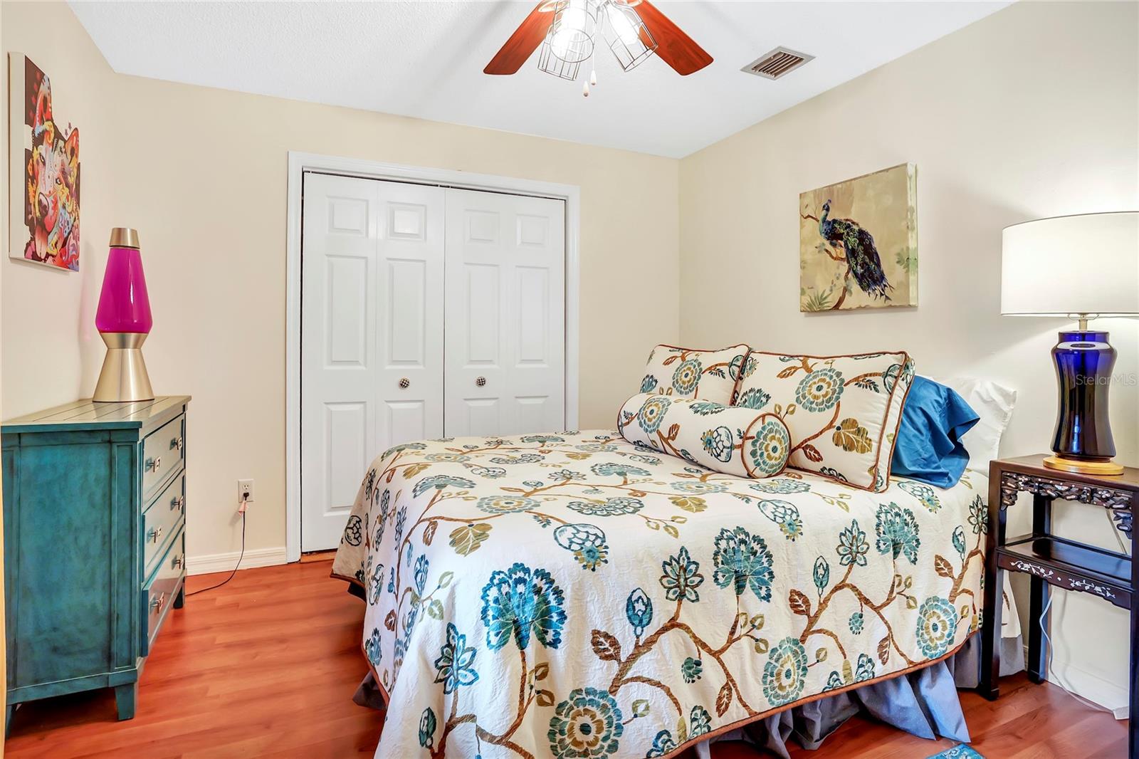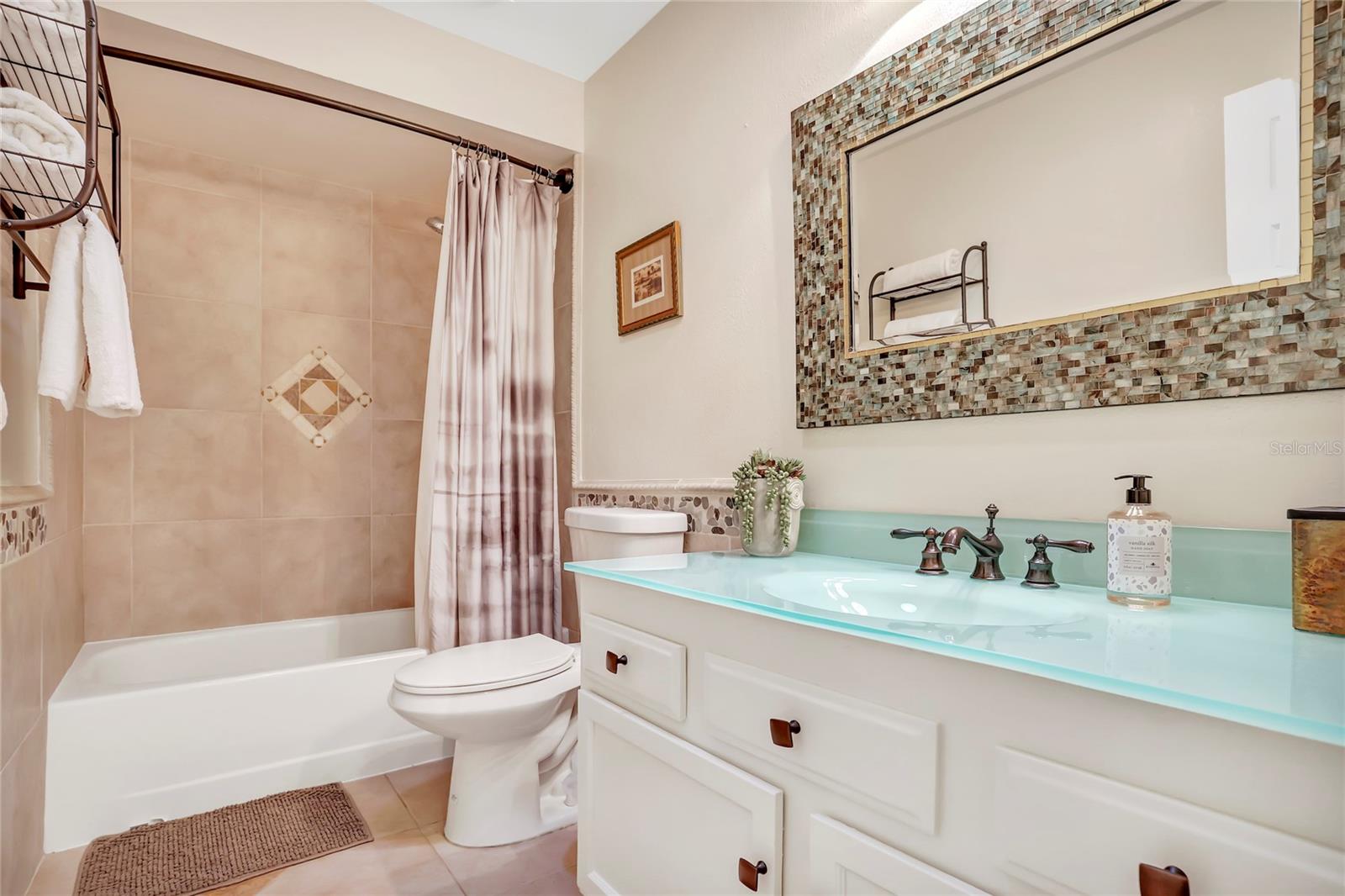 Your PERSONAL OASIS and incredible home await you! Expect to be impressed as you enter and are welcomed by an open floor plan with high ceilings, crown molding, tile floors, brick fireplace, remodeled kitchen to include brand new refrigerator, cherry wood cabinets, granite countertops, and SS appliances. Private home office off the dining room, with glass French doors, allows you to work in quiet with plenty of natural light. A spacious and separate family room/sunroom provides another area for large gatherings for family and friends. Recent renovations to the primary bathroom include ceramic wood-like tile floors, dual sinks and pass through shower off a very large primary bedroom with walk-in closet. Plenty of storage space not only in the oversized garage with built-in workshop but also the large indoor laundry room to include washer and dryer. If that’s not enough, step outside to your entertainer’s delight! Beautiful brick paver patio and walkways, lush landscaping and tropical setting where you can enjoy your recently resurfaced pool with deck jets, new Polaris, surround sound system (that also includes the living room, family room and garage on their own zones), new outdoor grill and a Hot Springs hot tub that is constantly cleaning on its own! A covered screened porch gives you a break from the sun and to get out of the rain and outdoor shed provides a place for all your tools. Roof (2022), AC (2015), Water Heater (2015), replumbed with PVC, newer windows and new gutters. Located within an active, city owned golf course community where you can see wild peacocks on your evening walks! Don’t pass on this home – you won’t be disappointed!