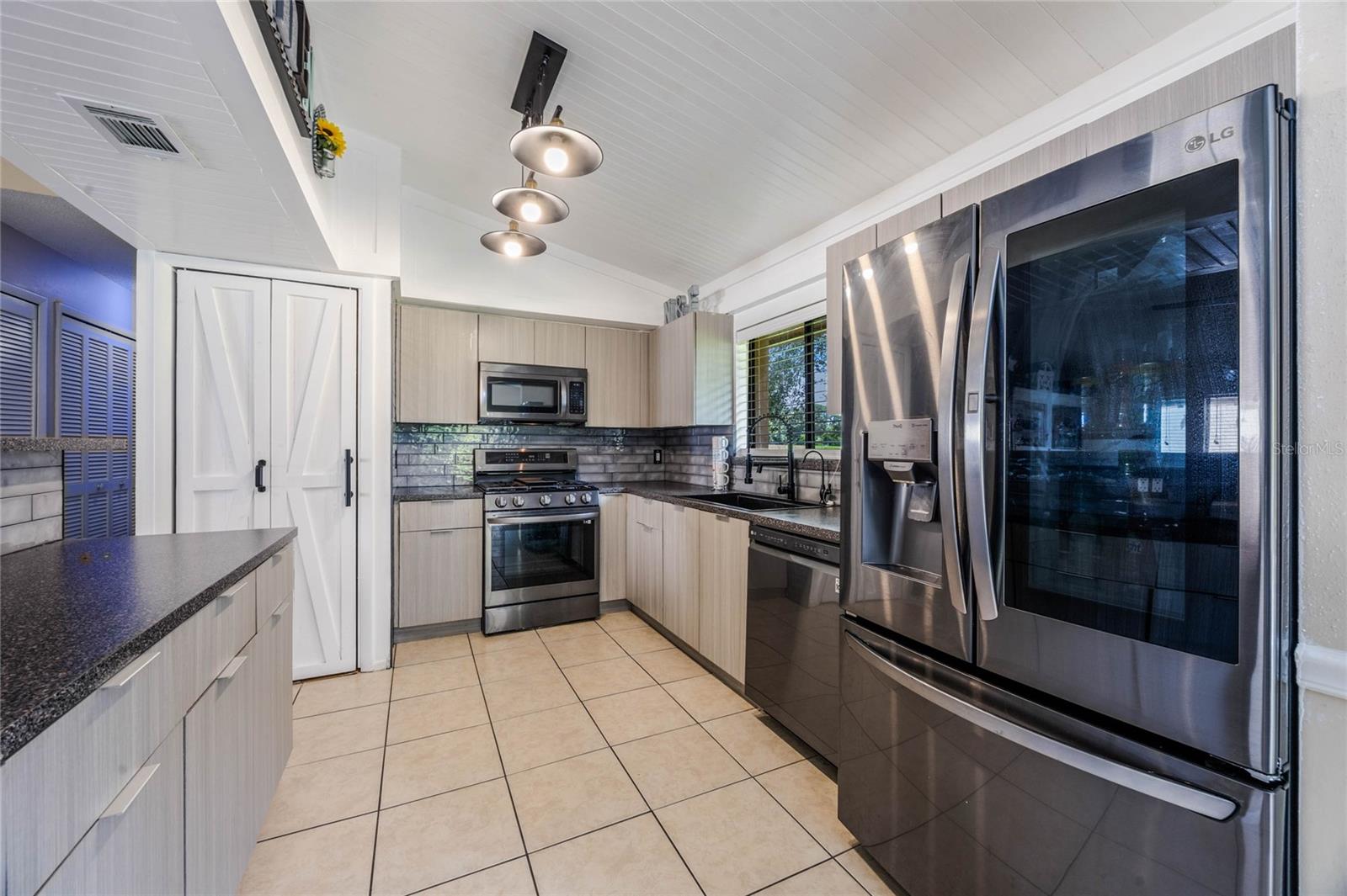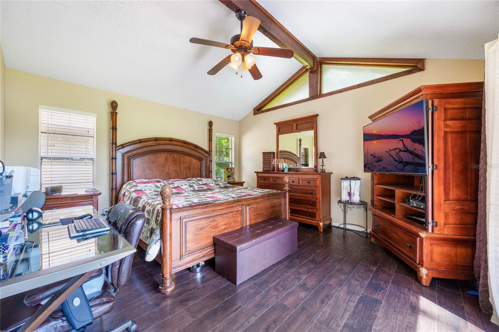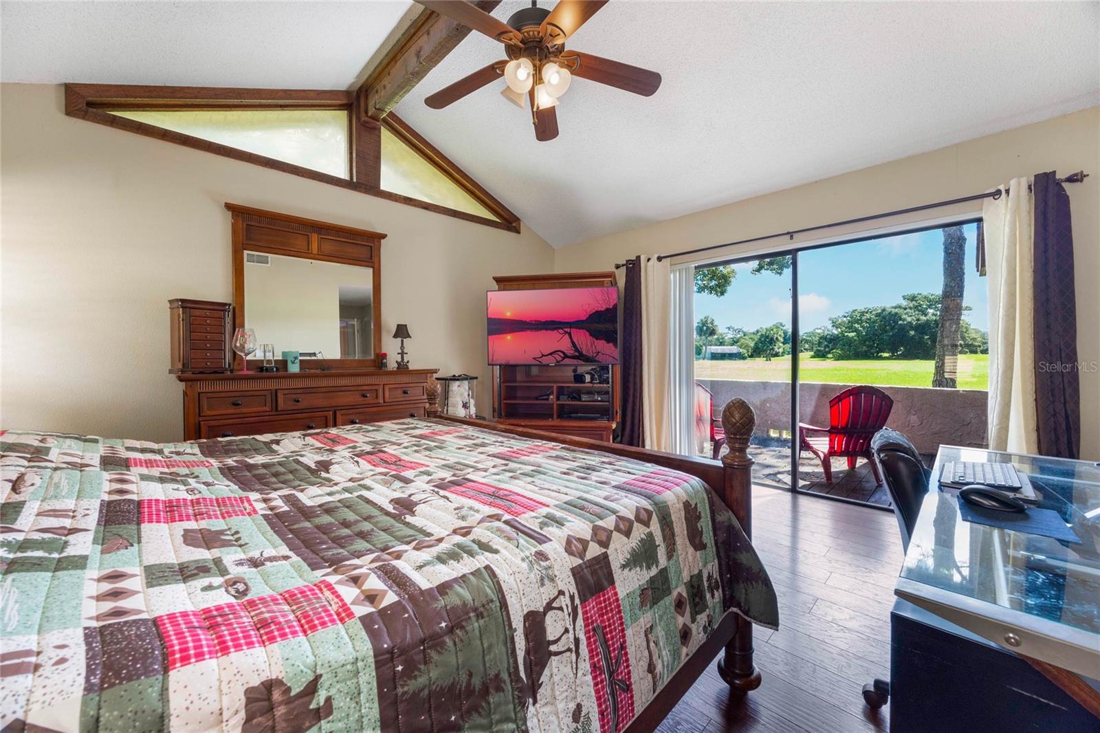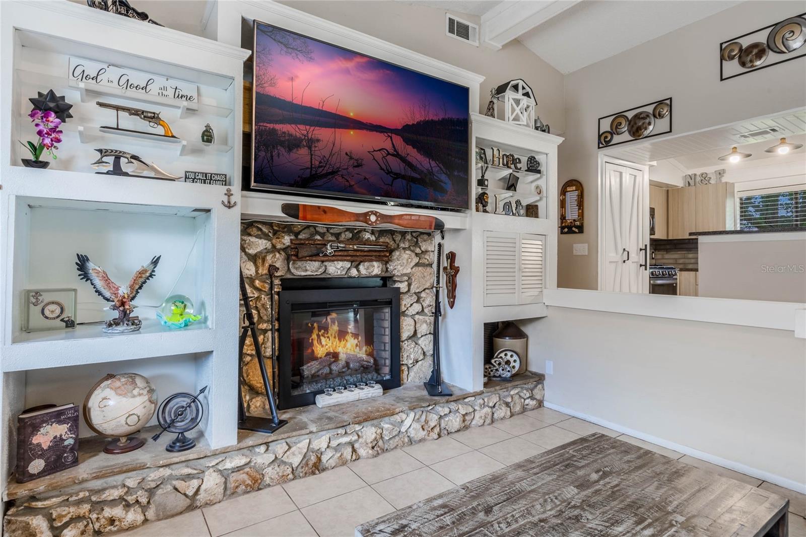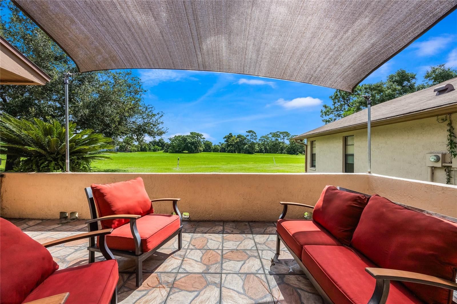 No Rear Neighbors with Open Grassy Views! This 3-bedroom, 2-bathroom home in the Deer Run Community offers a peaceful setting with no rear neighbors and direct views of an open park, with a private patio connected to the primary bedroom. Inside, the living area offers an open floorplan with a gas fireplace and built-in shelving. The adjacent dining area includes a convenient office nook for additional workspace. The kitchen is equipped with stainless-steel appliances, a gas range, and a farm-style sink. Enjoy the views from the primary ensuite featuring vaulted ceilings with exposed wood beams, direct access to a private patio and walk in closet. Two additional bedrooms share a second bathroom. Outside, enjoy views of the expansive green space from the second patio, which includes sun shading for comfort. Recent updates include a new air conditioning system and water filtration system installed in 2024. Solar panels are installed for energy efficiency. The property also includes a detached garage with carport, providing parking and storage. The Deer Run community offers a community pool and is conveniently located near parks, schools, shopping, and dining with close proximity to Maitland and Winter Park.