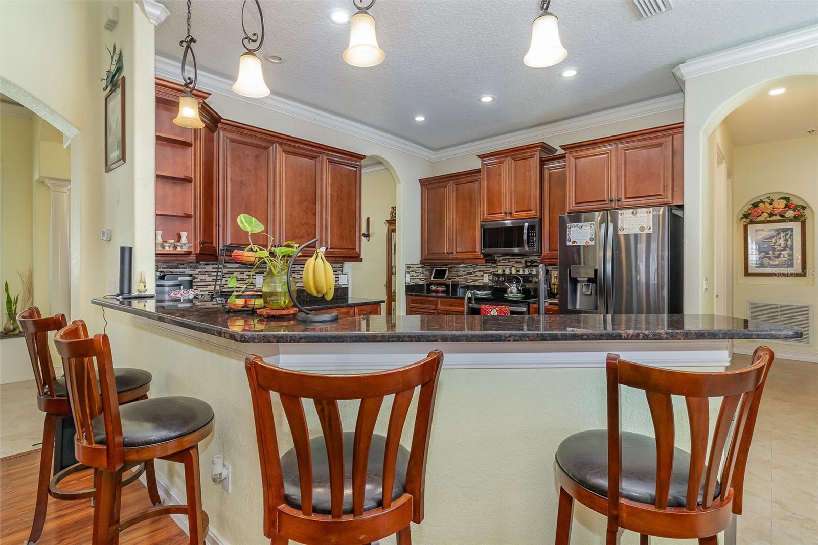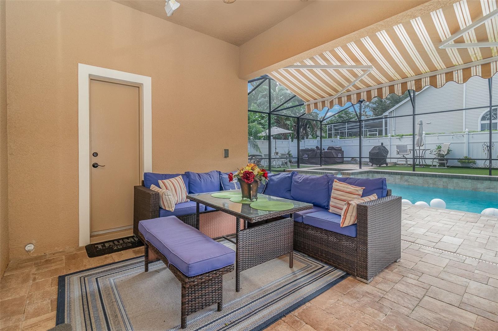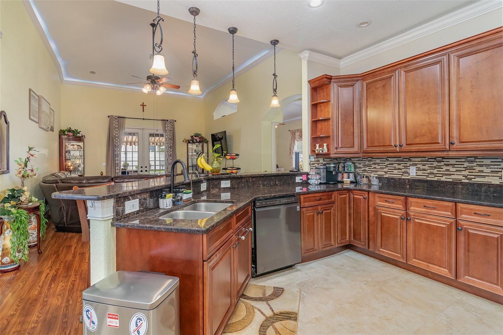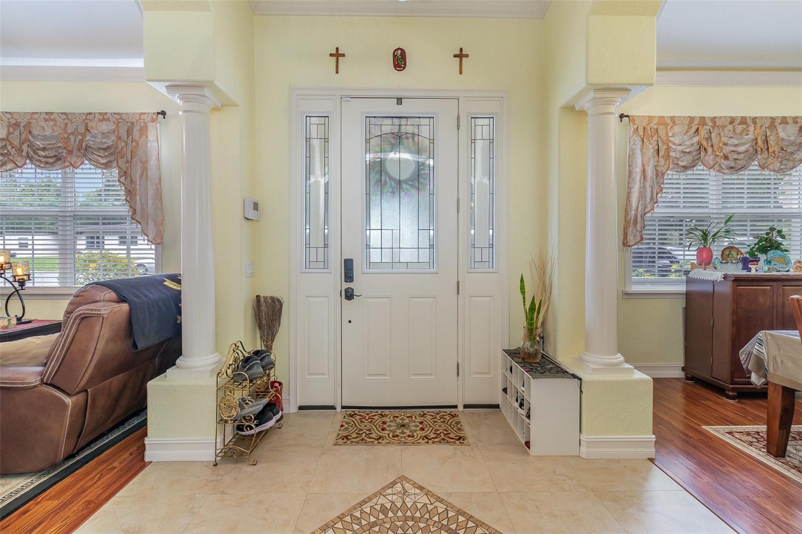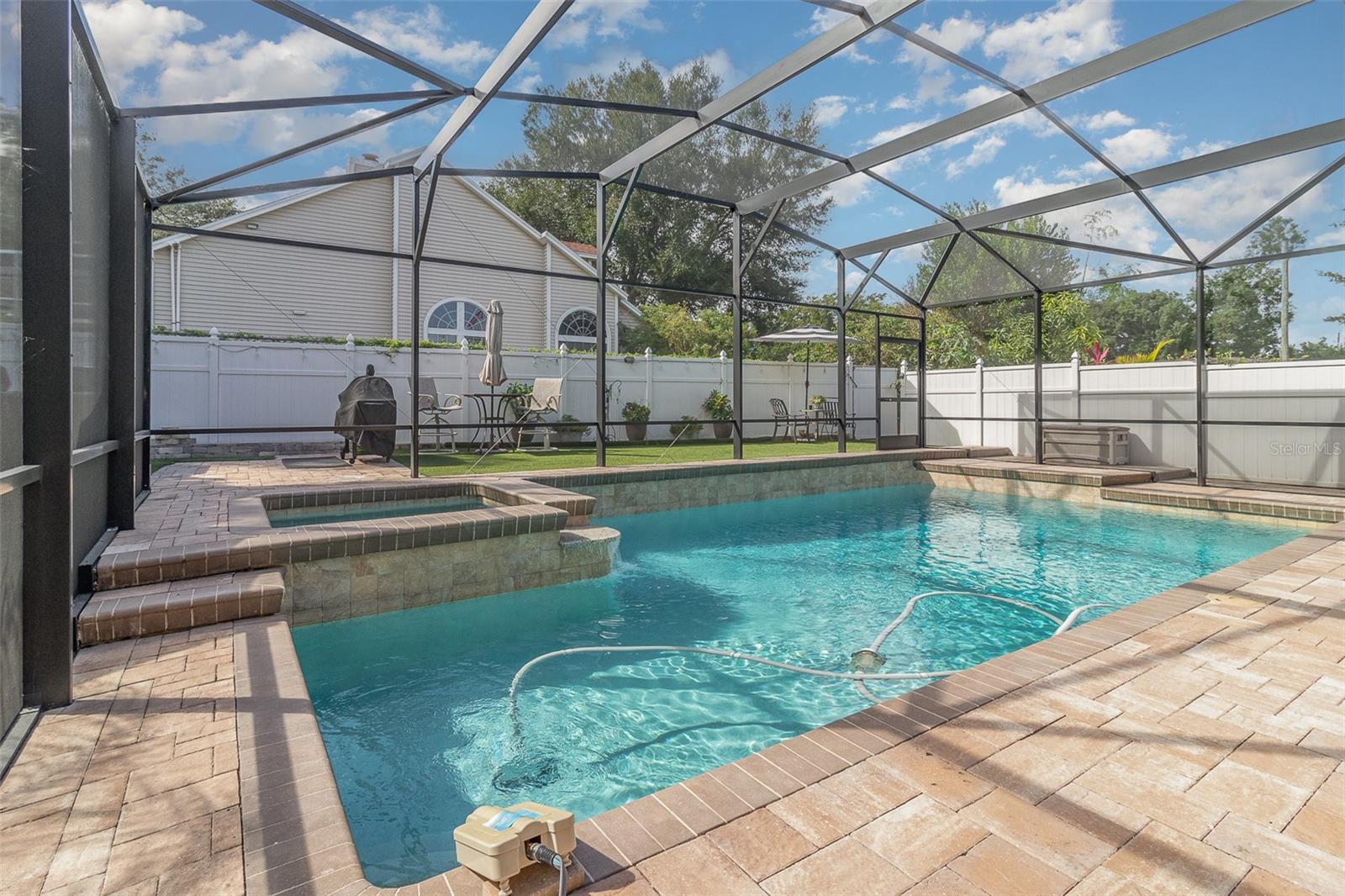 Discover this stunning luxury home in Casselberry, featuring a newly remodeled large pool with pavers and a backyard kitchen area, complete with a spa and a resort-style setting perfect for relaxation and entertaining. The elegant foyer welcomes you into this spacious 2,516 square foot residence, boasting high ceilings and solar panels for energy efficiency. The custom kitchen features solid wood cabinets and granite countertops, adding a touch of sophistication. Set on a generous 11,745 square foot lot and built in 2013, this home includes a 3-car garage. With 4 bedrooms and 3 baths, it prioritizes comfort and safety, featuring a custom panic room ideal for hurricanes, ensuring peace of mind for you and your loved ones. Conveniently located near walking trails, parks, shopping, and restaurants, this unique oasis is a must-see!