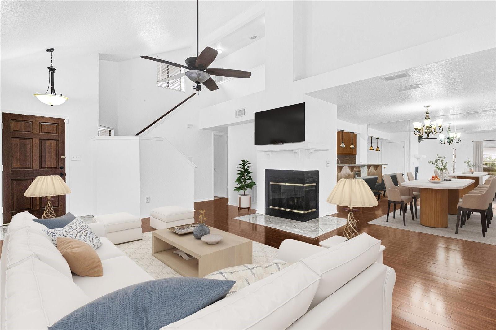 One or more photo(s) has been virtually staged. **MOTIVATED SELLER**Welcome to the established neighborhood of Hollowbrook in Casselberry. This fabulous pool home is ready for its new owners! You will love where you live as this area offers so much. Let's talk about schools. Seminole county is known for its excellent school district, and top rated schools are literally in your backyard. Hollowbrook has its own private walking path to Red Bug Elementary. Location, location, location! Dining, shopping, professional services and community parks are right around the corner with a Walmart a short distance away. Walk in with no worries *** copper plumbing (insurable), upgraded electrical panel, 2018 roof, 2019 water heater, AC compressor 2019 and inside unit 2015*** Prepare to be amazed as you take your first steps inside. You are greeted with an open-concept living area where natural light pours in through an array of oversized windows and a clear view of your beautiful pool area. A highlight of this home is its tall ceilings, making the space feel huge. The large family room is the heart of this home with a beautiful wood burning fireplace taking center stage. The kitchen is remodeled with granite countertops and a half bathroom is located on the primary floor. The kitchen also features a spacious eat-in / dining room area. On the second story, you will find all the bedrooms and a guest bathroom. Hollowbrook also has a very affordable HOA. This property has no backyard neighbors, creating the ultimate privacy for this Florida retreat. Other property features include: generously sized bedrooms, fully fenced in yard, screened in pool, no carpet and fresh interior paint. This home is the epitome of cozy. You will love where you live. Schedule your private showing today!