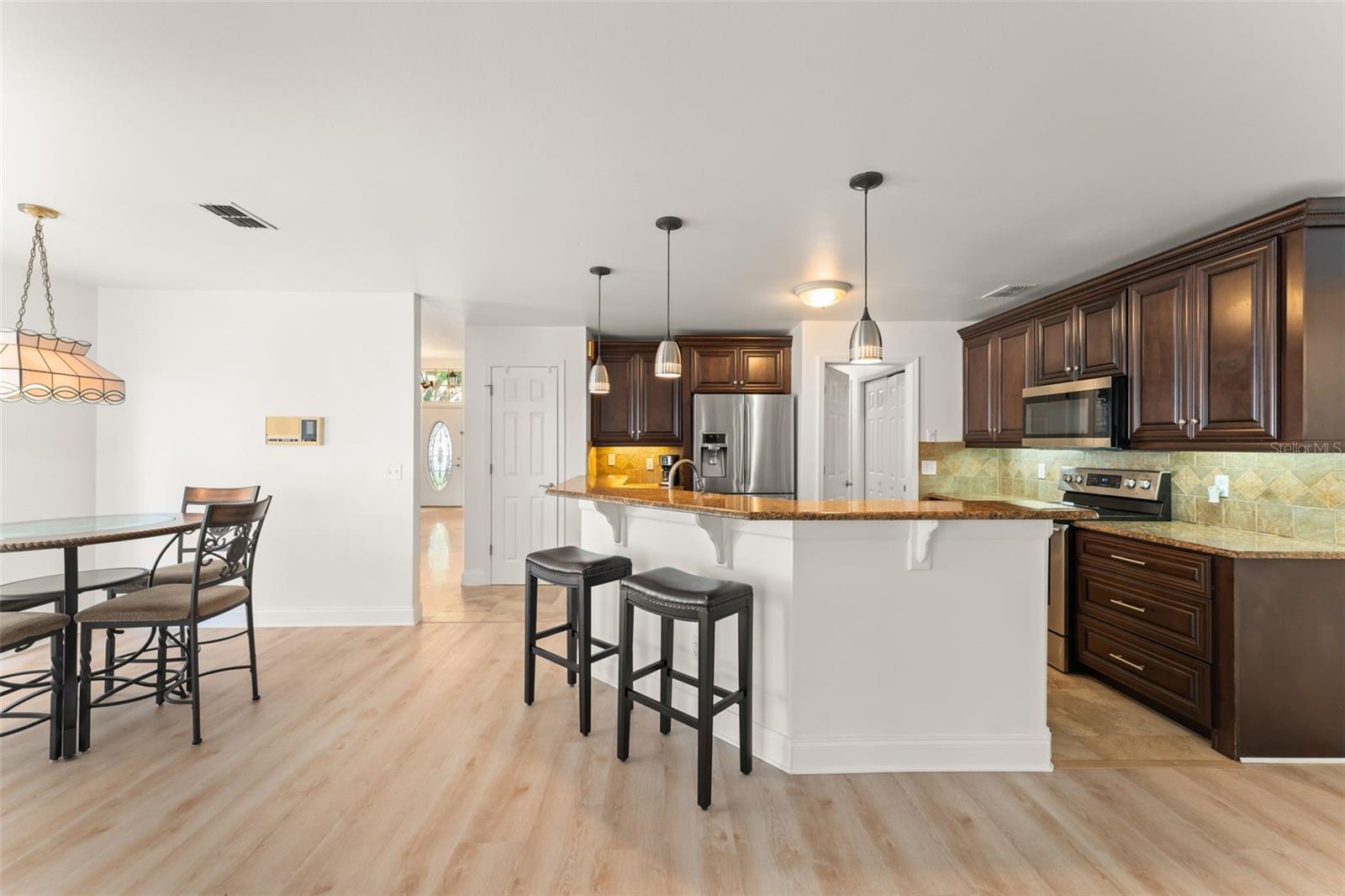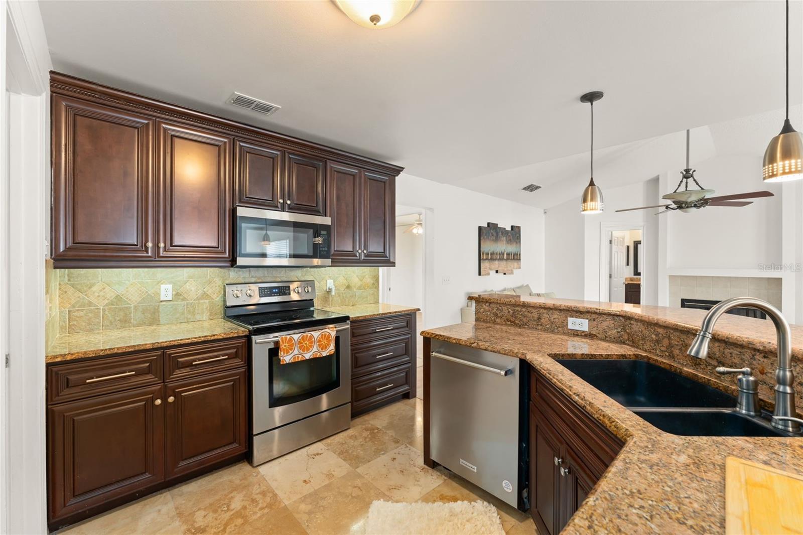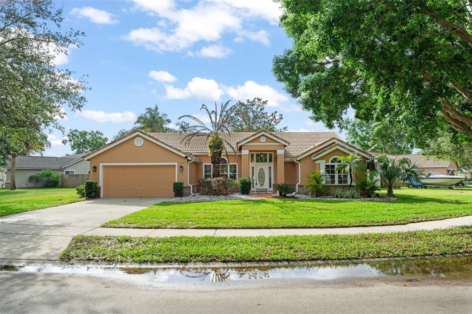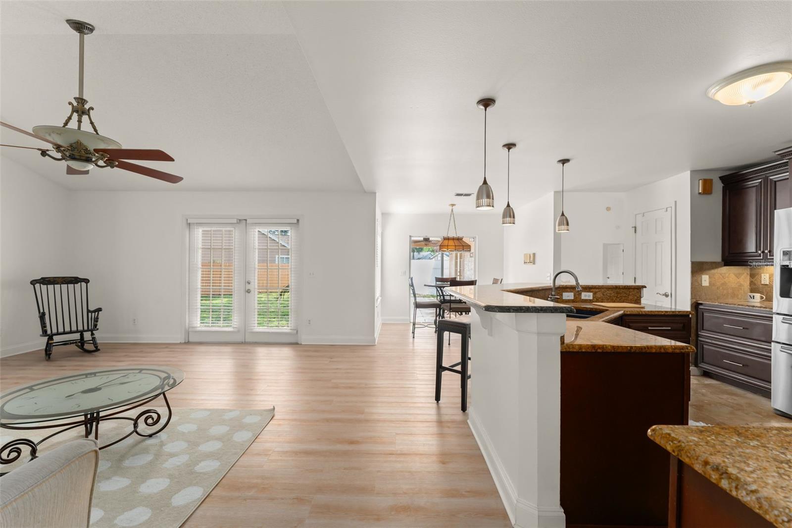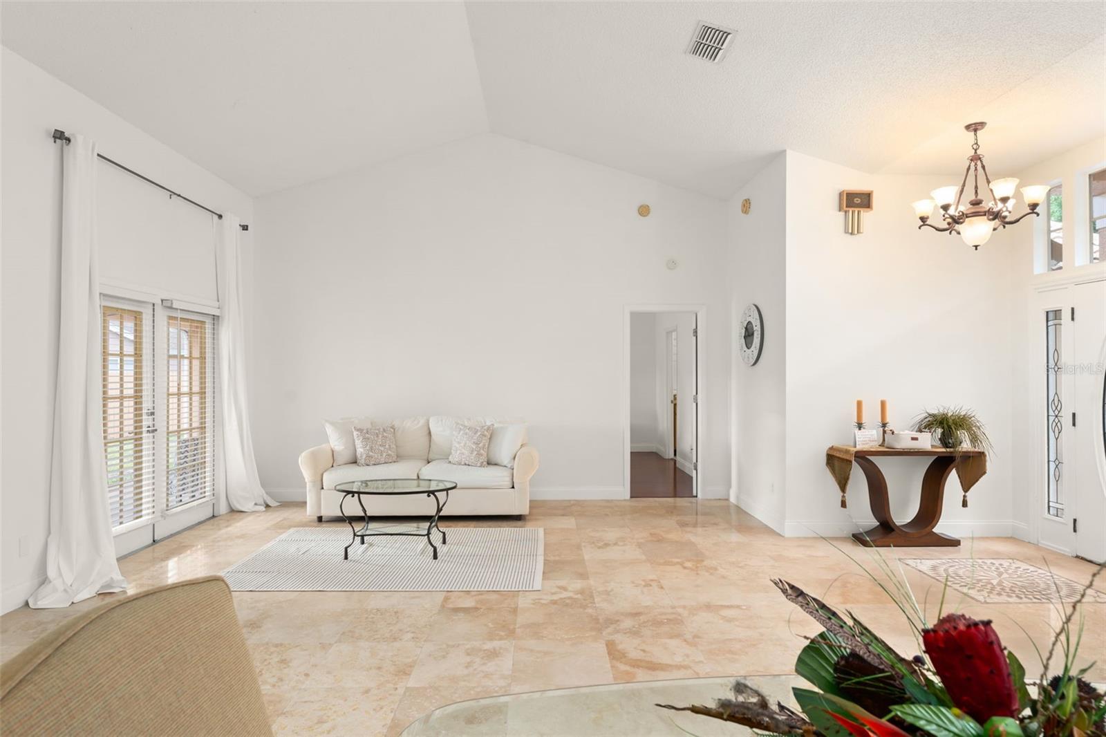 **This property qualifies for a closing cost credit up to $8,100 through the Seller’s preferred lender.**Welcome home to this newly remodeled stunning 4-bedroom, 3-bathroom home nestled on an oversized lot, that offers spacious living with an inviting open-concept design. Step through the front door into a formal living and dining area, where elegant French doors lead out to the backyard. To the right, the private primary suite boasts vaulted ceilings, additional French doors, and a luxurious ensuite featuring a double sink vanity, a soaking jetted tub, a stand-up shower, and a generous walk-in closet. The heart of the home is the open-concept kitchen and family room, complete with a cozy fireplace and an adjacent eat-in nook. The kitchen showcases stainless steel appliances, floor-to-ceiling cabinetry, granite countertops, and a breakfast bar for casual dining. Two secondary bedrooms are conveniently located off the hallway to the left, while the fourth bedroom sits at the back of the home near the third full bathroom. Outside, the covered patio overlooks a vast backyard, perfect for entertaining or relaxing in your private outdoor retreat. The interior of this home features travertine tile, wood and simulated wood flooring throughout as well as fresh interior and exterior paint. This stunning community offers a low quarterly HOA, is zoned for top-rated Seminole County schools, and close to parks for family outdoor activities. Don’t miss the opportunity to call this exceptional home yours! Schedule your private showing today!