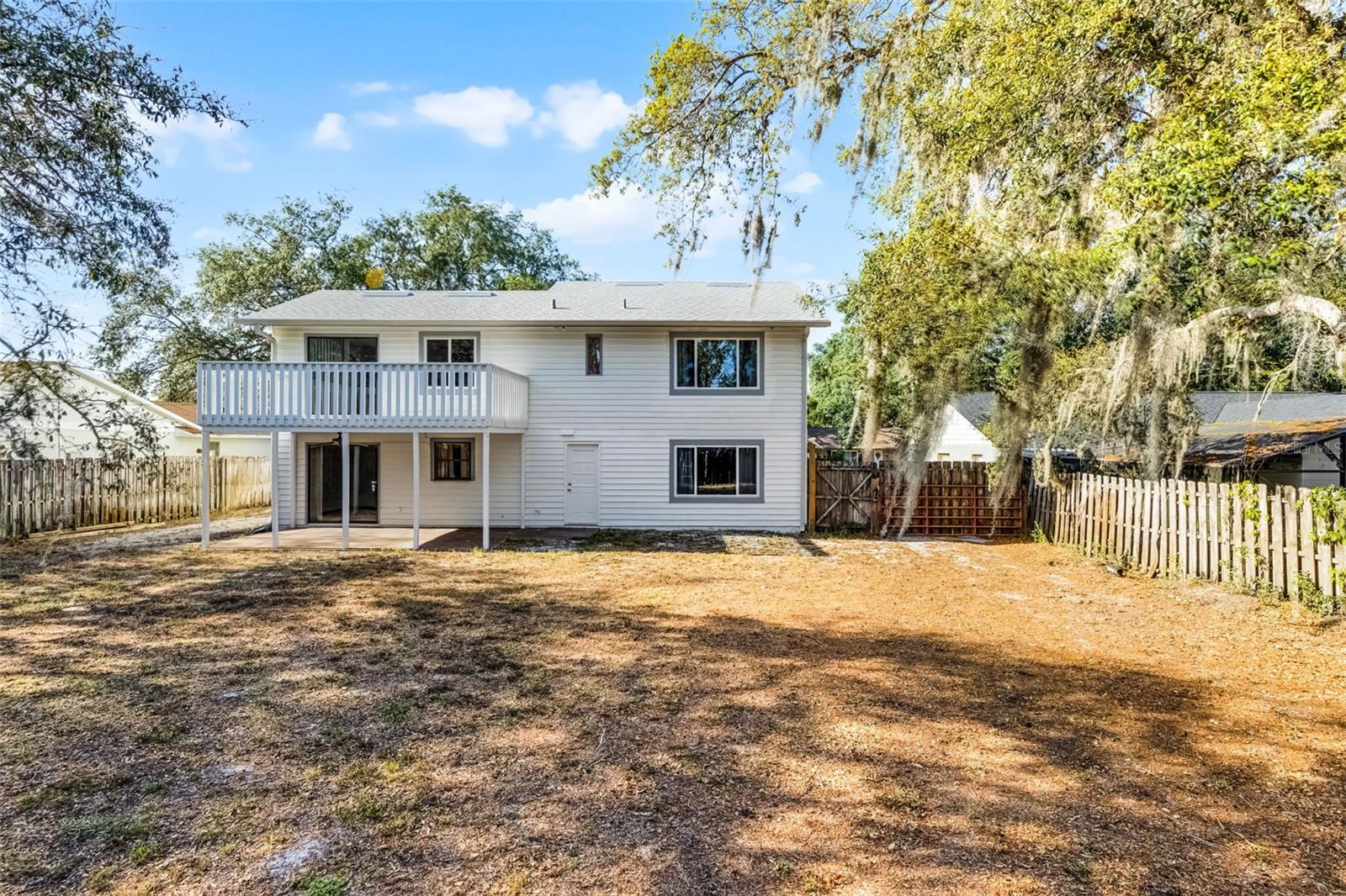 Have you been looking for a home on an OVERSIZED LOT on a CUL DE SAC with NO HOA and NO REAR NEIGHBORS? Look no further than this rare find in Casselberry. This home has been recently painted inside and out so you can move right in. Step inside and notice the beautiful wood burning fireplace and high ceilings. The kitchen host stainless and black appliances, granite countertops, wood cabinets, pantry and is open to the dining/family room. The PRIMARY SUITE IS DOWNSTAIRS with DUAL CLOSETS and ENSUITE with step in shower and access to backyard. Upstairs is a HUGE LOFT/BONUS ROOM with sliders to the OVERSIZED BALCONY overlooking the backyard, with no rear neighbors! Two additional bedrooms with ENORMOUS CLOSETS and a full bath are down the hall. There is an abundance of storage in this home. The inside laundry room is a plus! This home is perfect for entertaining inside and outside or just relaxing on your COVERED PATIO or balcony. A half bath is conveniently located downstairs for your guest. Updates include ROOF 2021, NEW WINDOWS 2024, NEW ELECTRIC PANEL 2021, FENCED backyard and located on .25 ACRES. Not often does a home like this come available so don't miss out and schedule your showing today!