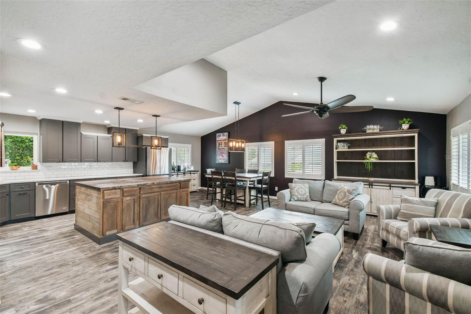 Welcome to this RARE FIND and beautifully upgraded split-3 level home, designed for modern living and effortless entertaining. As you step inside, you'll immediately be struck by the vaulted ceilings and abundant natural light that fills the open-concept living, dining, and kitchen area. The space is highlighted by stylish modern light fixtures and recessed lighting, creating a warm and inviting atmosphere. The heart of the home is the updated kitchen, a chef's dream featuring sleek grey cabinets, a classic white subway tile backsplash, and stainless steel appliances, including a convenient slide-in stove. This open layout ensures you're always part of the action, whether you're hosting a dinner party or enjoying a quiet evening in. Upstairs, you'll find 4 spacious bedrooms and two full bathrooms, each boasting its own vaulted ceilings that add to the home's spacious feel. The lower level is an entertainer's paradise. The finished basement offers a built-in gas fireplace - the perfect place to hang stockings for the holidays! From here, you can walk out directly onto the deck, making it the perfect spot for parties and gatherings. Step outside and discover your own private oasis. The expansive half-acre backyard provides a tranquil retreat with the peaceful Howell Creek meandering through it, complete with a beautiful waterfall in your very own yard! The back deck is a true highlight, featuring a unique partial underground above-ground pool and a hot tub tucked away under the covered gazebo, offering the perfect blend of relaxation and recreation. This backyard is a private sanctuary, perfect for unwinding after a long day. There's really nothing like it!! Come book your own private tour!