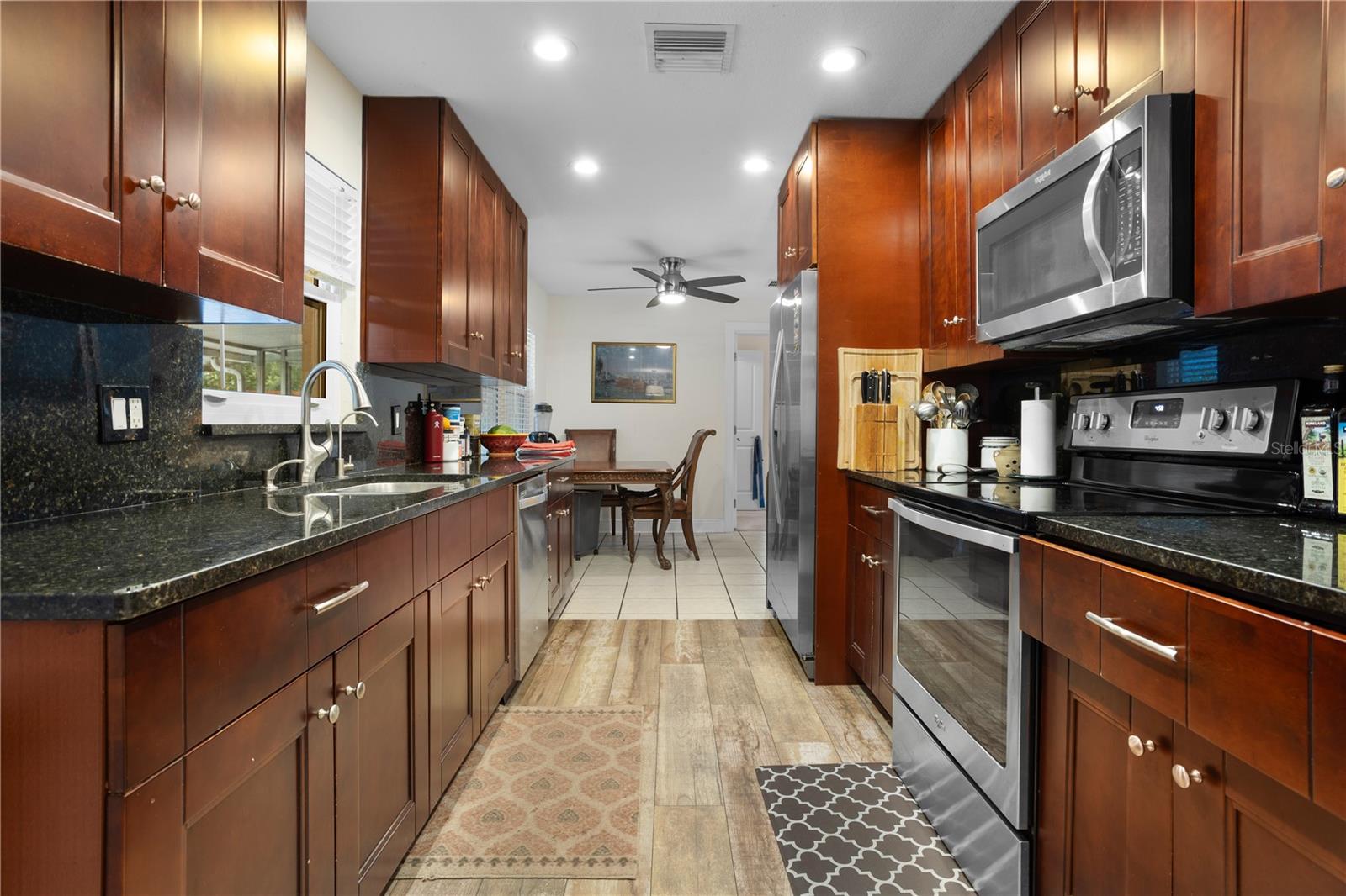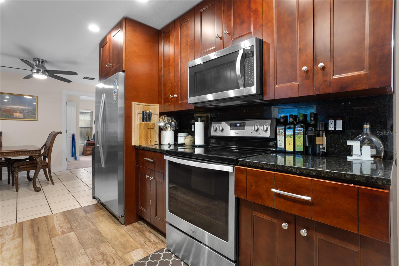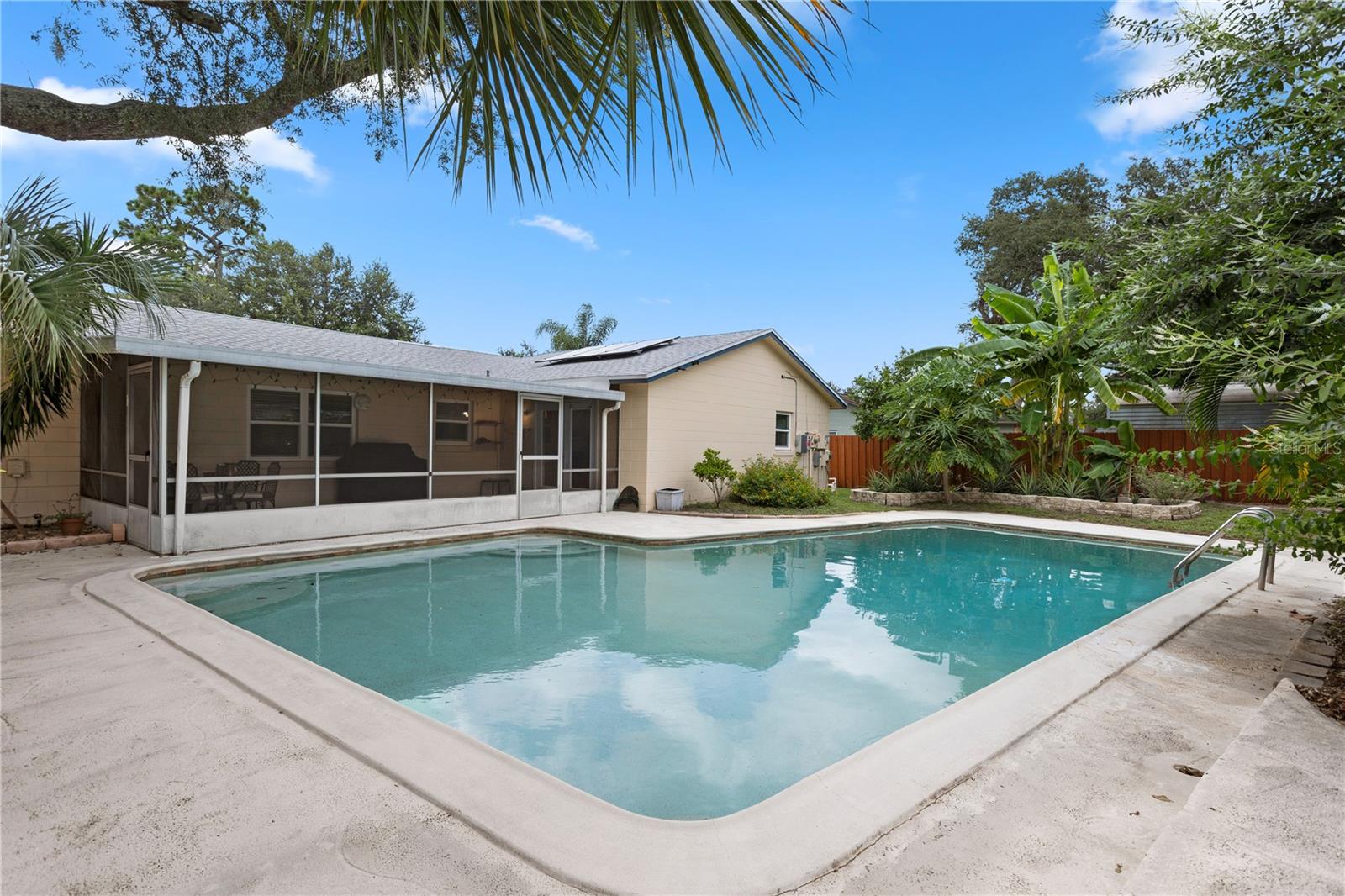 This home has a convenient location, in the charming City of Casselberry, located in the southern section of suburbs in Seminole County. This energy efficient home boasts split plan layout, light bright and spacious interior, two main living areas and showcases an inviting backyard with fruit producing garden and 8ft deep swimming pool. Plenty of areas to entertain or have the family sprawl out. Enter from the large front porch into the foyer adorned with sidelight, storage closet, to the left is the garage and flanked to the right with formal living area, eat-in kitchen and leads into master suite offering a walk-in closet. Going forward from the foyer you travel to the family style great room and kitchen. From here you can go to the additional bedrooms or out to the covered porch to enjoy the backyard. Kitchen, eat-in dining area, and family room all have views of the back yard. ----Upon acquisition in 2017 the seller embarked in remodeling and moderation of the home that continued throughout ownership. ----- Thoughtful upgrades were installed when modernizing the new kitchen, including ¾” all wood cabinets, all matching Whirlpool appliances, 3cm granite counter tops and full backsplashes, and a separate R.O. system at the deep single bowl sink in addition to the whole house water filtration system (in garage). The entire interior received upgrade with replacement of all doors and windows, door casings and moldings. This includes new solid doors to garage and front door with glazing at the top to allow extra light in. The garage has a new belt drive opener and main garage door replaced. The seller paid particular attention to making the home energy efficient with a high efficiency HVAC 22 SEER Carrier heat pump system, double pain low E windows, and upgraded new Owens Corning pink insulation blown into attic areas. Lumio Solar system with 25-year warranty, and new GAF shingle roof were installed in 2023. The Sellers annualized bill for Duke was $83 per month, Duke recently raised it to $87 per month, including premiums. ----Duke’s monthly premium for surge protection, wiring and plumbing repair policies. ------ Other items for enjoying Florida living, the house has a portable propane generator that can power the entire house, depending on load demand will even including running the AC, during outages. Make a fresh fruit dish from fruit growing in the backyard. The property includes banana trees, a papaya tree, pineapple plants, and collard green plants (may be considered seasonal if not maintained between growing season). There are also orange, lime, and lemon trees. The pool deck is spacious and affords enough space for a future outdoor kitchen or grilling area. Seller is already moving, call today for your private showing. See attachments for full list of home upgrades and improvements. All information deemed reliable but should be verified by Buyer. Open House Saturday