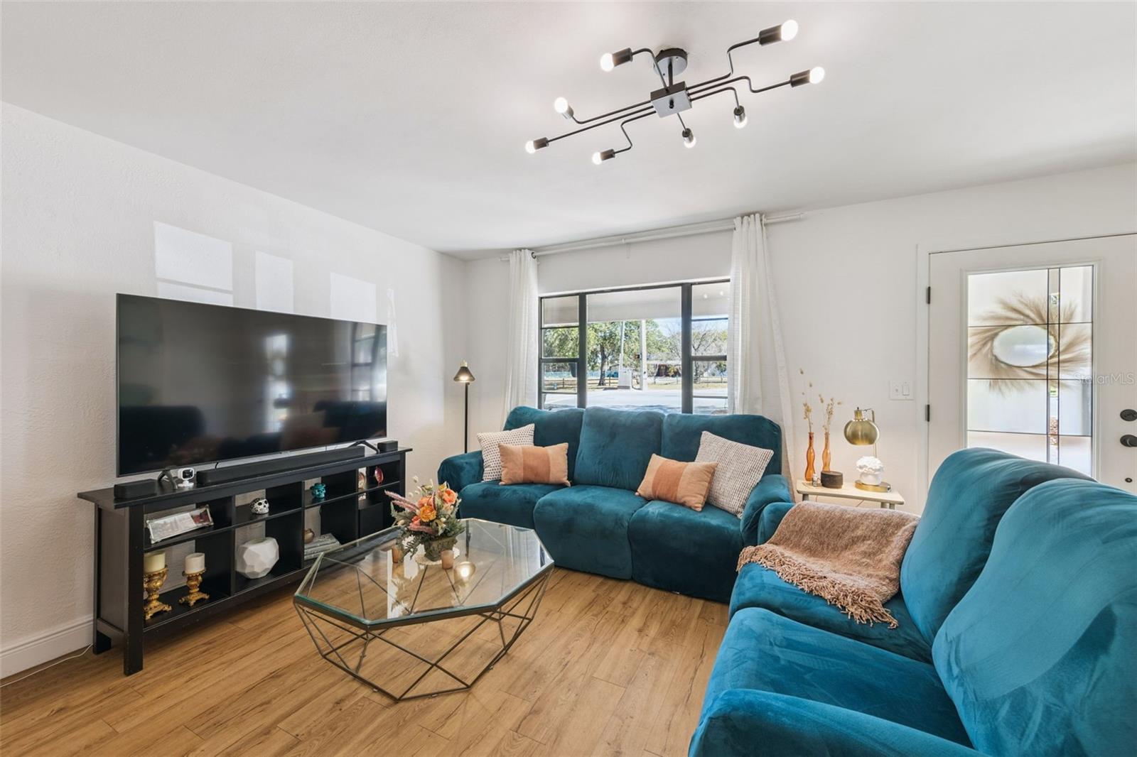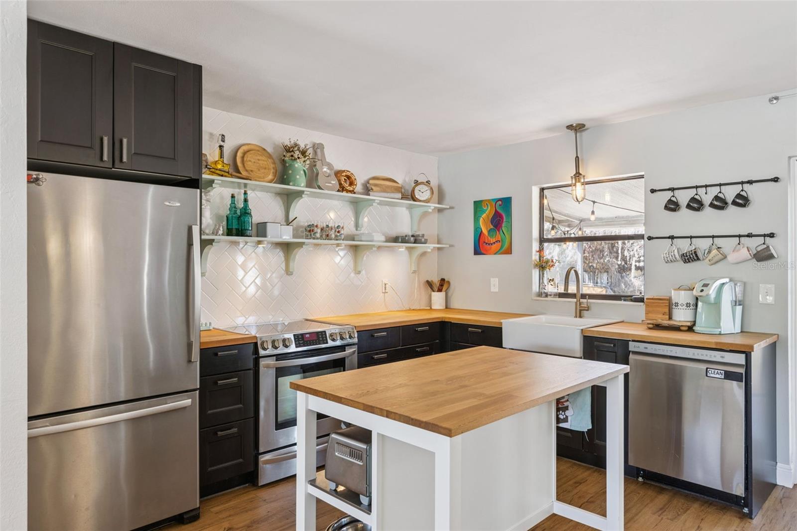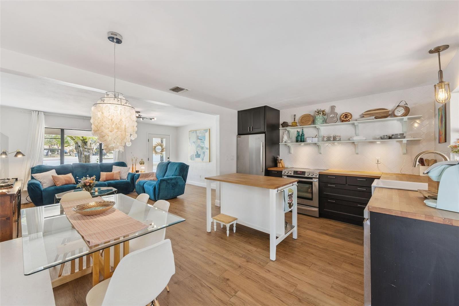 Move-in ready and freshly painted, this beautifully maintained 3-bedroom, 2-bath home offers an open floor plan perfect for everyday living and entertaining. The spacious family room flows seamlessly into the eat-in kitchen featuring butcher block countertops, stainless steel appliances, and a center island with plenty of prep space. French doors lead to a screened-in lanai overlooking an oversized, fully fenced backyard — ideal for pets, play, or weekend gatherings. The private primary suite includes a walk-in closet and private bath, while two additional bedrooms and a full guest bath provide flexibility for family, guests, or a home office. The laundry room is conveniently located off the kitchen and offers extra storage or flex space. Major bonus: fully paid-off solar panels at closing, providing immediate energy savings — plus NO HOA, a rare find at this price point. Conveniently located near major highways, shopping, and dining. Don’t miss this opportunity — schedule your showing today!