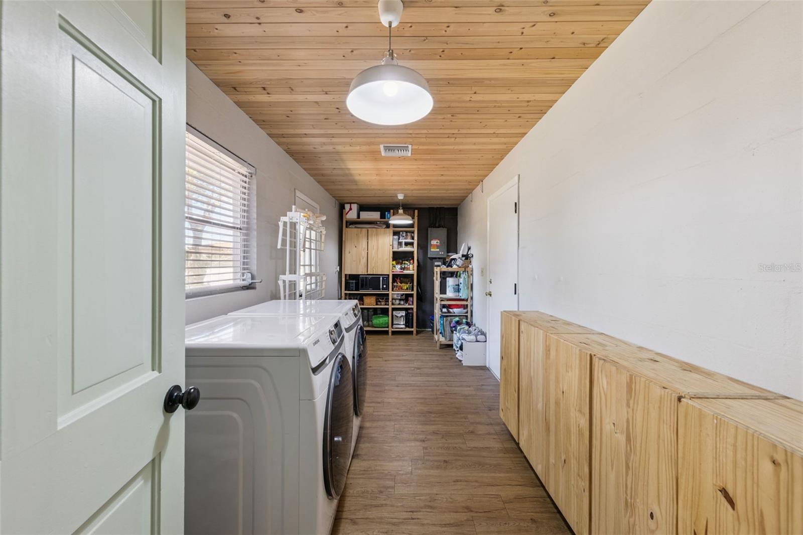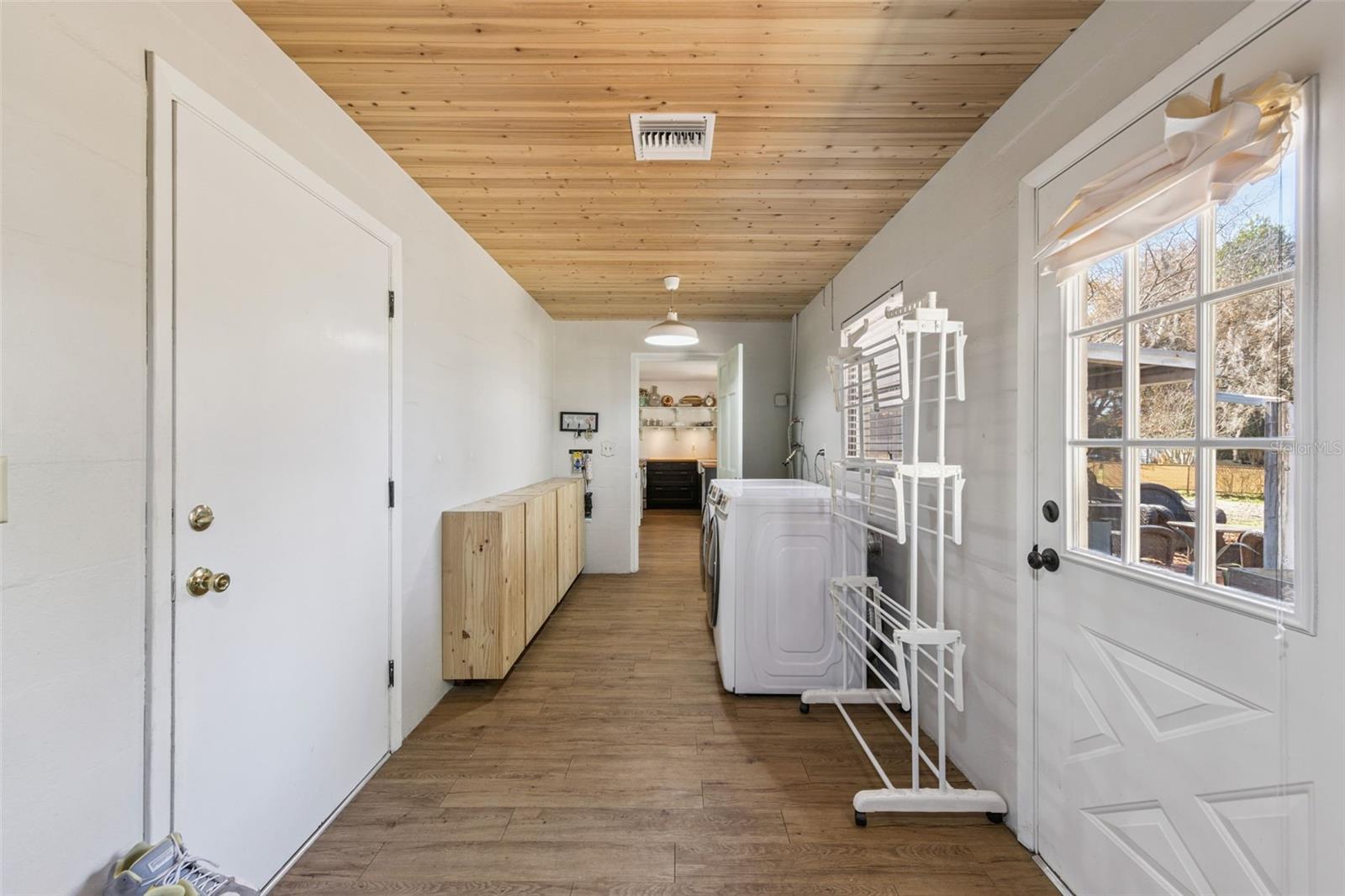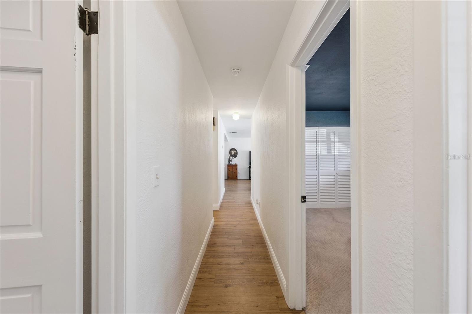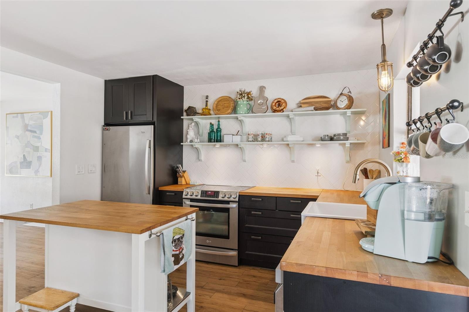 Move-in ready and freshly painted, this beautifully maintained 3-bedroom, 2-bath home offers an open floor plan perfect for everyday living and entertaining. The spacious family room flows seamlessly into the eat-in kitchen featuring butcher block countertops, stainless steel appliances, and a center island with plenty of prep space. French doors lead to a screened-in lanai overlooking an oversized, fully fenced backyard — ideal for pets, play, or weekend gatherings. The private primary suite includes a walk-in closet and private bath, while two additional bedrooms and a full guest bath provide flexibility for family, guests, or a home office. The laundry room is conveniently located off the kitchen and offers extra storage or flex space. Major bonus: fully paid-off solar panels at closing, providing immediate energy savings — plus NO HOA, a rare find at this price point. Conveniently located near major highways, shopping, and dining. Don’t miss this opportunity — schedule your showing today!