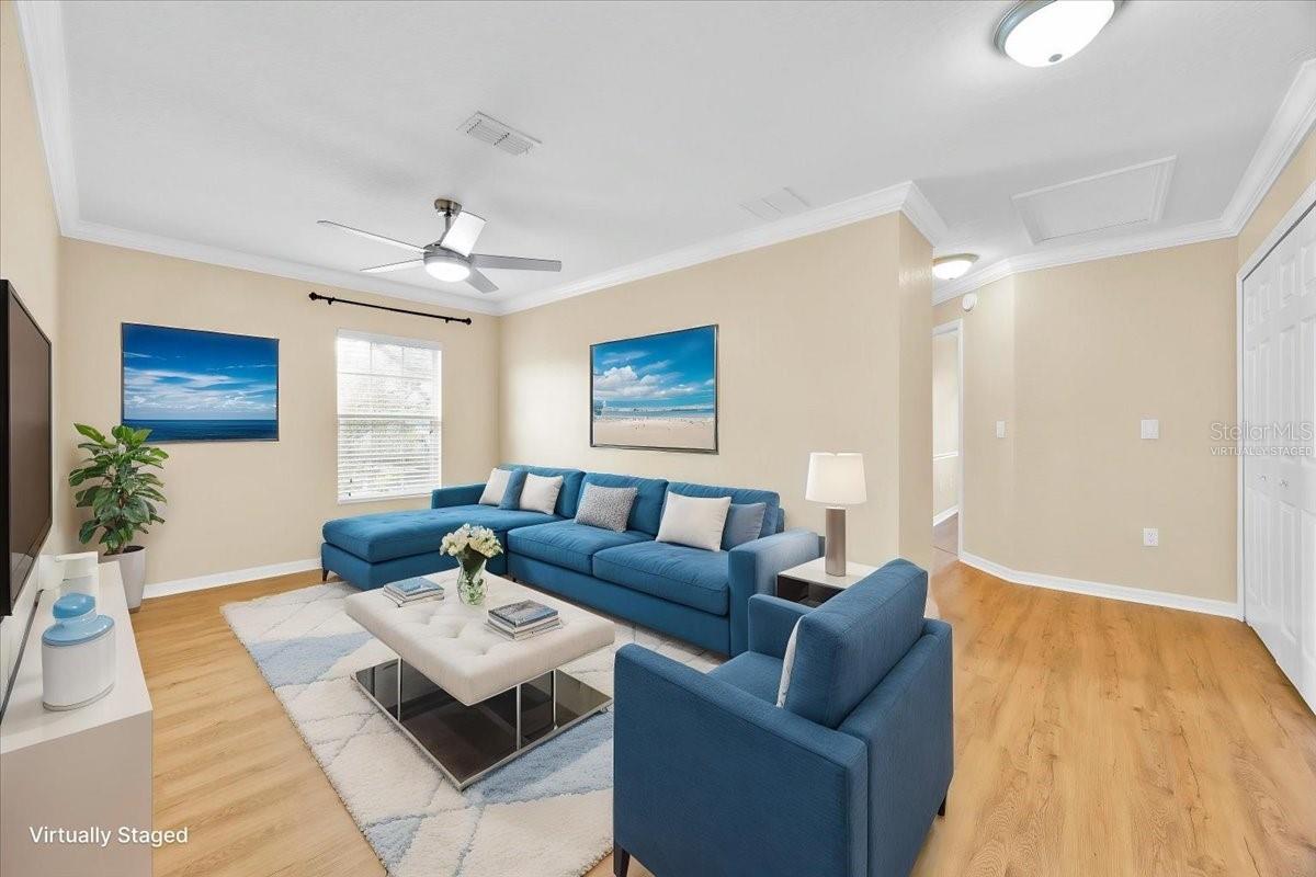 One or more photo(s) has been virtually staged. NEW AC SYSTEM & WATER HEATER INSTALLED 2025. Lovely END UNIT with bonus room for spacious activities or to close into a 4th bedroom. This townhome is inside the gated community of The Parke at Hanover Place which is located along SR 434 just east of 17-92. Centrally located in between 417 and interstate 4 highways. Walking distance to the neighboring grocery store shopping plaza. Townhome features an open plan layout with a fully tiled first level and luxury vinyl plank in the second level living spaces. Ceiling fans throughout the home. Kitchen features 42-inch cabinets with granite countertops and a large built in pantry closet for plenty storage. Master bedroom features a large walk-in closet, crown molding LED lighting and a view of the local pond over the community pool. Master bathroom features a private water closet, his and hers vanities with sitting, separate shower and garden tub. Two car garage features a ceiling rack for overhead storage located over the extended garage space area for more storage. Exterior features a nice brick-paver driveway, entrance walkway and rear patio. This end unit is conveniently located across the community pool, mailboxes and guest parking. Take advantage of checking out this unique unit.