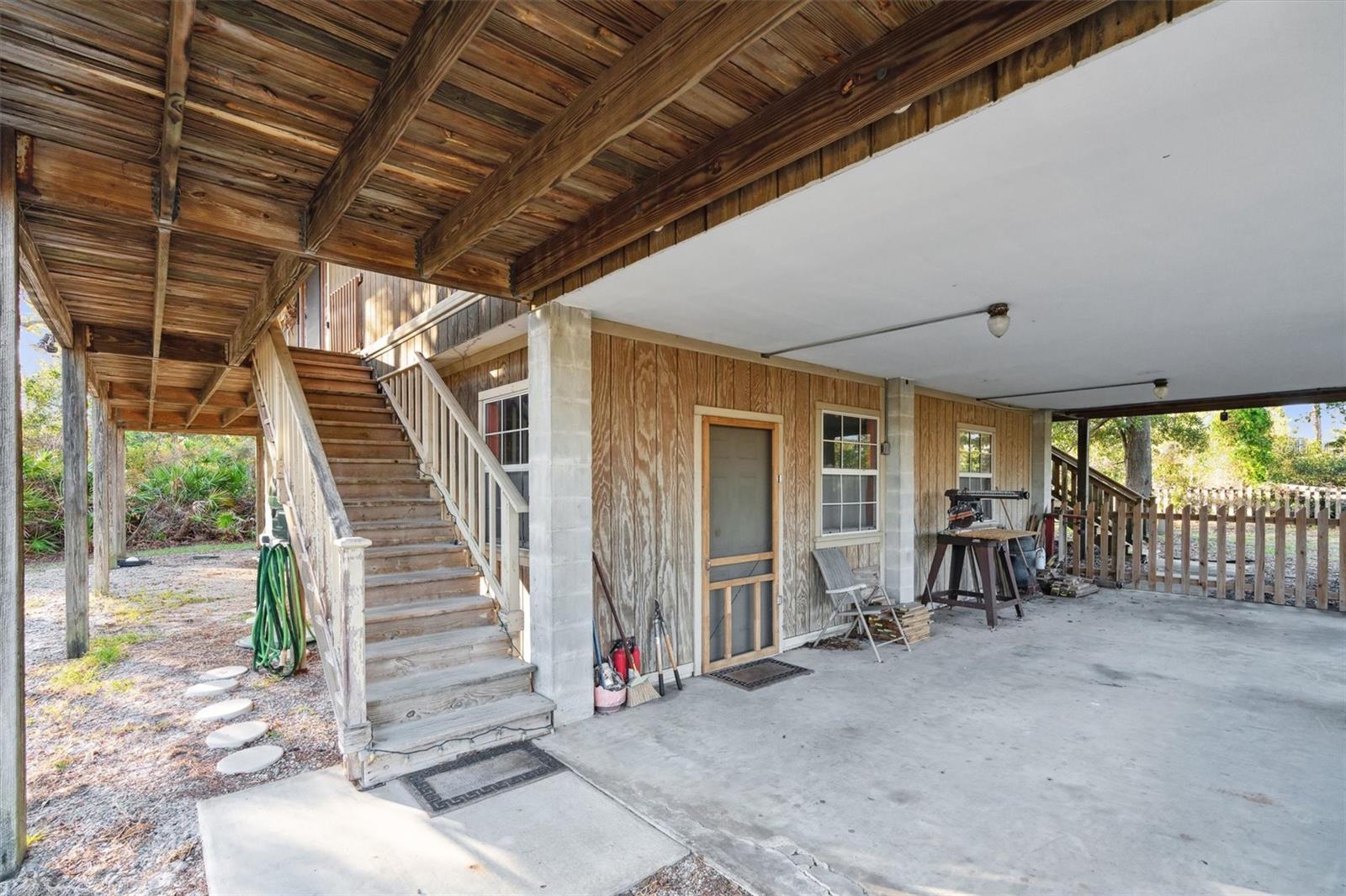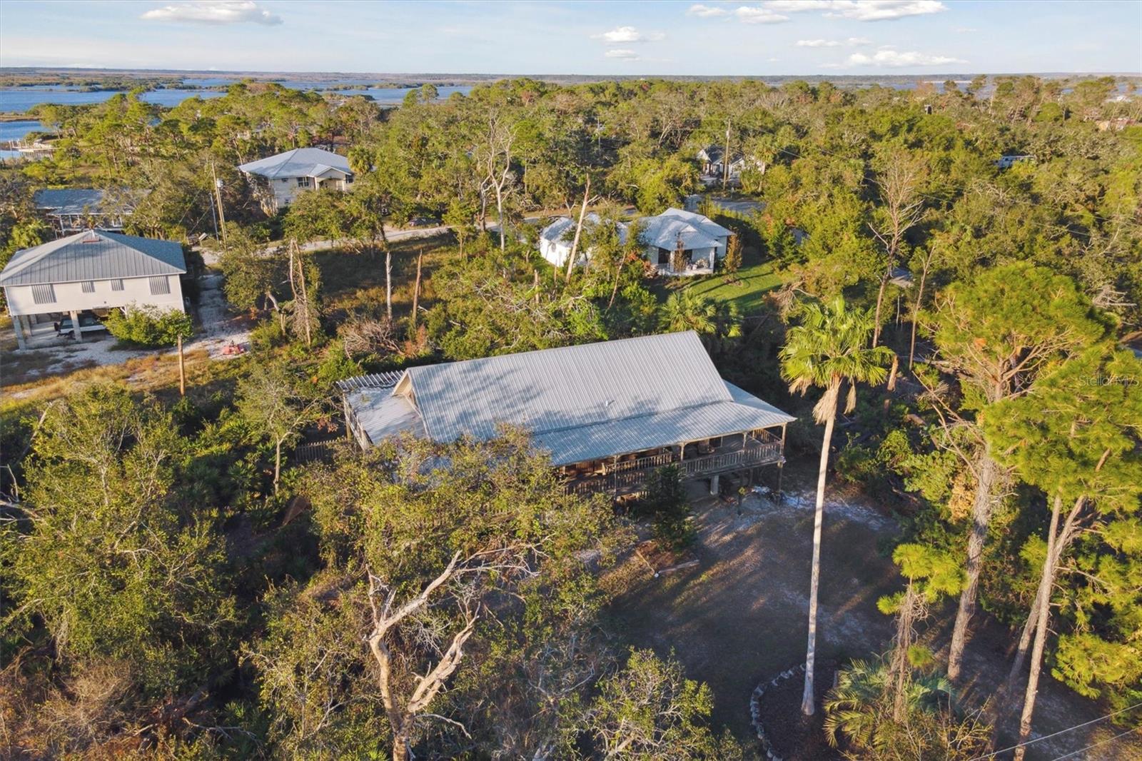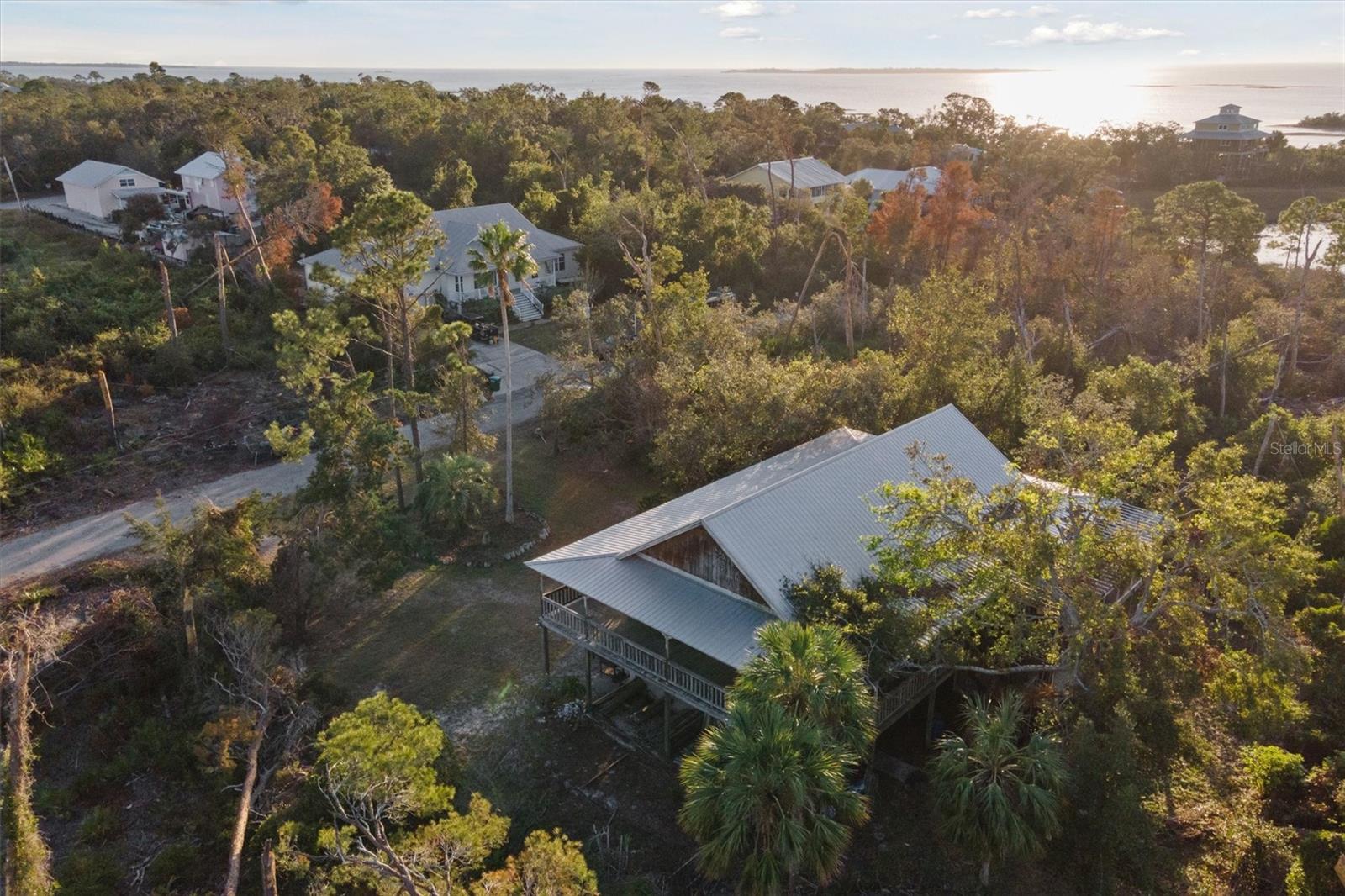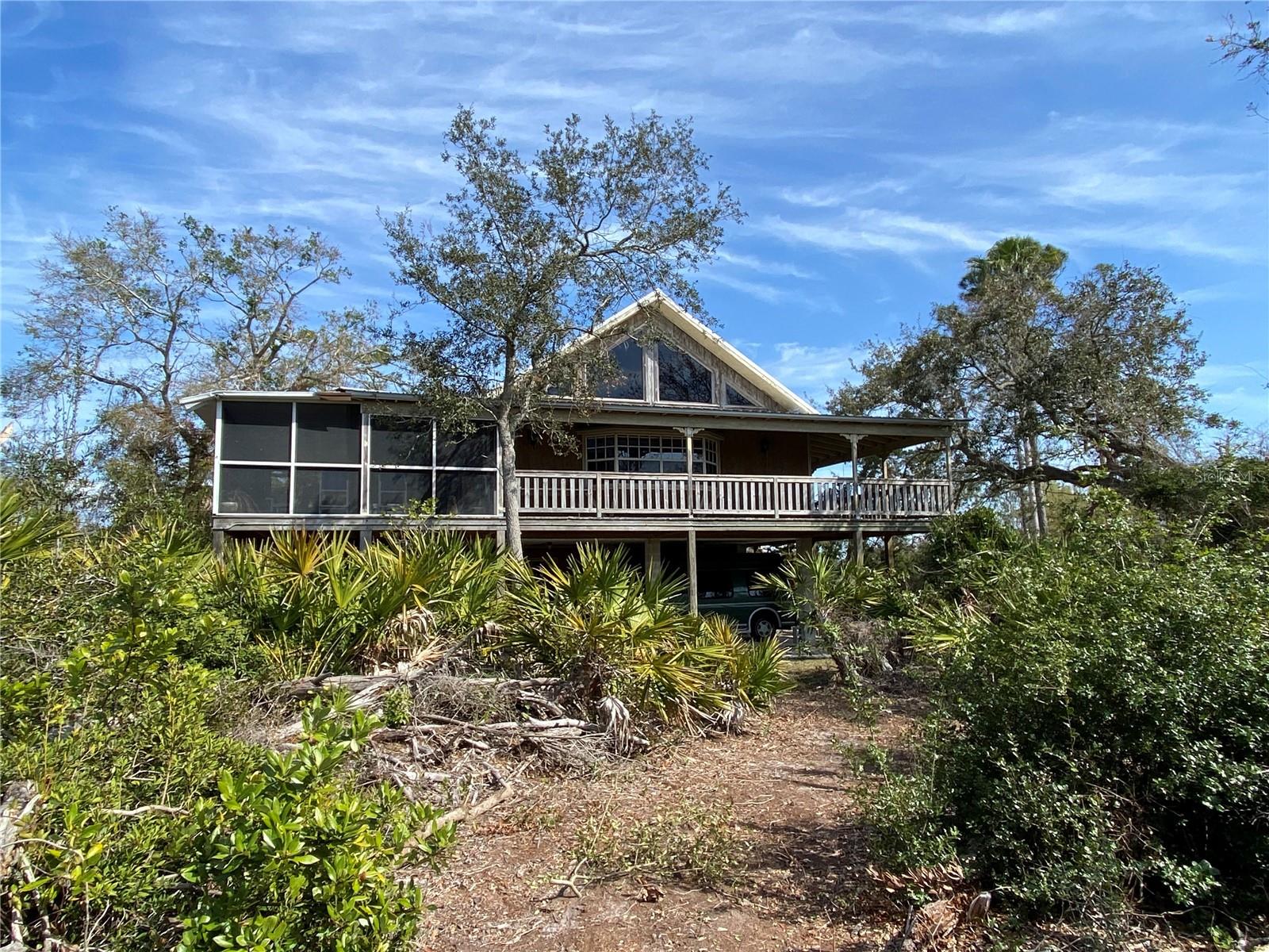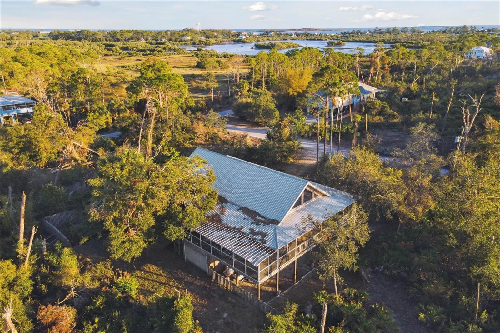 Wonderful custom-built home on high ground in Cedar Key, Florida. Despite recent storms, no damage was sustained at this house as it stands on high land, is further elevated on concrete pilings, and was solidly built by professional builders and local craftsmen. The home sits on a water-view one-third acre lot on the western edge of the island with spectacular views of the sunset through the woods. Two adjoining one-third acre lots are also available for separate purchase which would provide the buyer with an acre of property standing only 50 feet from the Gulf waters. Cedar Key is an old fishing village located in the northwest or Big Bend area of Florida. It is the second oldest city in the state, has around 700 permanent residents, with many native born Cedar Keyans in that number. The City boasts a wide range of nature-related and water-related activities, numerous great eateries, and a fine selection of galleries and shops. The pace on the island is noticeably laid-back and is intentionally Old Florida. No chain stores here! The property itself is located on the western edge of the island in a quiet residential neighborhood. The floor plan of the house is designed to take advantage of views and breezes, with Gulf waters being viewable from all of the main rooms. The structure is surrounded by 8' wide covered porches all around the house and a large screened back porch adjoins the main living room area, providing for a grand living and entertaining space. The feel is distinctly like living in an elevated tree house! Walking in the front door can be an amazing experience as you witness something almost unheard of in construction these days, all solid heart-of-pine wood beams and custom woodwork of that same rare wood throughout the whole house. No expense was spared when constructing and finishing this unique home, and it comes with all new stainless steel kitchen appliances. Finally, downstairs is the garage/game room with a Brunswick oak pool table and entertainment area, a separate attached workshop, and two covered carport areas. Back yard is fenced for your furry friends. Overall a wonderfully designed and sturdily built home that stands out even among some of the most fabulous homes in Cedar Key. Book your appointment now!