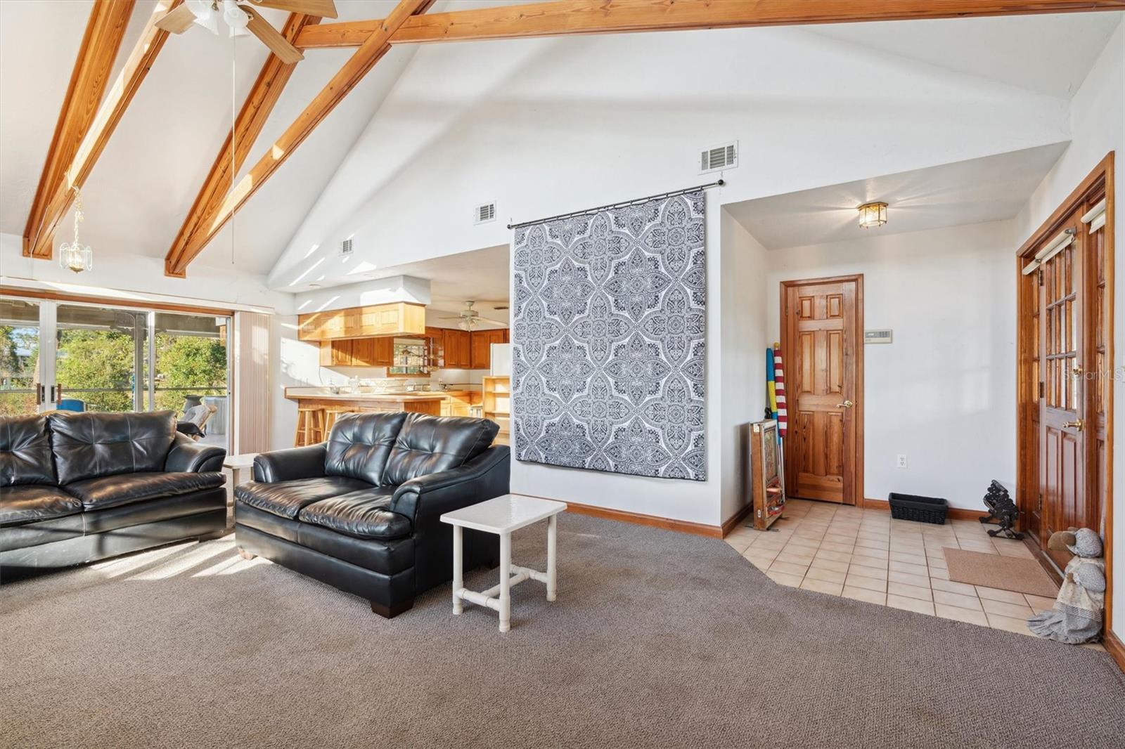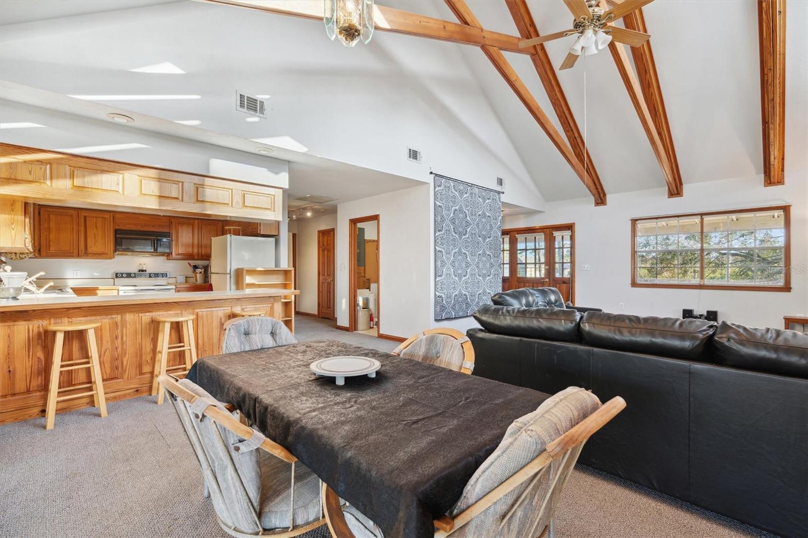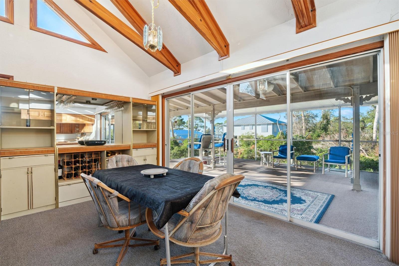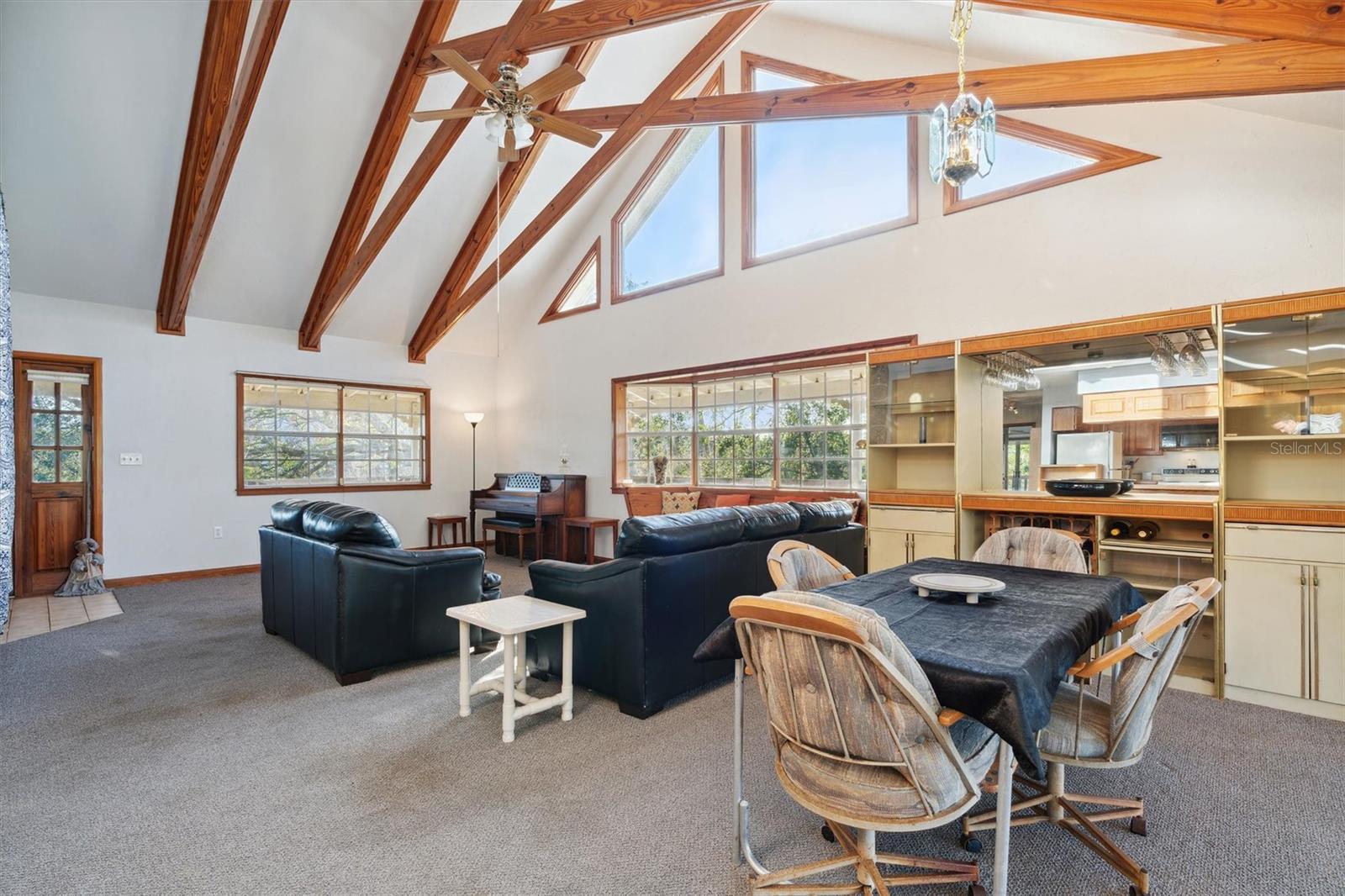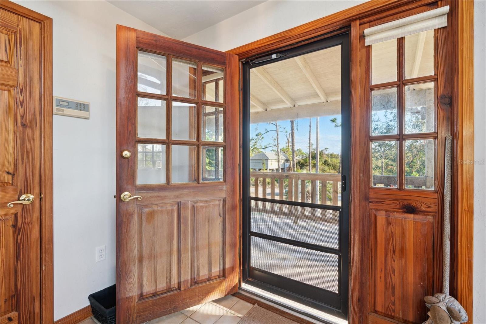 Wonderful custom-built home on high ground in Cedar Key, Florida. Despite recent storms, no damage was sustained at this house as it stands on high land, is further elevated on concrete pilings, and was solidly built by professional builders and local craftsmen. The home sits on a water-view one-third acre lot on the western edge of the island with spectacular views of the sunset through the woods. Two adjoining one-third acre lots are also available for separate purchase which would provide the buyer with an acre of property standing only 50 feet from the Gulf waters. Cedar Key is an old fishing village located in the northwest or Big Bend area of Florida. It is the second oldest city in the state, has around 700 permanent residents, with many native born Cedar Keyans in that number. The City boasts a wide range of nature-related and water-related activities, numerous great eateries, and a fine selection of galleries and shops. The pace on the island is noticeably laid-back and is intentionally Old Florida. No chain stores here! The property itself is located on the western edge of the island in a quiet residential neighborhood. The floor plan of the house is designed to take advantage of views and breezes, with Gulf waters being viewable from all of the main rooms. The structure is surrounded by 8' wide covered porches all around the house and a large screened back porch adjoins the main living room area, providing for a grand living and entertaining space. The feel is distinctly like living in an elevated tree house! Walking in the front door can be an amazing experience as you witness something almost unheard of in construction these days, all solid heart-of-pine wood beams and custom woodwork of that same rare wood throughout the whole house. No expense was spared when constructing and finishing this unique home, and it comes with all new stainless steel kitchen appliances. Finally, downstairs is the garage/game room with a Brunswick oak pool table and entertainment area, a separate attached workshop, and two covered carport areas. Back yard is fenced for your furry friends. Overall a wonderfully designed and sturdily built home that stands out even among some of the most fabulous homes in Cedar Key. Book your appointment now!