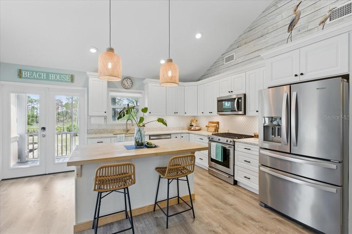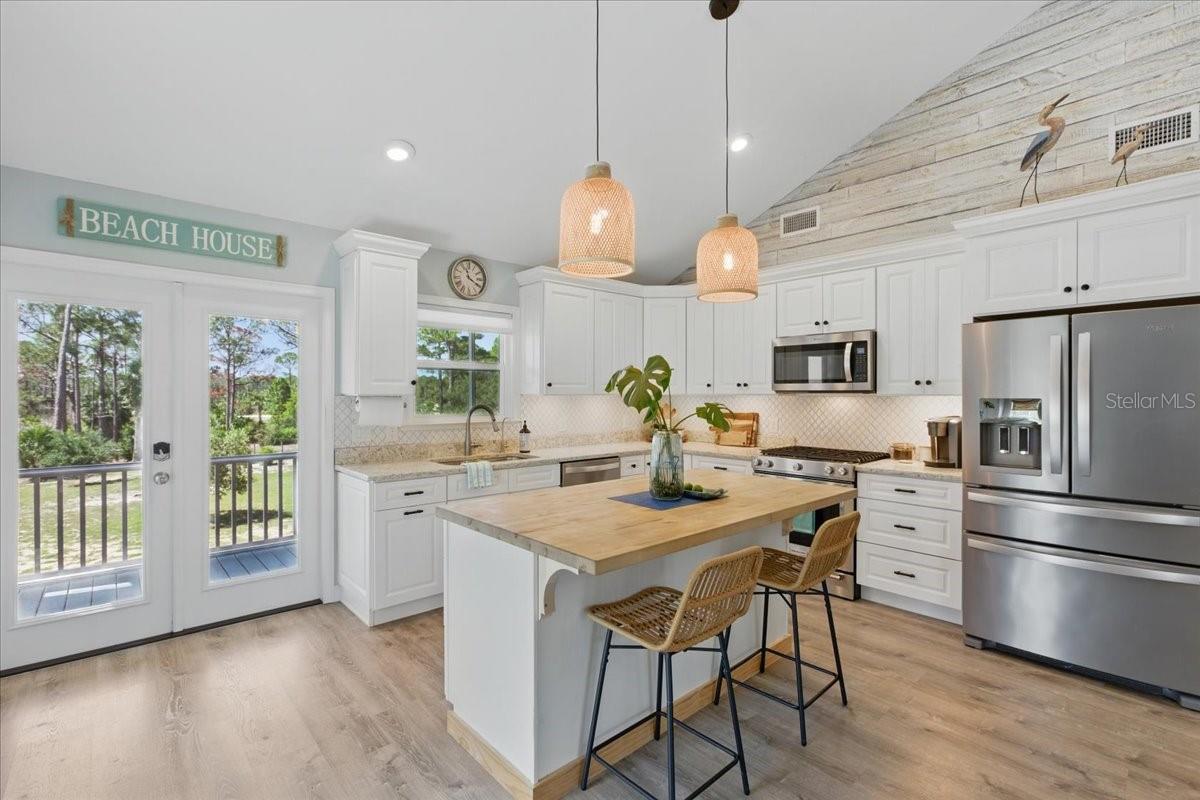SAFE FROM FLOOD AND STORM DAMAGE! Welcome to your Cedar Key coastal retreat! This beautifully maintained 2-bedroom, 2-bath home offers elevated island living with no flood or storm damage—ever. The heart of the home is a stunning, open-concept kitchen and great room with soaring ceilings and abundant natural light. Both bedrooms feature oversized, spa-like en suite baths that make every day feel like a getaway. Designed with peace of mind in mind, all major systems—including the 2025 washer/dryer, 2021 water heater, and HVAC—are LOCATED ON THE SECOND FLOOR, well above flood risk. A brand new GAS STOVE adds luxury and efficiency to the fully equipped kitchen, and the oversized air-conditioned garage provides comfort, storage, and security. This turn-key home comes completely furnished, including kayaks and canoes for immediate adventure. With incredibly low in-county taxes and insurance, plus strong potential as an Airbnb investment, this property offers both charm and value. Whether you're looking for a personal getaway, income-producing rental, or both, this Cedar Key gem is move-in ready and brimming with opportunity. Located a short distance to downtown, bars, and restaurants, you’ll enjoy the perfect blend of peaceful retreat and vibrant coastal living. Airbnb revenue in this area ranges between $3500 and $5500 / month!