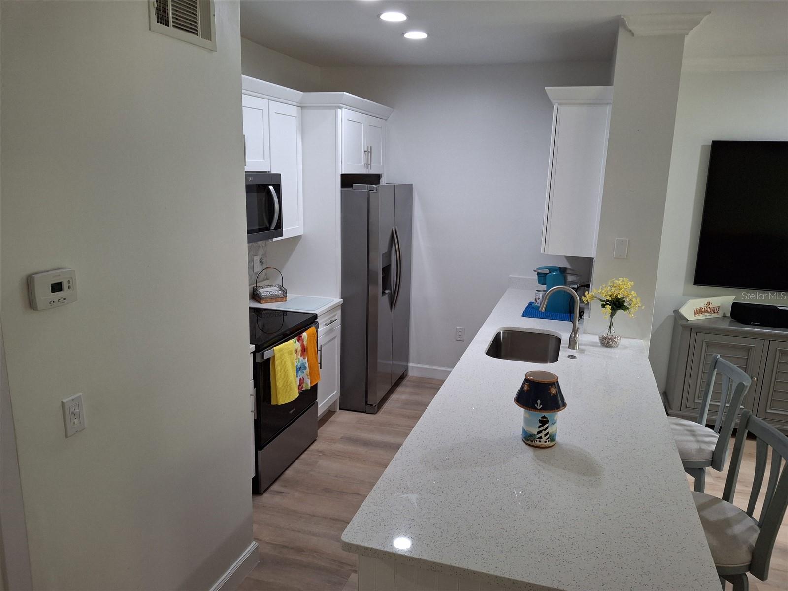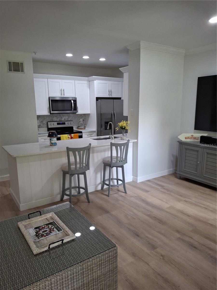 Highly desireable 2 bedroom 1 bath, Water Street condo, overlooks the flowing brook from your front balcony. Just steps to downtown. Both kitchen and bath have been completely remodeled with new appliances, new water heater, new tub and vanity in bathroom. New fans, and elctrical outlets and switches have been updated. Recessed lights add a more updated look, This unit is being sold furnished,