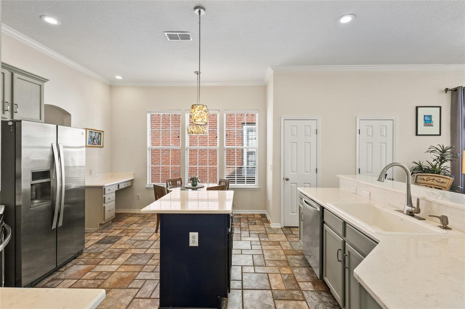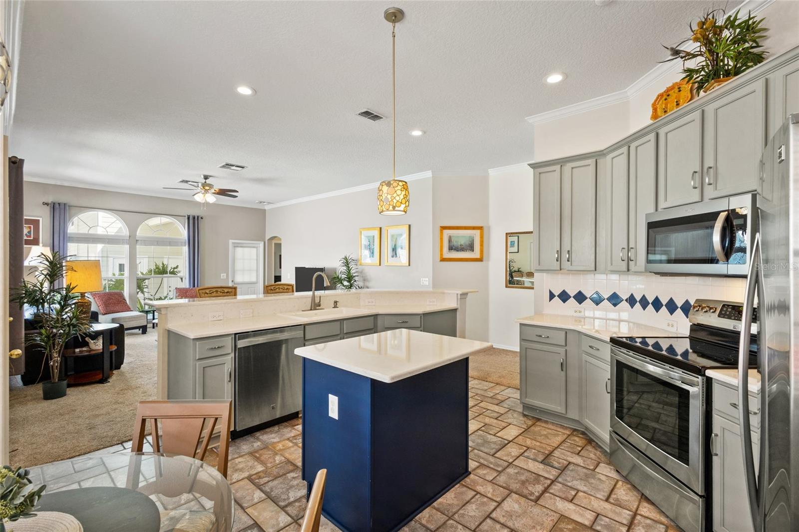 NEW ROOF, NEW AC, NEW HOT WATER HEATER, NEWLY PAINTED EXTERIOR. This SINGLE STORY HOME located near Downtown Celebration Most economically priced single family all one floor in the town built by Disney. This even has an income producing GARAGE APARTMENT in the back that can bring in about $1,595 a month or be used for your guest, office or flex space! And sellers installed Fully Paid Off Tesla Solar Panels in 2019! This type of home is one of the most requested floor plans in all of Celebration. Mere blocks away from Celebration's vibrant downtown town square that has award winning restaurants, bars, retail, post office and coffee shops - Home sits on quiet side street with green park views. And a large covered front porch looking at grassy park, as Celebration Florida is all about inviting front porches and cozy rocking chairs. Enjoy your large fenced-in yard with plenty of grass space. And ample parking with your oversized driveway behind garage. NEW quartz counters throughout the house! Your spacious kitchen flows into huge gathering room with tall ceilings. The split bedroom floor plan mean that the primary bedroom enjoys peace and quiet of true sanctuary in the back of the home. NEW hot water tank installed! And NEW carpeting just put in for the garage apartment. Sellers report electric covering main house and garage apartment was $903 total for 2023. Seller can provide data records upon request. There is very little inventory in a town where residents do not like to leave. This is a Charming Home that is ready for the next family of Celebration residents. Don't miss our video tour! NOTE: Seller will contribute 2% toward paying down buyer’s interest rate or contribute toward home improvements