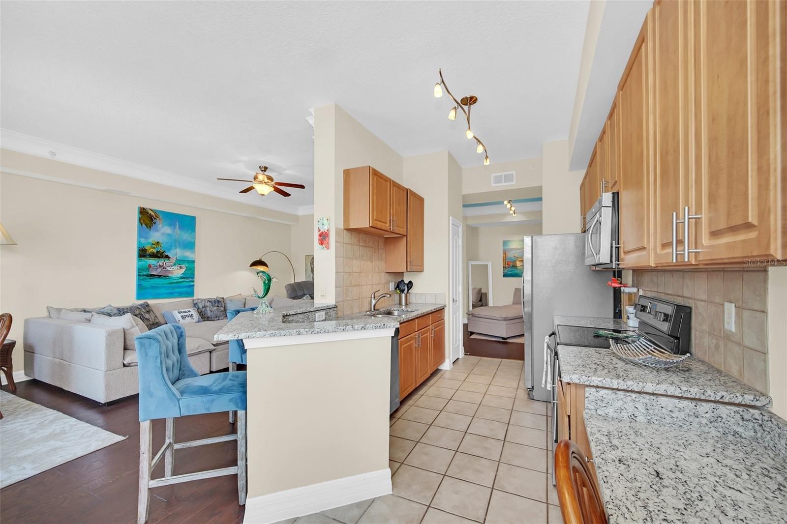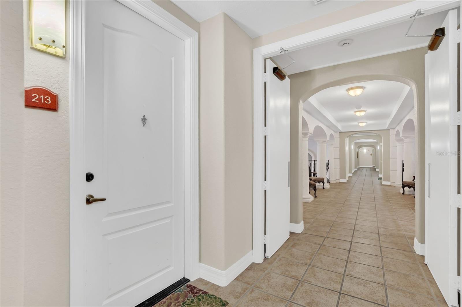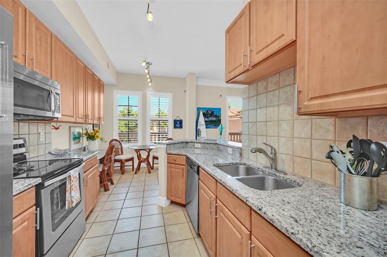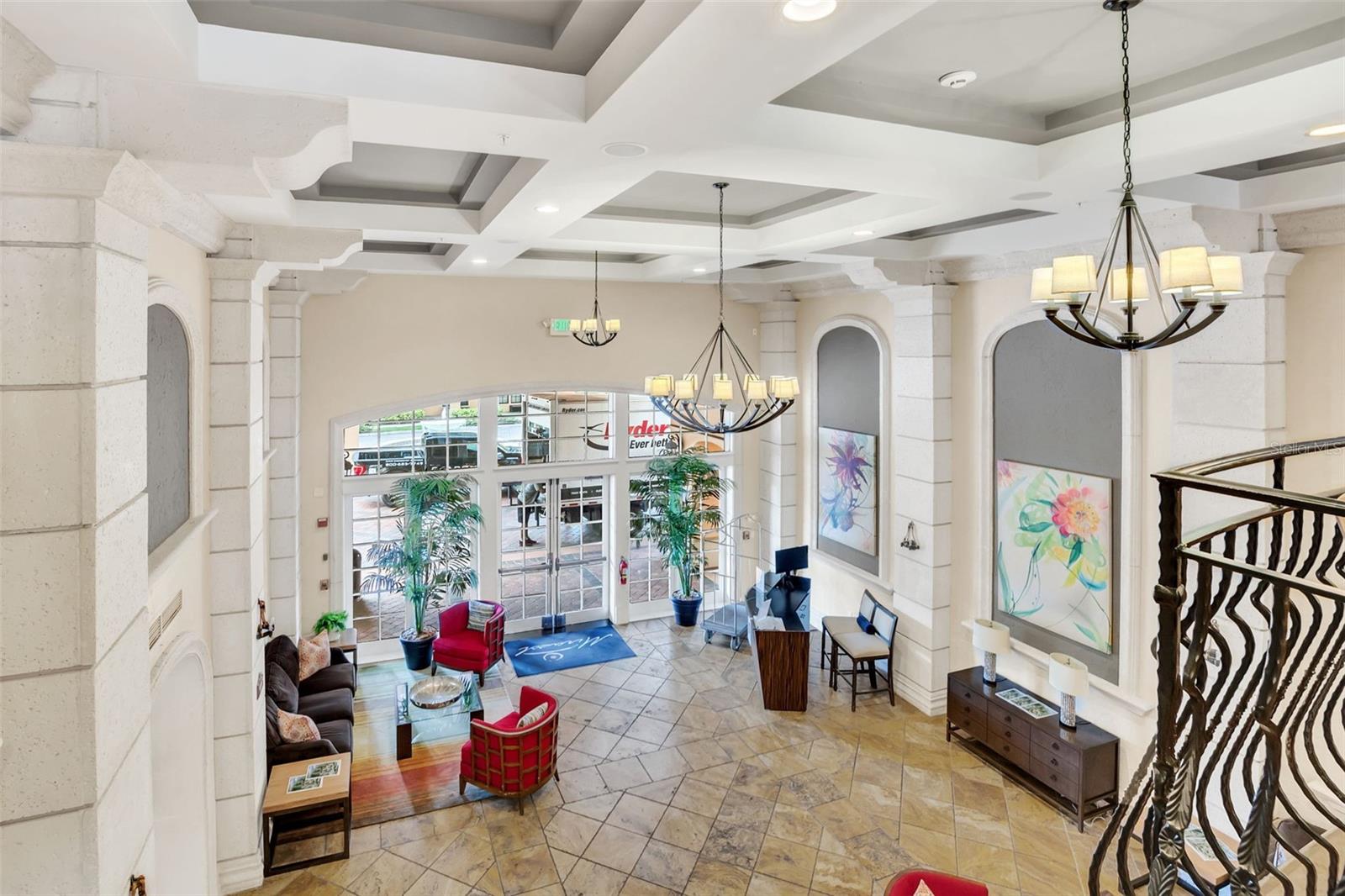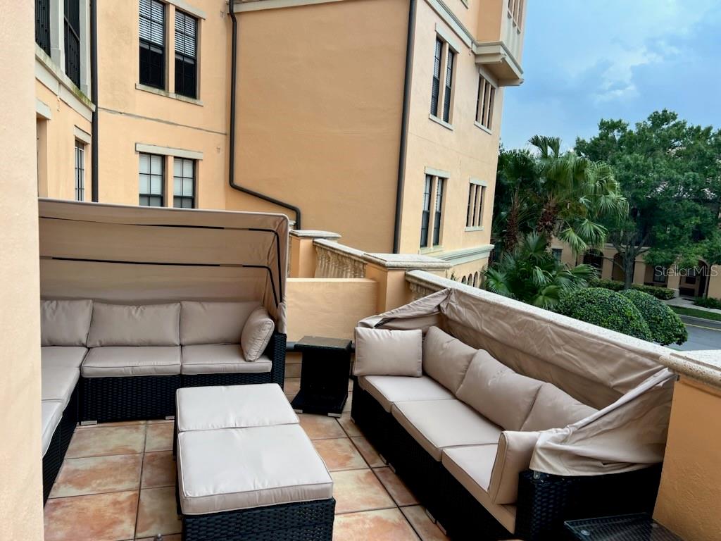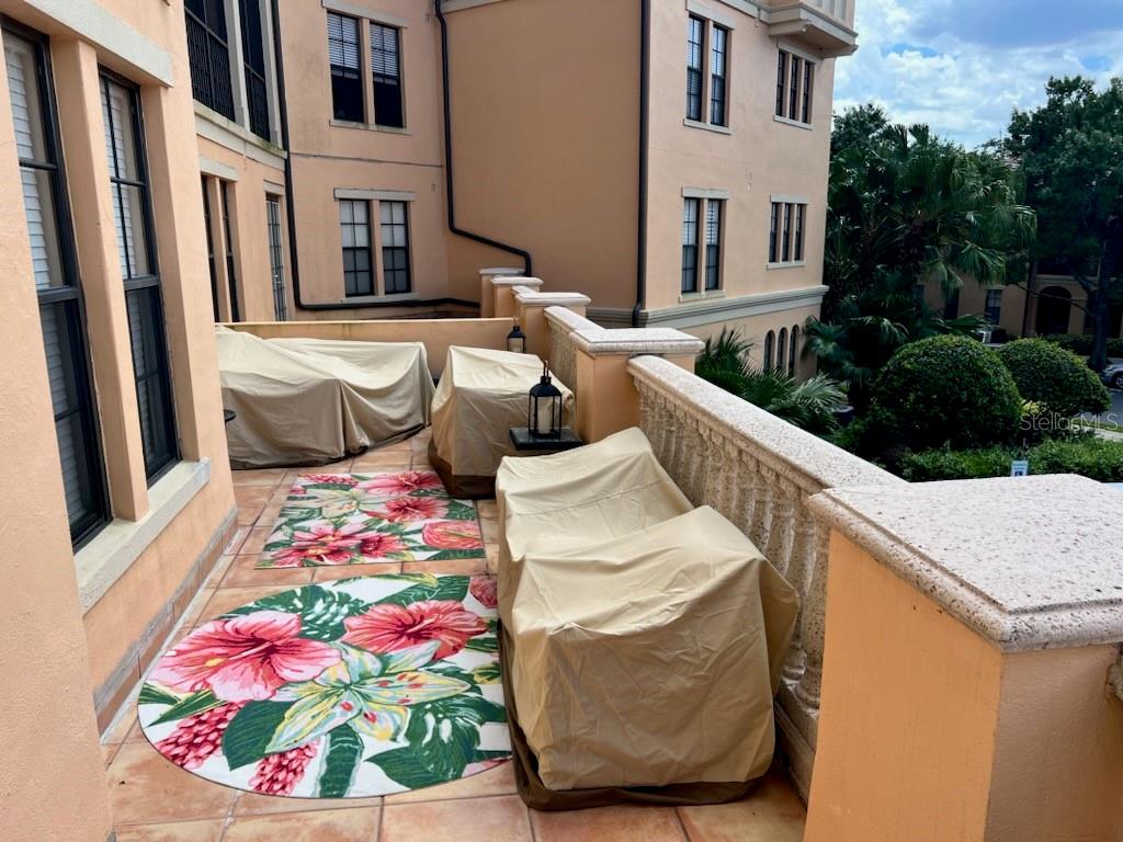 This is the Florida Lifestyle you have been looking with this luxury condo! Immerse yourself in this dream location with a soothing fountain view from Mediterranean style RARE oversized open tiled Veranda. Located in the resort style building this spacious 1 bedroom plan with versatile dining room and breakfast nook with give you all the space you desire. The prime location of this 2nd floor home has convenient elevator service. Equipped with designer track lighting, stainless steel appliances, granite countertops, 42 inch cabinets with tile back splash in eat-in kitchen plus breakfast bar, built-in desk. 10 foot ceilings with crown molding, owners suite includes a custom walk-in closet, luxurious master bath with roman soaking tub and separate shower with waterfall spa jet. New and elegant two inch Plantation shutters on all windows. For laundry, enjoy the new smart LG Wash Tower. Mirasol at Celebration has award winning architecture and all the amenities you could wish for to compliment your lifestyle: on-site day spa, fully equipped fitness center, onsite management, resort style heated pool and spa, clubroom with billiards, business center with private conference room and cyber café. Enjoy the resident lounge with wi-fi, coffee bar and butler's pantry. Connect to 26 miles of celebration trails and a short distance to Downtown Celebration with fine dining, eclectic shops, entertainment, and tennis courts. Available for immediate closing. Take advantage of this ownership opportunity in beautiful Celebration, Florida. Assigned parking space 254 is included.