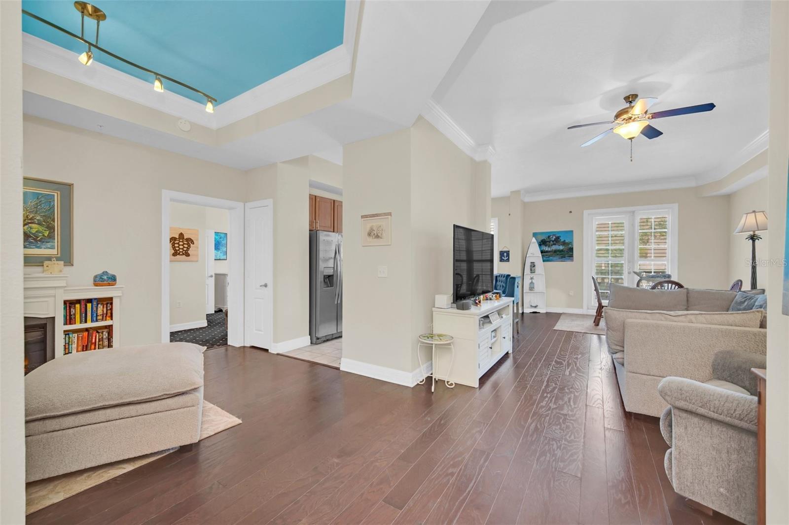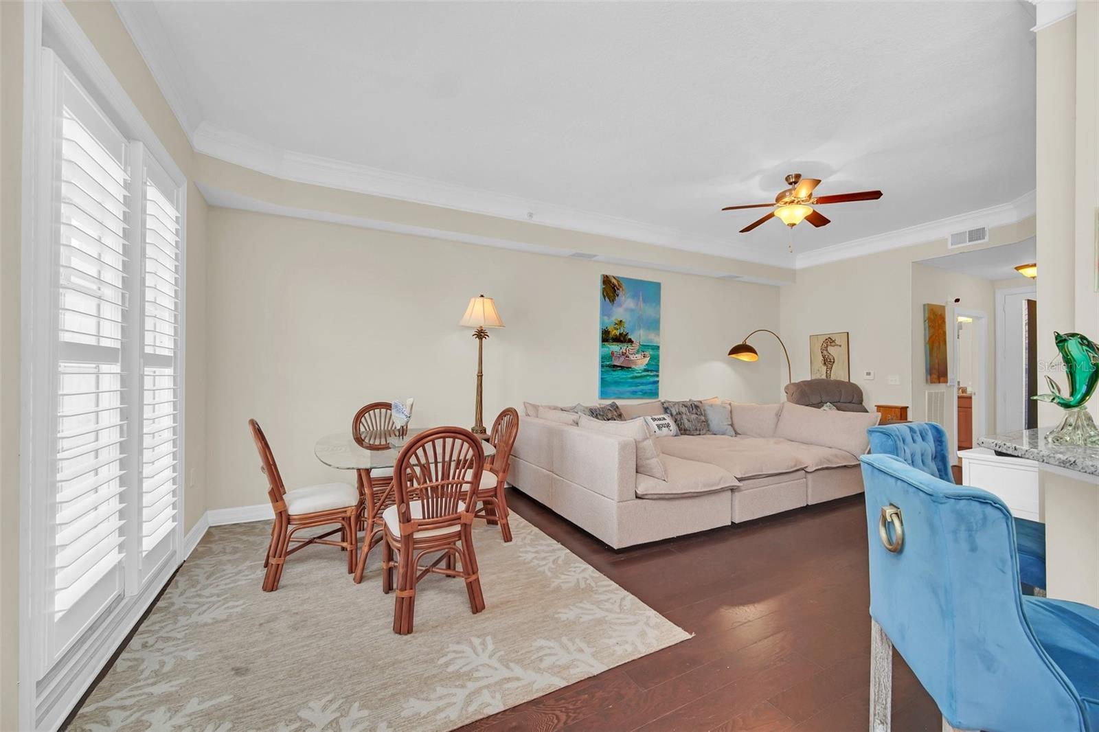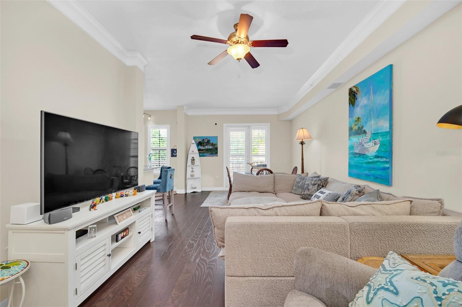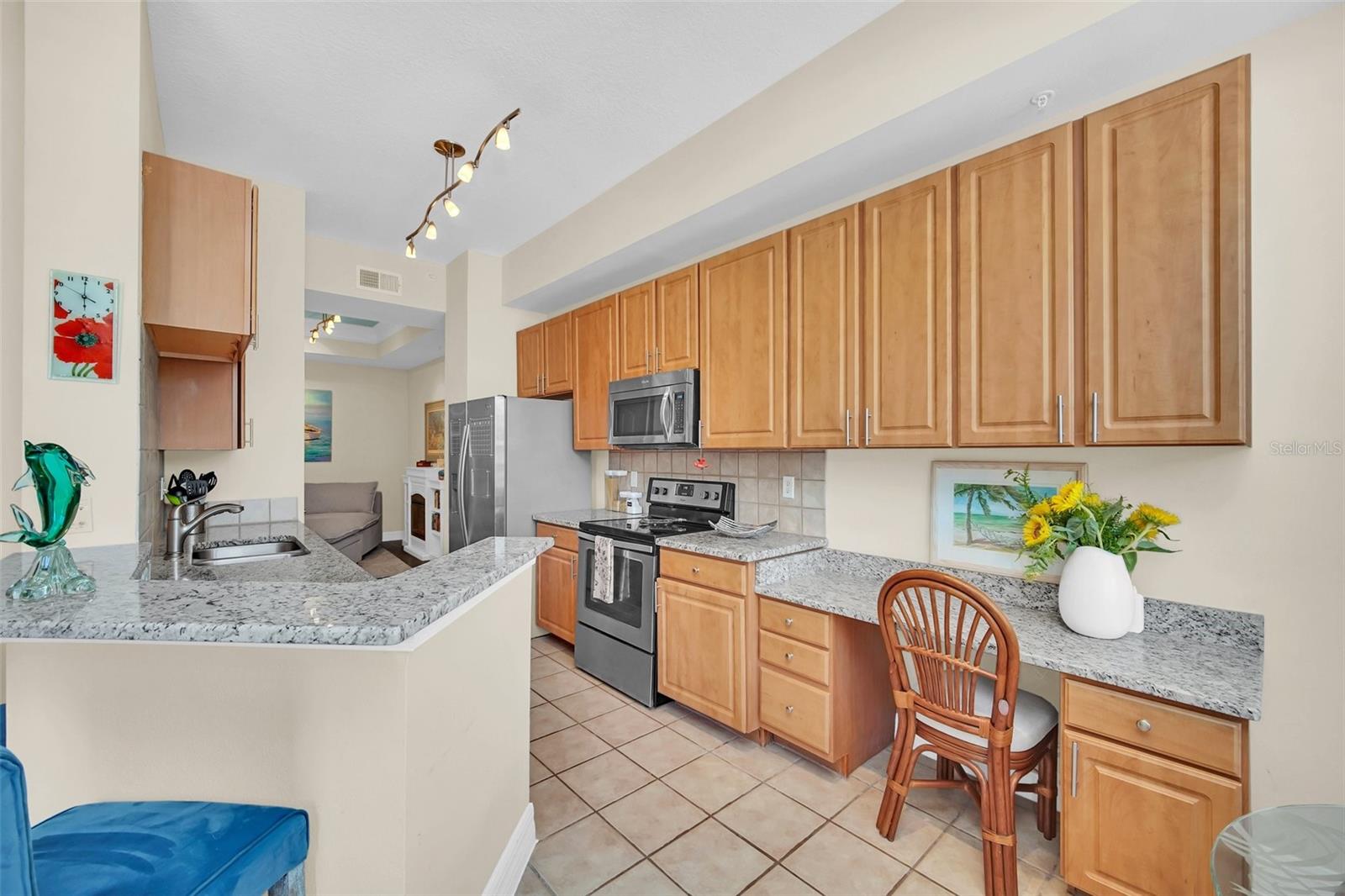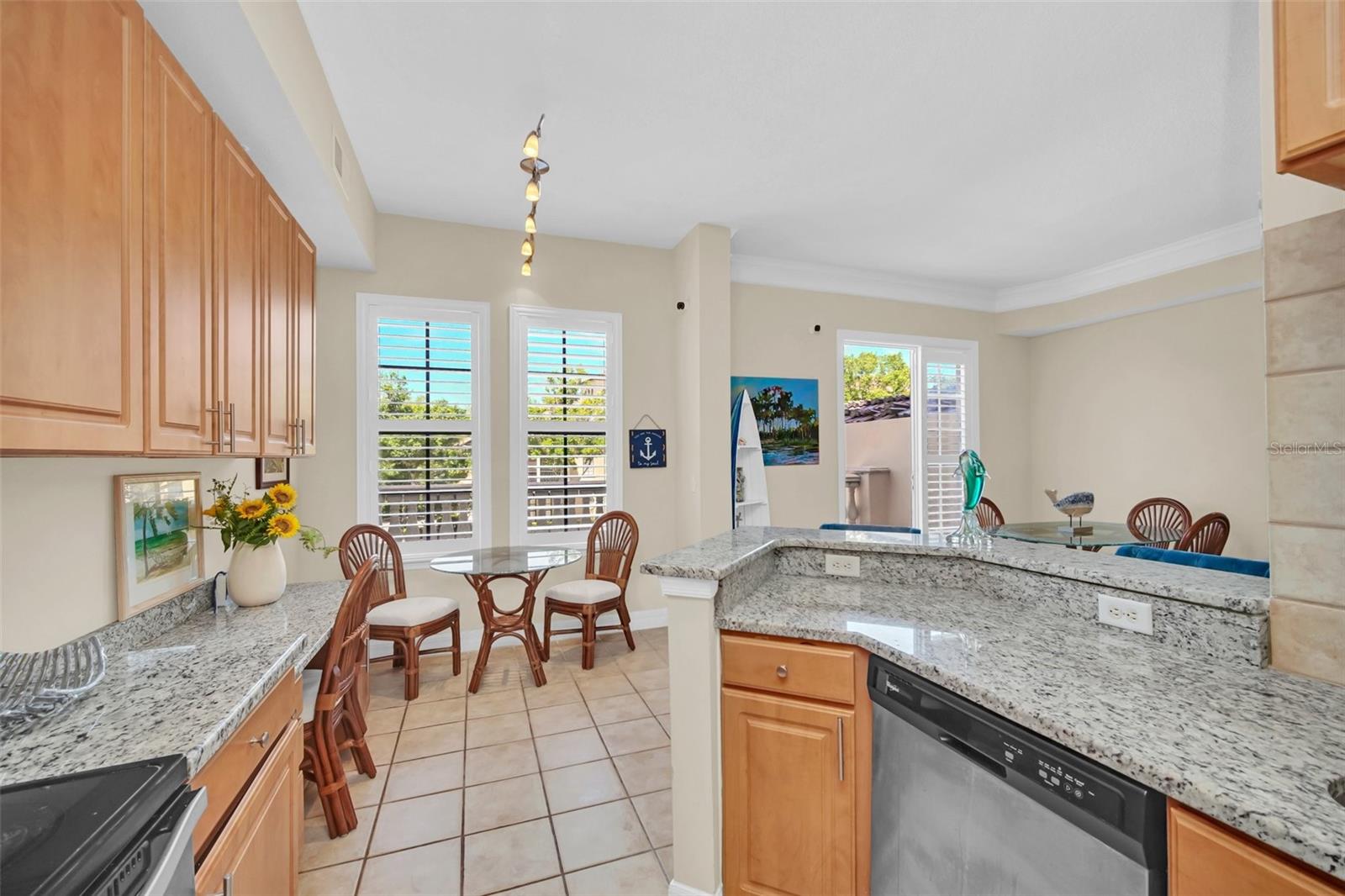 This is the Florida Lifestyle you have been looking with this luxury condo! Immerse yourself in this dream location with a soothing fountain view from Mediterranean style RARE oversized open tiled Veranda. Located in the resort style building this spacious 1 bedroom plan with versatile dining room and breakfast nook with give you all the space you desire. The prime location of this 2nd floor home has convenient elevator service. Equipped with designer track lighting, stainless steel appliances, granite countertops, 42 inch cabinets with tile back splash in eat-in kitchen plus breakfast bar, built-in desk. 10 foot ceilings with crown molding, owners suite includes a custom walk-in closet, luxurious master bath with roman soaking tub and separate shower with waterfall spa jet. New and elegant two inch Plantation shutters on all windows. For laundry, enjoy the new smart LG Wash Tower. Mirasol at Celebration has award winning architecture and all the amenities you could wish for to compliment your lifestyle: on-site day spa, fully equipped fitness center, onsite management, resort style heated pool and spa, clubroom with billiards, business center with private conference room and cyber café. Enjoy the resident lounge with wi-fi, coffee bar and butler's pantry. Connect to 26 miles of celebration trails and a short distance to Downtown Celebration with fine dining, eclectic shops, entertainment, and tennis courts. Available for immediate closing. Take advantage of this ownership opportunity in beautiful Celebration, Florida. Assigned parking space 254 is included.