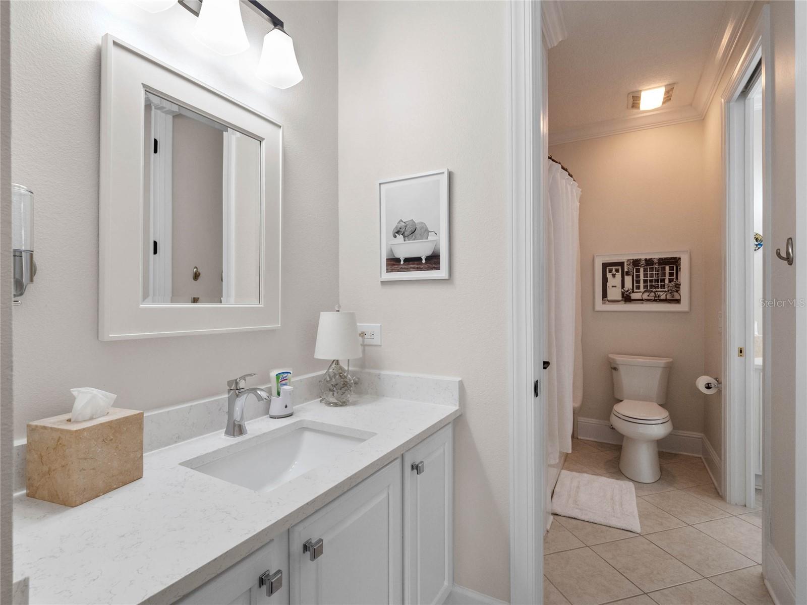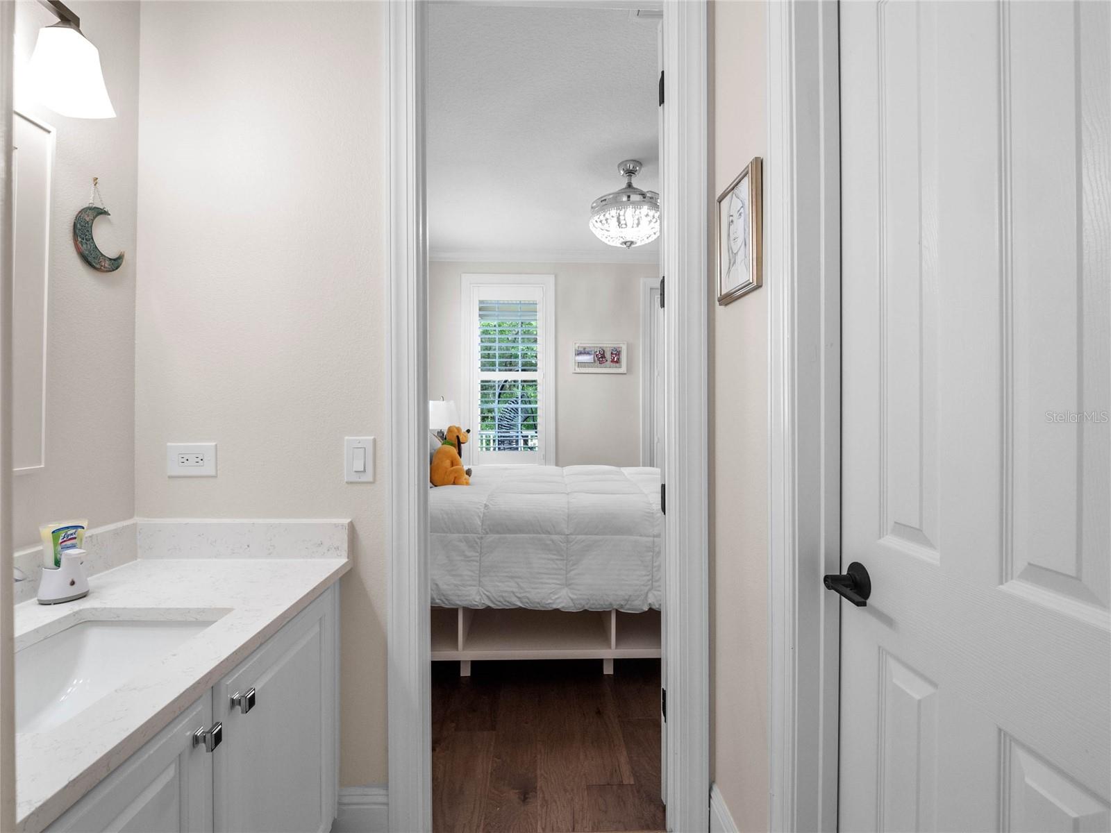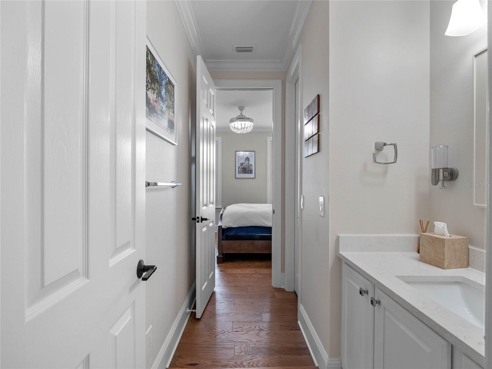 Comfort meets elegance in this spacious 4-bedroom, 3.5-bathroom, 3-car garage Artisan Park home situated on an oversized, professionally landscaped lot. Extensively upgraded in 2018 this home is a must see. Notable features in the home include spacious first floor master, high-end hickory wood floors throughout, staircase rebuilt in 2018, premium hardware and hinges on all interior doors, interior and exterior ceiling fans, crown molding on the first & second floors, 7-inch baseboards, high ceilings, high end custom plantation shutters including all exterior doors, stainless steel kitchen appliances, professionally painted (white) cherry cabinets in kitchen and bathrooms (with under-lighting in kitchen), stone backsplash, granite counter tops, custom closets, premium A/C units - 2018 (with 16 seer, UV lights, and humidity control), remote control blind in window at staircase landing, all bathrooms upgraded with new fixtures and hardware in 2018, and air conditioned garage. Ownership includes exclusive resident access to the Artisan Park Clubhouse with benefits including a fitness center, resort style swimming pool and spa, billiards room, outdoor kitchen, restaurant/bar, plus banquet room. Celebration, FL is a residential community where families can enjoy parks, playgrounds, community pools and expansive nature trails, over 26 miles of walking/biking trails and an abundant venue of entertainment and elegant dining options right in town - they are all yours to luxuriate in from sun up to sun down!