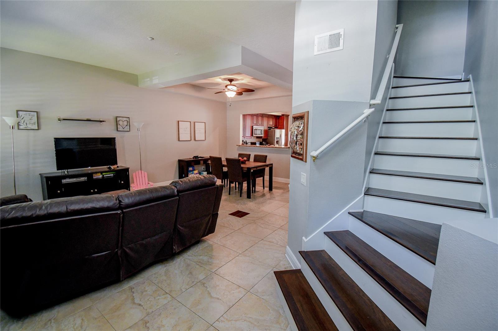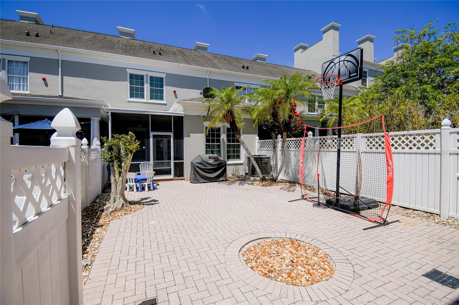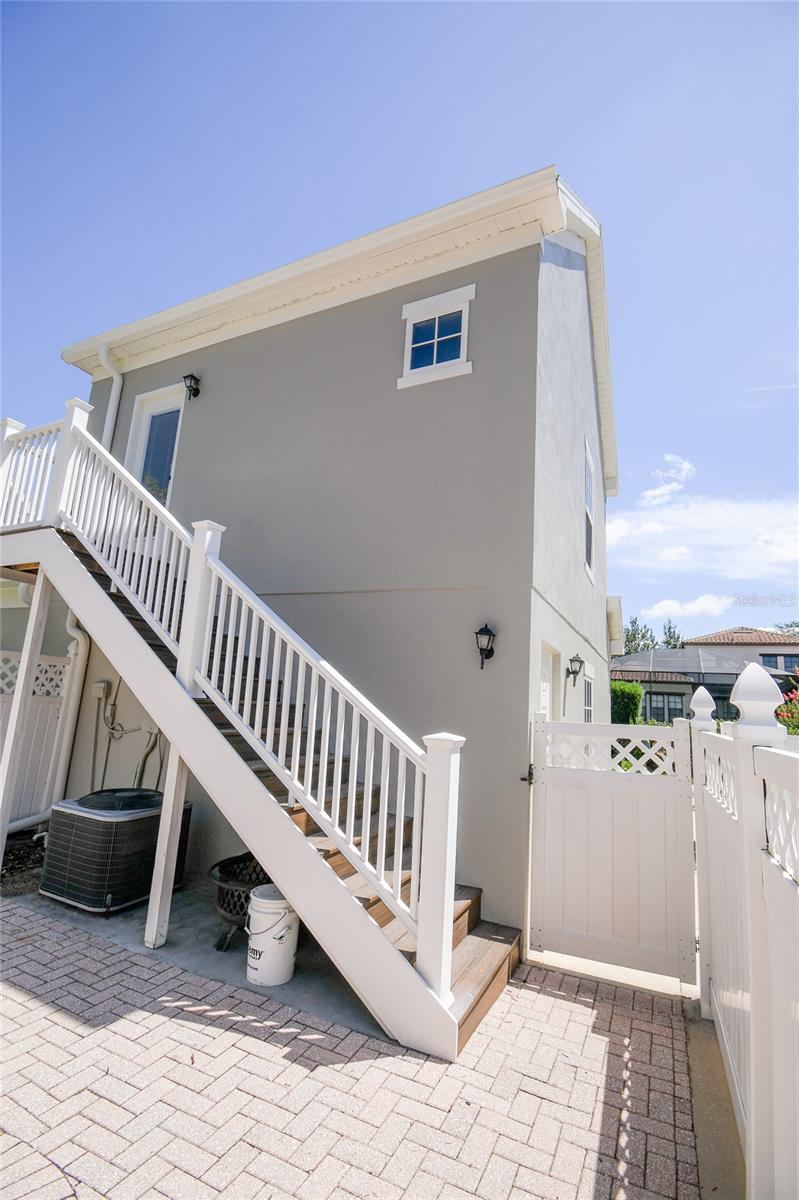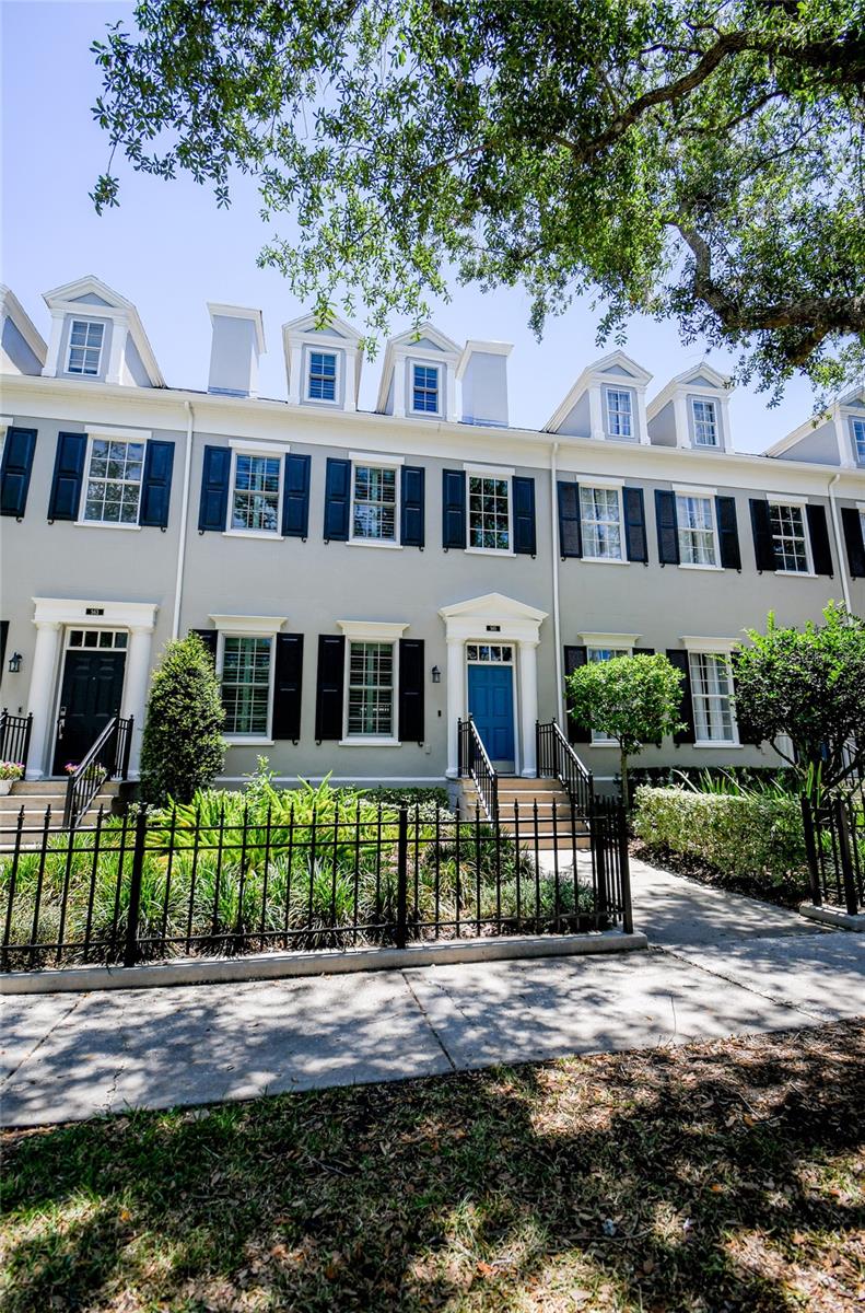 Welcome home! This beautiful, upgraded 3 story townhome located in the heart of Celebration is just two blocks from shopping, restaurants and all of the amazing events hosted in Downtown Celebration. It is also conveniently located across the street from the award-winning Celebration K-8 school. Step inside and experience a spacious family room/dining room combination with a pass through to the kitchen. This area also includes a large walk-in storage closet, custom built-in display cabinet, and half-bath. The kitchen is loaded with cabinet storage, stainless steel appliances and features gorgeous granite counter tops. There is another pass through to a room that can be used for additional dining, a media room or play area, where you will enjoy views of the quaint, fenced courtyard beautifully finished with brick pavers. Completing the first floor is a built-in office space as well as the laundry room with ample cabinet storage. A reconfigured stairway with beautiful, engineered hardwood flooring leads to the second-floor landing and light-filled master suite with a spacious walk-in closet and views of the amazing courtyard. The master bath boasts a large walk-in shower, separate garden tub, granite counter tops, dual sinks, and plenty of storage. A second, nicely sized bedroom can also be found on the 2nd floor. Carpeted steps lead to a huge third bedroom on the third floor that is a suite of its own, complete with a full bath. This home also includes Anderson double pane insulated windows throughout, as well as the option to add a central vacuum system for easy cleaning. Enjoy your morning coffee in the screened-in lanai just outside the kitchen/office area or bask in the abundant Florida sunshine in the welcoming brick paver multi-use courtyard. Above the detached two-car garage is a beautiful garden apartment with a full kitchen and bath. This is a great space for out-of-town guests, an additional bedroom or income generating rental. If you’ve been looking for your next home, congratulations, you’ve found it, here in the heart of beautiful Celebration Florida, the town that Disney built!