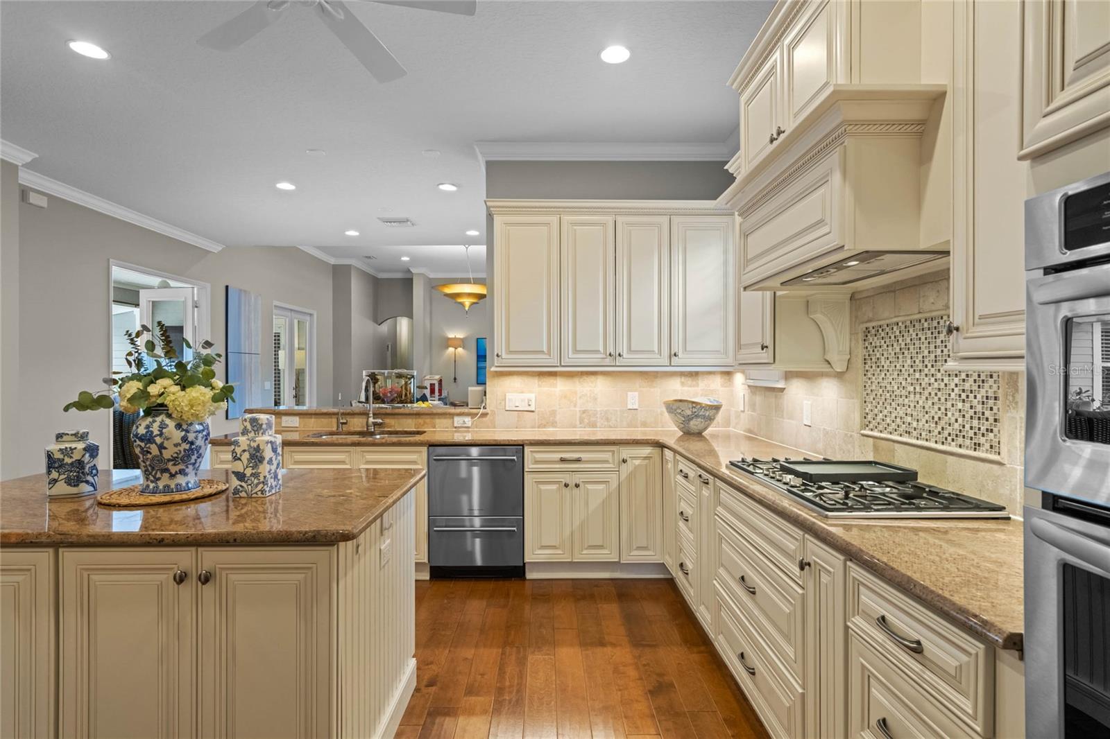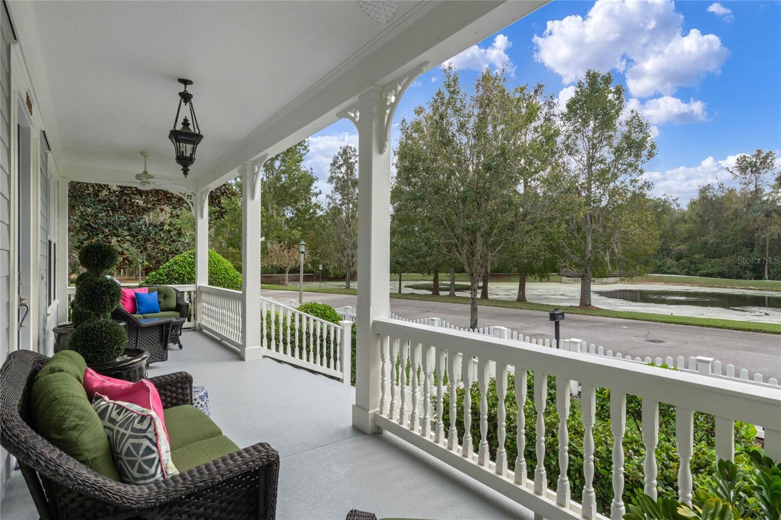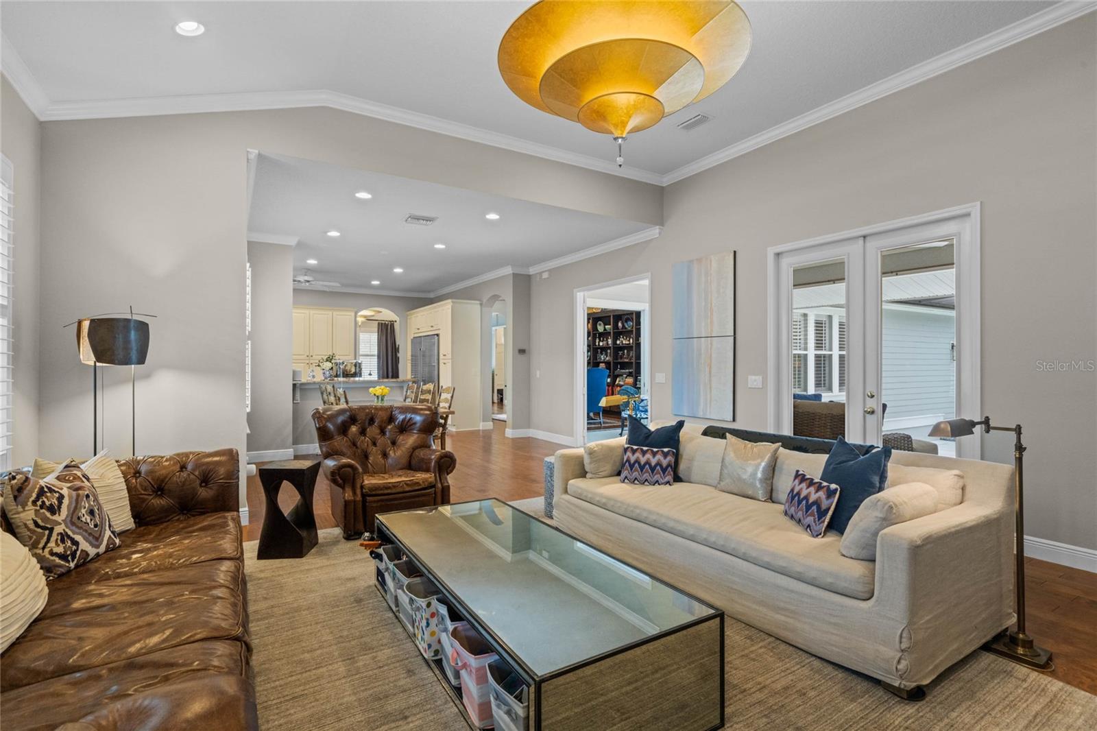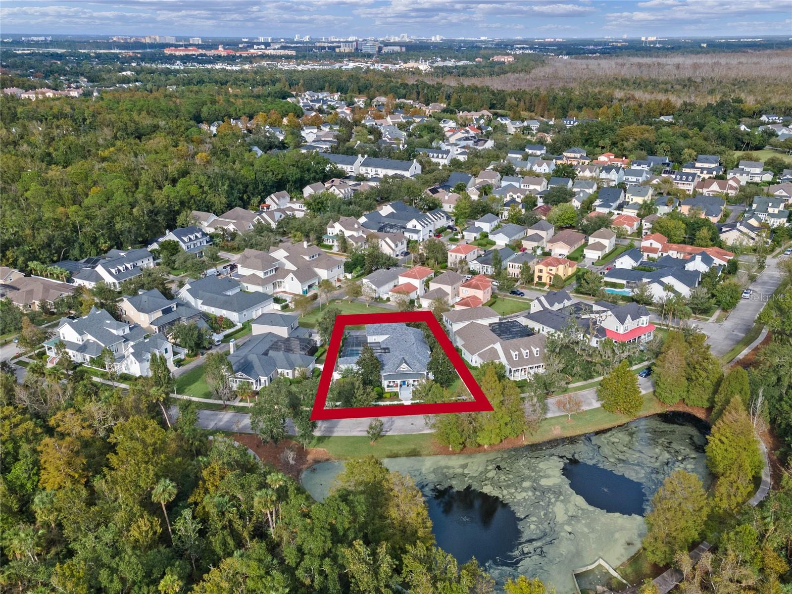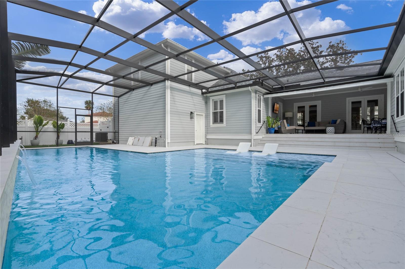 Welcome to 1003 Oak Pond Dr, a stunning single-story Morrison Libby masterpiece WITH A PRIVATE ONE-BEDROOM APARTMENT WITH SEPARATE ENTRANCE in the heart of Celebration, FL, set on an expansive, pie-shaped lot with serene views of water and lush conservation land. This exquisite pool home seamlessly combines elegance and comfort, showcasing breathtaking architectural details like soaring ceilings, graceful archways, and stately columns. From the moment you step inside, the bright, open floor plan welcomes you with an abundance of natural light, pouring through large windows and glass doors that frame the serene backyard and pool. The formal living and dining rooms exude timeless charm, with rich hardwood floors and crown molding. The front sitting room is a perfect retreat, with French doors and double-hung windows that open to views of the expansive patio and fenced backyard—a private oasis for relaxation. The family room, with its impressive volume ceiling, flows seamlessly into the chef’s kitchen, featuring custom cabinetry, granite countertops, and top-of-the-line appliances, including a 2024 Electrolux refrigerator, Thermador gas range, and Fisher & Paykel pull-out dishwasher. A recent gas line addition completes this kitchen’s transformation into a culinary haven. The master suite is a sanctuary of luxury, complete with three large windows that overlook the tranquil backyard. Its en-suite bath is a showcase of refinement, featuring a limestone soaking tub, Bianco Rhino marble counters, marble floors, designer tile, and custom cabinetry. The guest bathroom has also been upgraded with marble accents and custom cabinetry, while the three additional bedrooms offer ample space—all on a single floor. An array of thoughtful upgrades enhances the home’s functionality and aesthetic appeal. Lighting has been meticulously selected, including LED recessed lights with dimmers and elegant Restoration Hardware sconces. The main A/C unit has been replaced with a triple-zone system, incorporating double filtration and air purification. Every bedroom now boasts rich wood flooring, complemented by crown molding and tall baseboards throughout. Above the three-car garage, discover a private one-bedroom apartment with its own entrance, renovated bathroom (2023), and a separate washer and dryer—ideal for guests or extended family. The exterior has been beautifully maintained, with a new roof featuring designer shingles and a waterproof membrane layer, a freshly painted facade, new gutters with guards, and stylish stone pavers leading to the front entrance. Landscape lighting and underground drainage ensure both beauty and functionality. Celebration, FL, offers an exceptional lifestyle with parks, playgrounds, community pools, and over 26 miles of nature trails for walking and biking. Explore dining, shopping, and entertainment venues right in town—all waiting to be enjoyed from sunup to sundown. Experience luxurious, turnkey living at 1003 Oak Pond Dr, where elegance meets modern convenience in one of Florida's most desirable communities. Chandeliers in the Formal living room and family/gathering room do not convey.