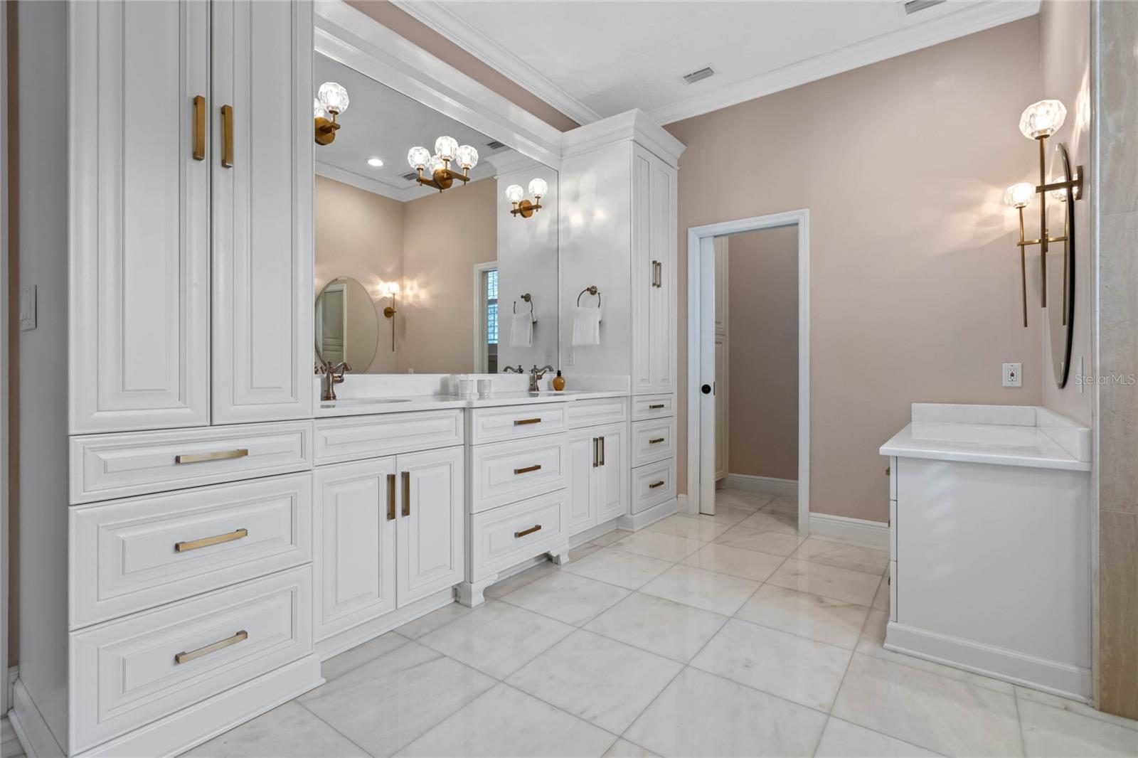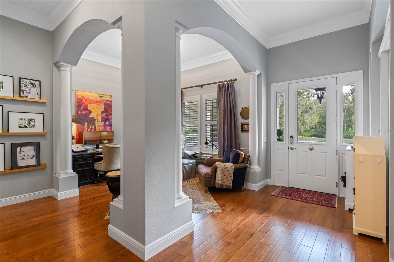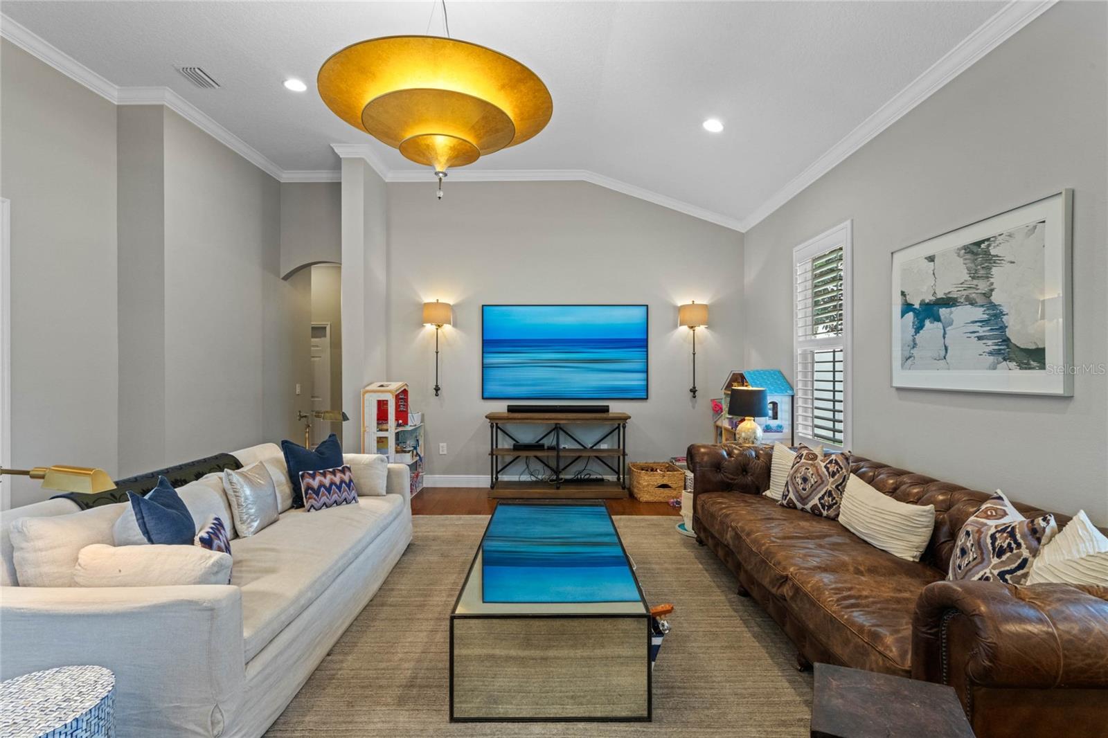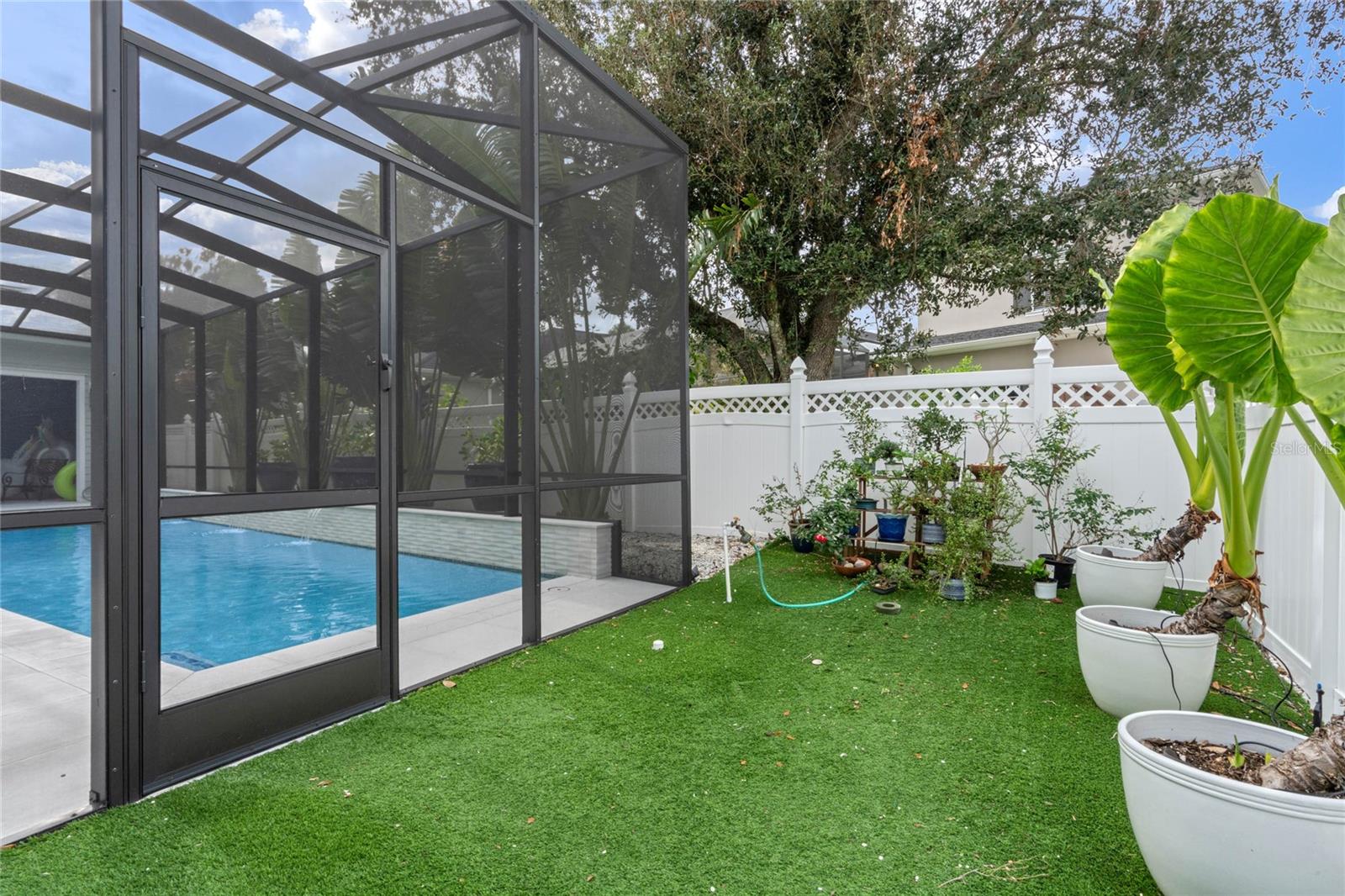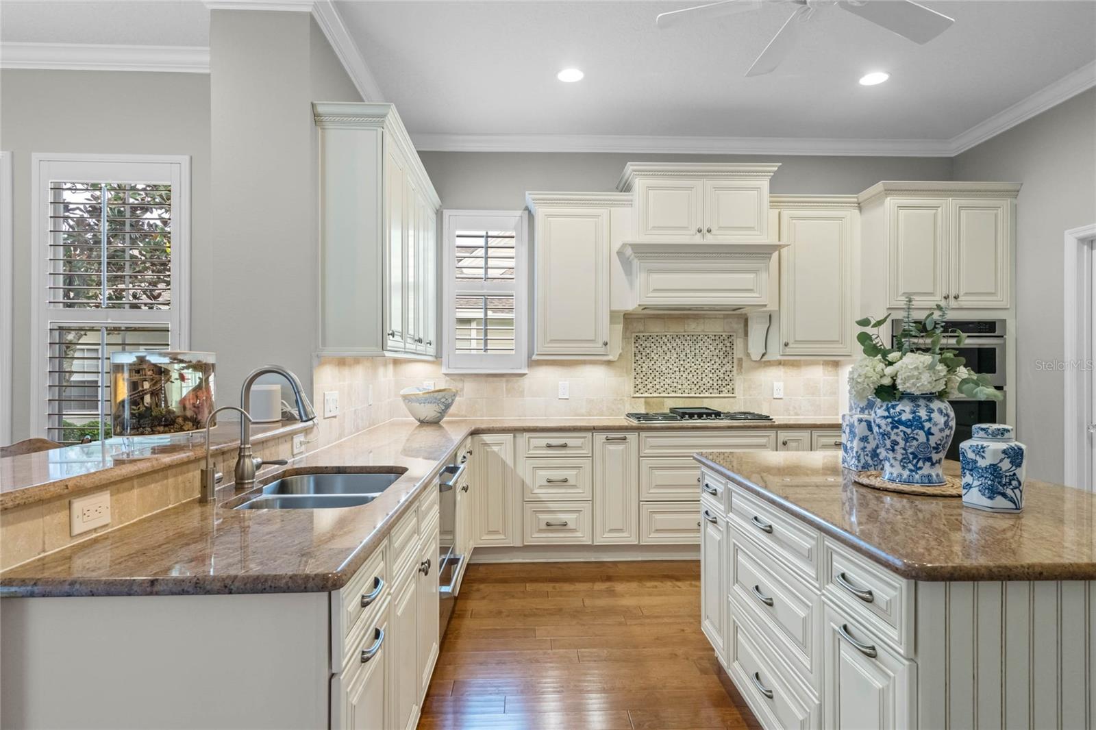 Welcome to 1003 Oak Pond Dr, a stunning single-story Morrison Libby masterpiece WITH A PRIVATE ONE-BEDROOM APARTMENT WITH SEPARATE ENTRANCE in the heart of Celebration, FL, set on an expansive, pie-shaped lot with serene views of water and lush conservation land. This exquisite pool home seamlessly combines elegance and comfort, showcasing breathtaking architectural details like soaring ceilings, graceful archways, and stately columns. From the moment you step inside, the bright, open floor plan welcomes you with an abundance of natural light, pouring through large windows and glass doors that frame the serene backyard and pool. The formal living and dining rooms exude timeless charm, with rich hardwood floors and crown molding. The front sitting room is a perfect retreat, with French doors and double-hung windows that open to views of the expansive patio and fenced backyard—a private oasis for relaxation. The family room, with its impressive volume ceiling, flows seamlessly into the chef’s kitchen, featuring custom cabinetry, granite countertops, and top-of-the-line appliances, including a 2024 Electrolux refrigerator, Thermador gas range, and Fisher & Paykel pull-out dishwasher. A recent gas line addition completes this kitchen’s transformation into a culinary haven. The master suite is a sanctuary of luxury, complete with three large windows that overlook the tranquil backyard. Its en-suite bath is a showcase of refinement, featuring a limestone soaking tub, Bianco Rhino marble counters, marble floors, designer tile, and custom cabinetry. The guest bathroom has also been upgraded with marble accents and custom cabinetry, while the three additional bedrooms offer ample space—all on a single floor. An array of thoughtful upgrades enhances the home’s functionality and aesthetic appeal. Lighting has been meticulously selected, including LED recessed lights with dimmers and elegant Restoration Hardware sconces. The main A/C unit has been replaced with a triple-zone system, incorporating double filtration and air purification. Every bedroom now boasts rich wood flooring, complemented by crown molding and tall baseboards throughout. Above the three-car garage, discover a private one-bedroom apartment with its own entrance, renovated bathroom (2023), and a separate washer and dryer—ideal for guests or extended family. The exterior has been beautifully maintained, with a new roof featuring designer shingles and a waterproof membrane layer, a freshly painted facade, new gutters with guards, and stylish stone pavers leading to the front entrance. Landscape lighting and underground drainage ensure both beauty and functionality. Celebration, FL, offers an exceptional lifestyle with parks, playgrounds, community pools, and over 26 miles of nature trails for walking and biking. Explore dining, shopping, and entertainment venues right in town—all waiting to be enjoyed from sunup to sundown. Experience luxurious, turnkey living at 1003 Oak Pond Dr, where elegance meets modern convenience in one of Florida's most desirable communities. Chandeliers in the Formal living room and family/gathering room do not convey.