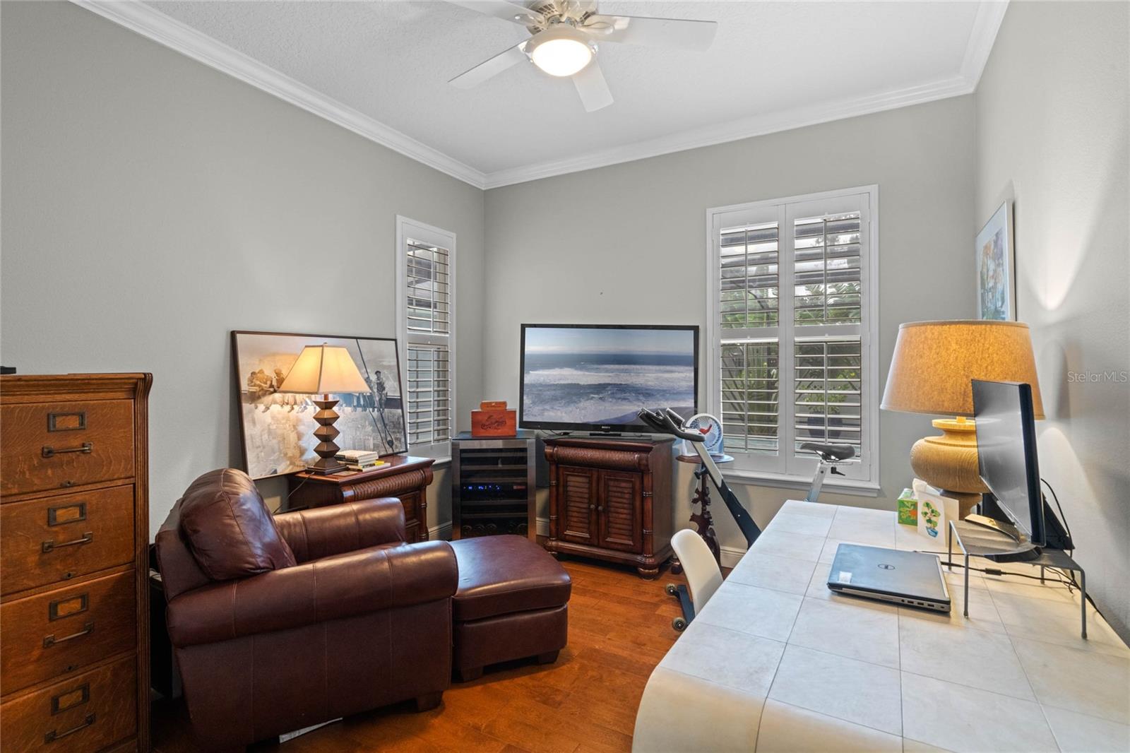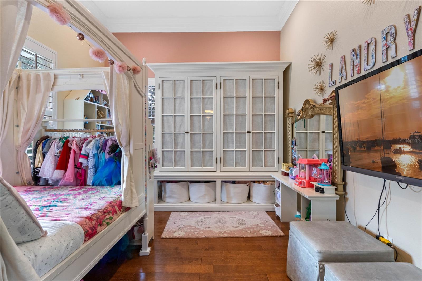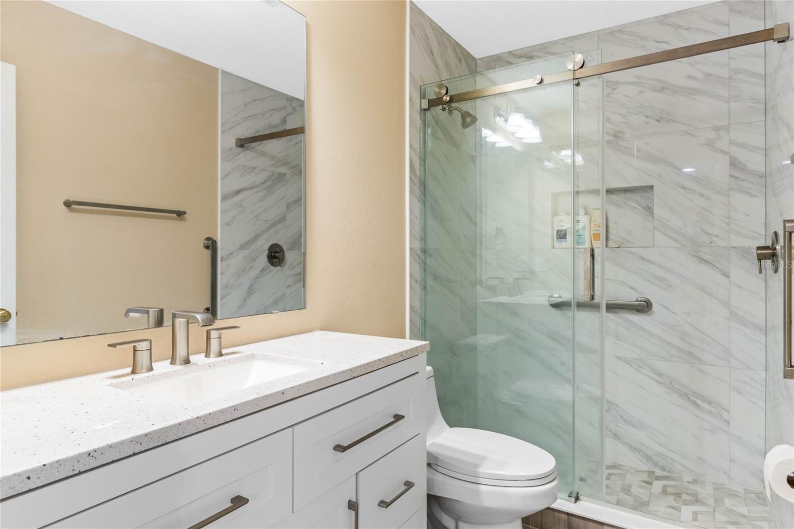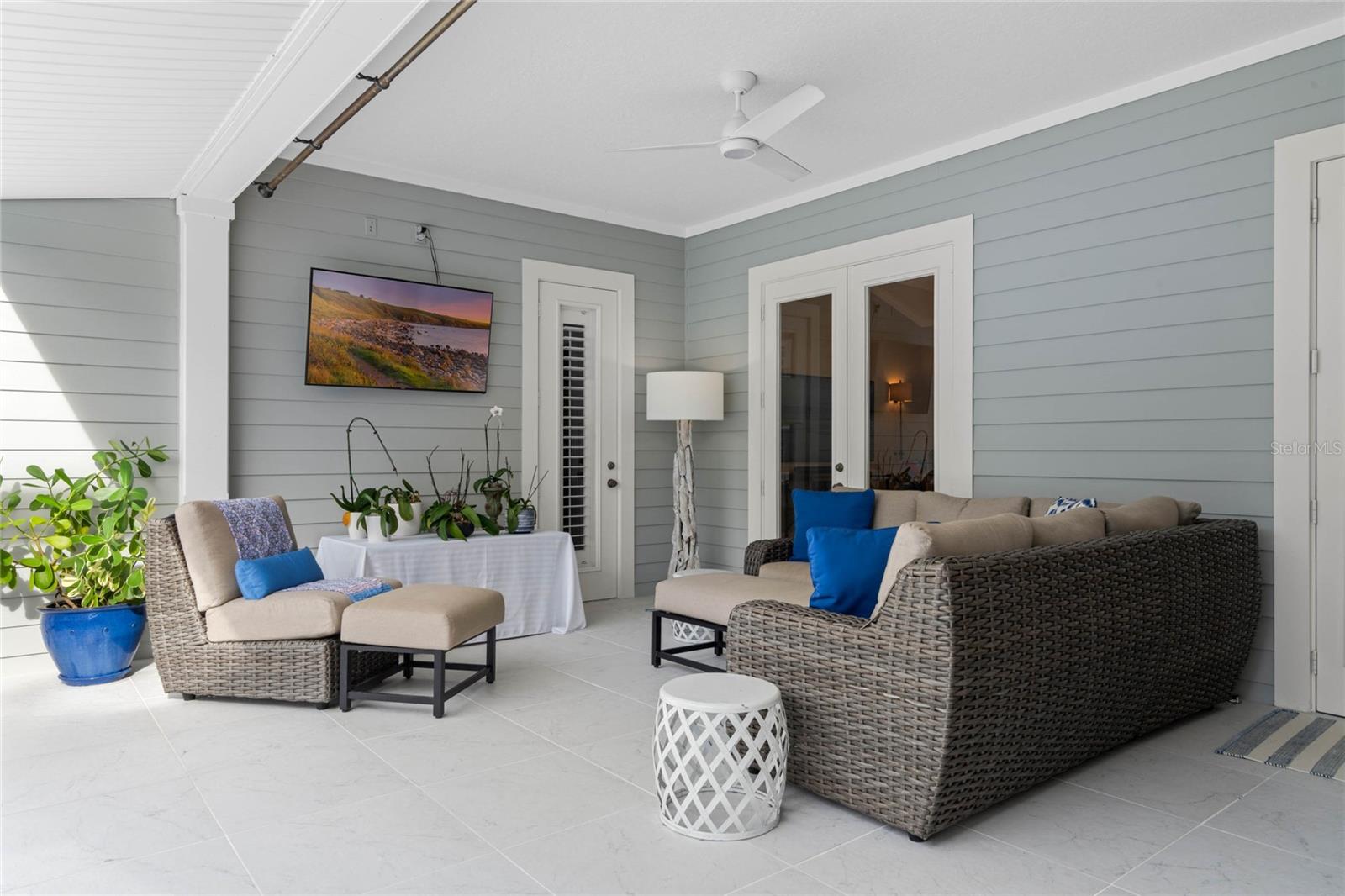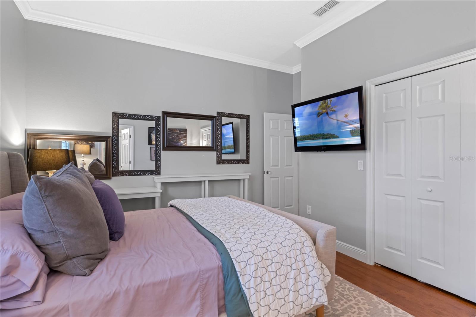 Welcome to 1003 Oak Pond Dr, a stunning single-story Morrison Libby masterpiece WITH A PRIVATE ONE-BEDROOM APARTMENT WITH SEPARATE ENTRANCE in the heart of Celebration, FL, set on an expansive, pie-shaped lot with serene views of water and lush conservation land. This exquisite pool home seamlessly combines elegance and comfort, showcasing breathtaking architectural details like soaring ceilings, graceful archways, and stately columns. From the moment you step inside, the bright, open floor plan welcomes you with an abundance of natural light, pouring through large windows and glass doors that frame the serene backyard and pool. The formal living and dining rooms exude timeless charm, with rich hardwood floors and crown molding. The front sitting room is a perfect retreat, with French doors and double-hung windows that open to views of the expansive patio and fenced backyard—a private oasis for relaxation. The family room, with its impressive volume ceiling, flows seamlessly into the chef’s kitchen, featuring custom cabinetry, granite countertops, and top-of-the-line appliances, including a 2024 Electrolux refrigerator, Thermador gas range, and Fisher & Paykel pull-out dishwasher. A recent gas line addition completes this kitchen’s transformation into a culinary haven. The master suite is a sanctuary of luxury, complete with three large windows that overlook the tranquil backyard. Its en-suite bath is a showcase of refinement, featuring a limestone soaking tub, Bianco Rhino marble counters, marble floors, designer tile, and custom cabinetry. The guest bathroom has also been upgraded with marble accents and custom cabinetry, while the three additional bedrooms offer ample space—all on a single floor. An array of thoughtful upgrades enhances the home’s functionality and aesthetic appeal. Lighting has been meticulously selected, including LED recessed lights with dimmers and elegant Restoration Hardware sconces. The main A/C unit has been replaced with a triple-zone system, incorporating double filtration and air purification. Every bedroom now boasts rich wood flooring, complemented by crown molding and tall baseboards throughout. Above the three-car garage, discover a private one-bedroom apartment with its own entrance, renovated bathroom (2023), and a separate washer and dryer—ideal for guests or extended family. The exterior has been beautifully maintained, with a new roof featuring designer shingles and a waterproof membrane layer, a freshly painted facade, new gutters with guards, and stylish stone pavers leading to the front entrance. Landscape lighting and underground drainage ensure both beauty and functionality. Celebration, FL, offers an exceptional lifestyle with parks, playgrounds, community pools, and over 26 miles of nature trails for walking and biking. Explore dining, shopping, and entertainment venues right in town—all waiting to be enjoyed from sunup to sundown. Experience luxurious, turnkey living at 1003 Oak Pond Dr, where elegance meets modern convenience in one of Florida's most desirable communities. Chandeliers in the Formal living room and family/gathering room do not convey.