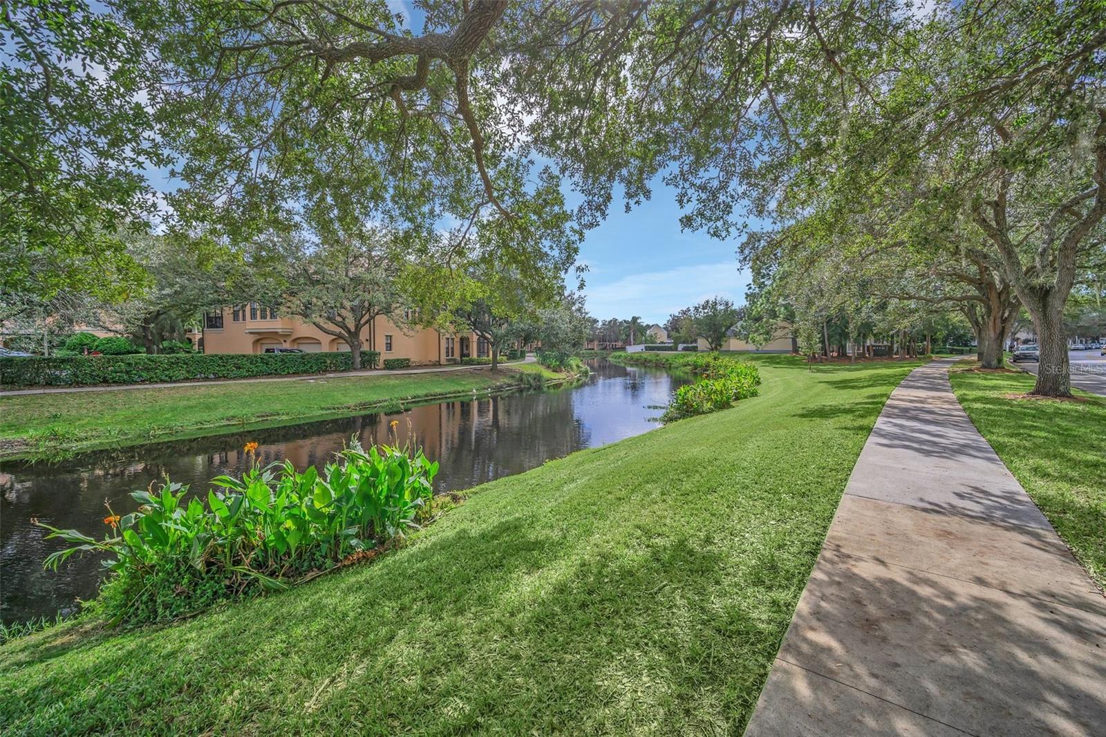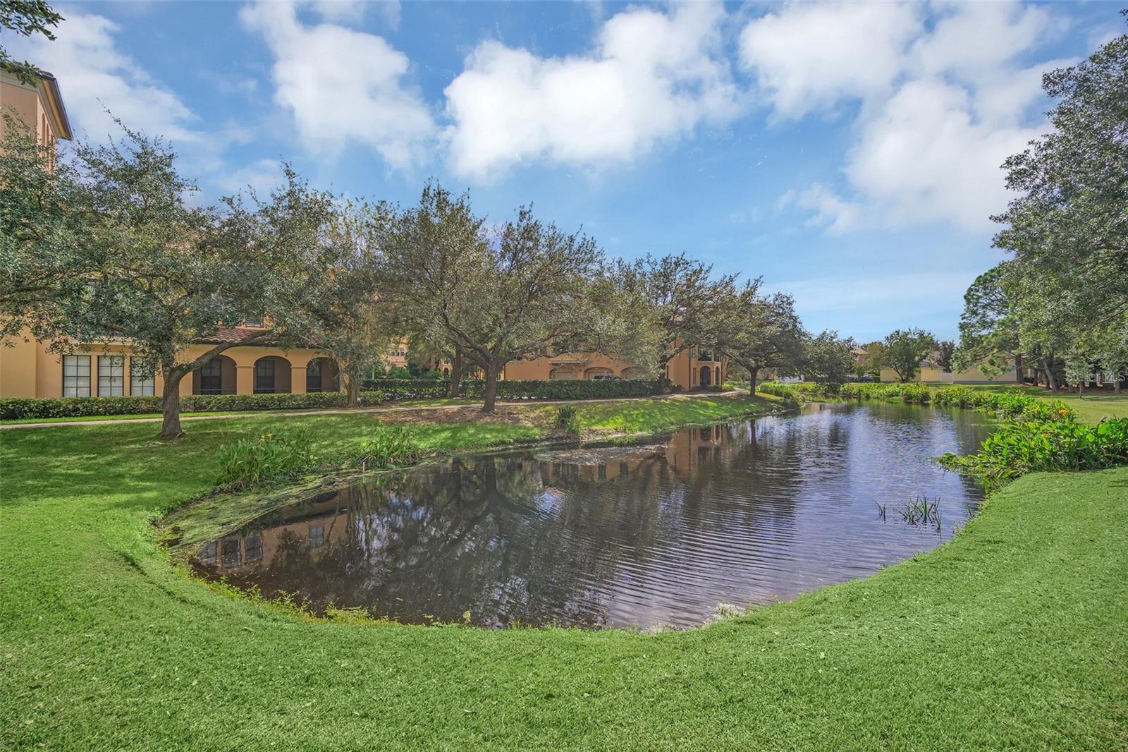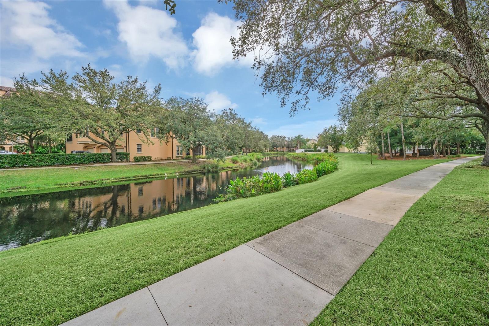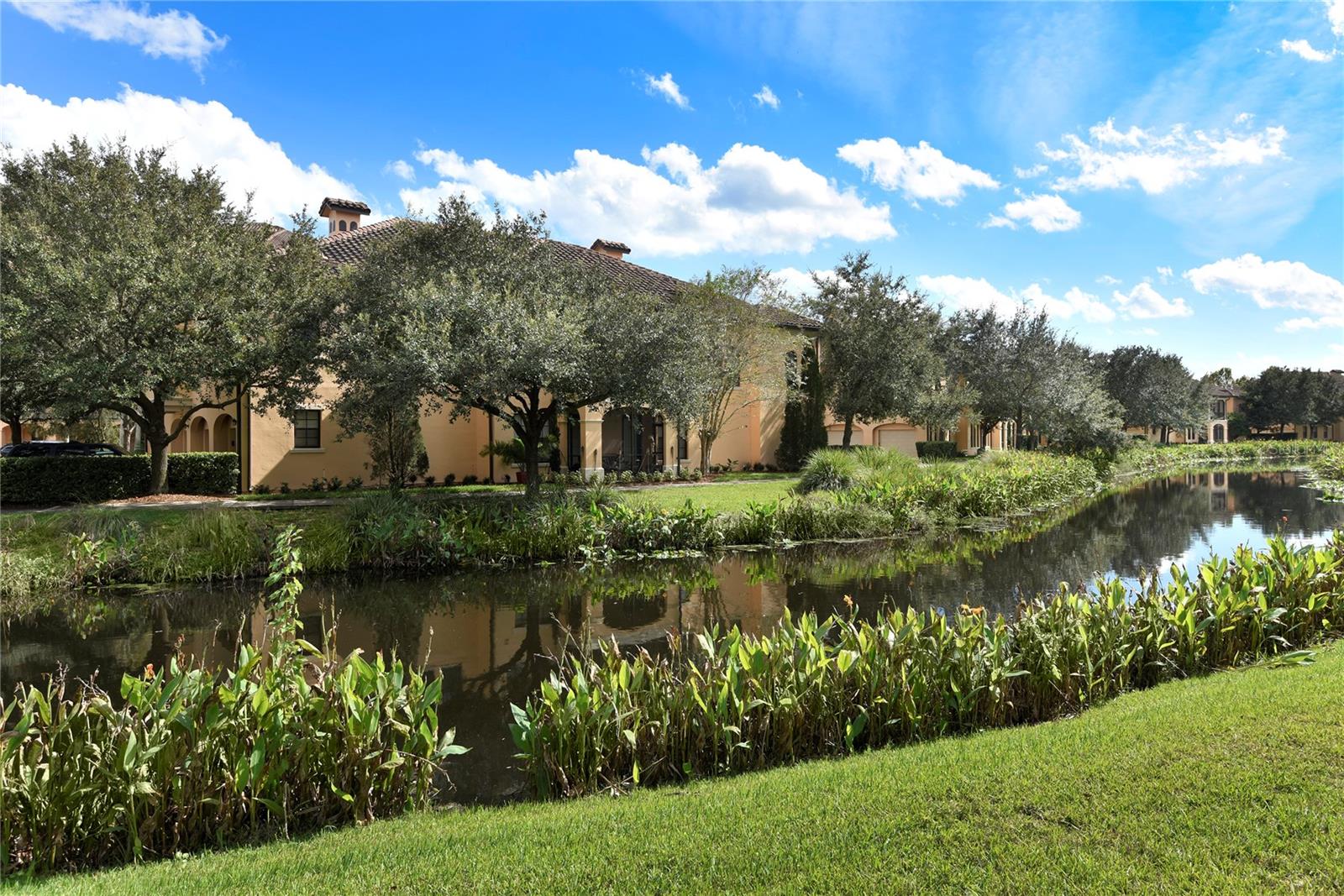 Welcome to this rare townhome-style condominium with an attached one-car oversized garage with direct interior access. Located in the award-winning Mirasol community at Celebration, this home offers a prime location with serene canal views, just steps from the luxury resort-style pool. Situated on the top floor, this spacious two-bedroom layout features a private foyer with interior stairs leading to the living area. Key Features: • Luxury engineered wood plank flooring in the primary suite and living/dining areas • High ceilings and open living spaces • Fully equipped kitchen with an eat-in breakfast area Inviting Outdoor Space: • Two screened patios – one in the front and one in the rear – offering privacy and tranquil views • No neighbors above for added peace and quiet Convenient Laundry: • Spacious laundry room with full-size washer and dryer Abundant Storage: • Walk-in closet in the primary suite, pantry and linen closets, utility/laundry room, coat closet, plus extra storage in the attached garage Community Amenities: - Resort-Style Living: Enjoy access to a 24-hour fitness center, concierge service, onsite day spa, a heated pool and spa, a resident clubroom with billiards, a business center with a private conference room, and a cyber café. Prime Location: Situated in Celebration Village with direct access to 26 miles of trails, and a short distance to the town center offering fine dining, eclectic shops, entertainment, and tennis courts. Minutes from Walt Disney World, Sea World, and Universal Studios. Only 20 minutes from the airport. This luxury residence offers a lifestyle of comfort and convenience. Don't miss this opportunity to own a piece of paradise in Mirasol at Celebration!