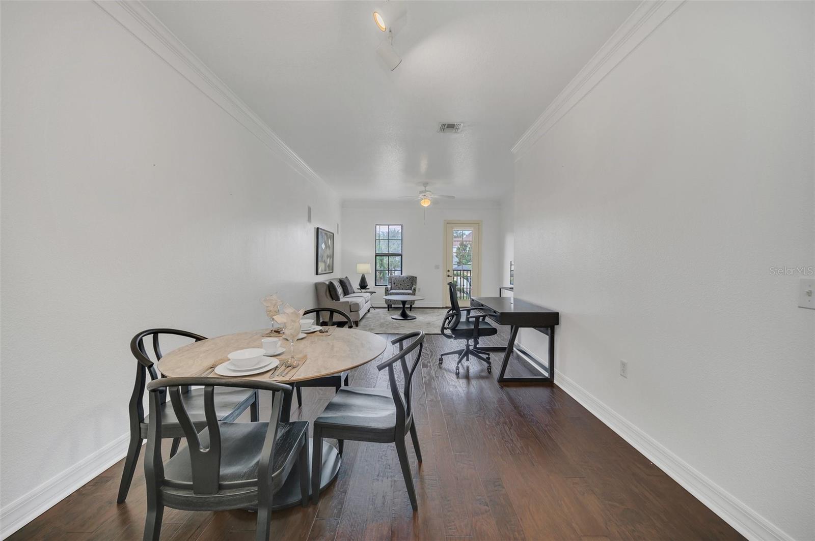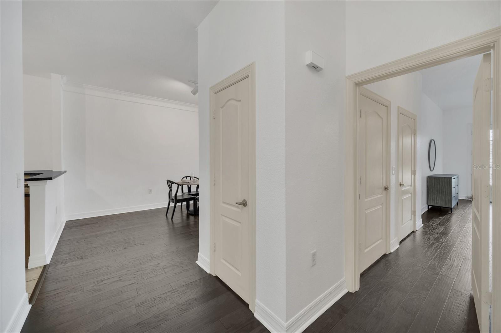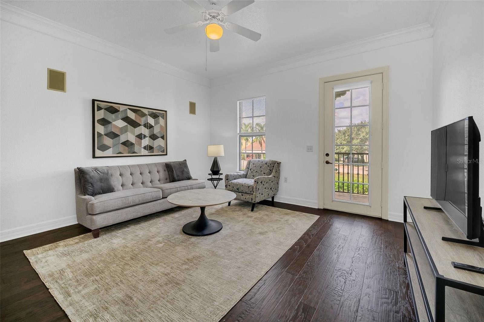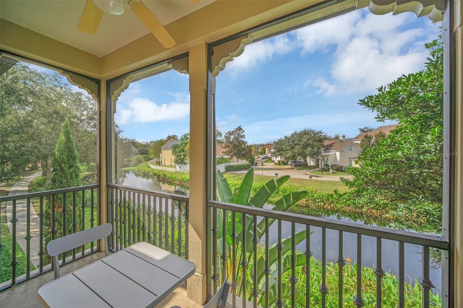 Welcome to this rare townhome-style condominium with an attached one-car oversized garage with direct interior access. Located in the award-winning Mirasol community at Celebration, this home offers a prime location with serene canal views, just steps from the luxury resort-style pool. Situated on the top floor, this spacious two-bedroom layout features a private foyer with interior stairs leading to the living area. Key Features: • Luxury engineered wood plank flooring in the primary suite and living/dining areas • High ceilings and open living spaces • Fully equipped kitchen with an eat-in breakfast area Inviting Outdoor Space: • Two screened patios – one in the front and one in the rear – offering privacy and tranquil views • No neighbors above for added peace and quiet Convenient Laundry: • Spacious laundry room with full-size washer and dryer Abundant Storage: • Walk-in closet in the primary suite, pantry and linen closets, utility/laundry room, coat closet, plus extra storage in the attached garage Community Amenities: - Resort-Style Living: Enjoy access to a 24-hour fitness center, concierge service, onsite day spa, a heated pool and spa, a resident clubroom with billiards, a business center with a private conference room, and a cyber café. Prime Location: Situated in Celebration Village with direct access to 26 miles of trails, and a short distance to the town center offering fine dining, eclectic shops, entertainment, and tennis courts. Minutes from Walt Disney World, Sea World, and Universal Studios. Only 20 minutes from the airport. This luxury residence offers a lifestyle of comfort and convenience. Don't miss this opportunity to own a piece of paradise in Mirasol at Celebration!