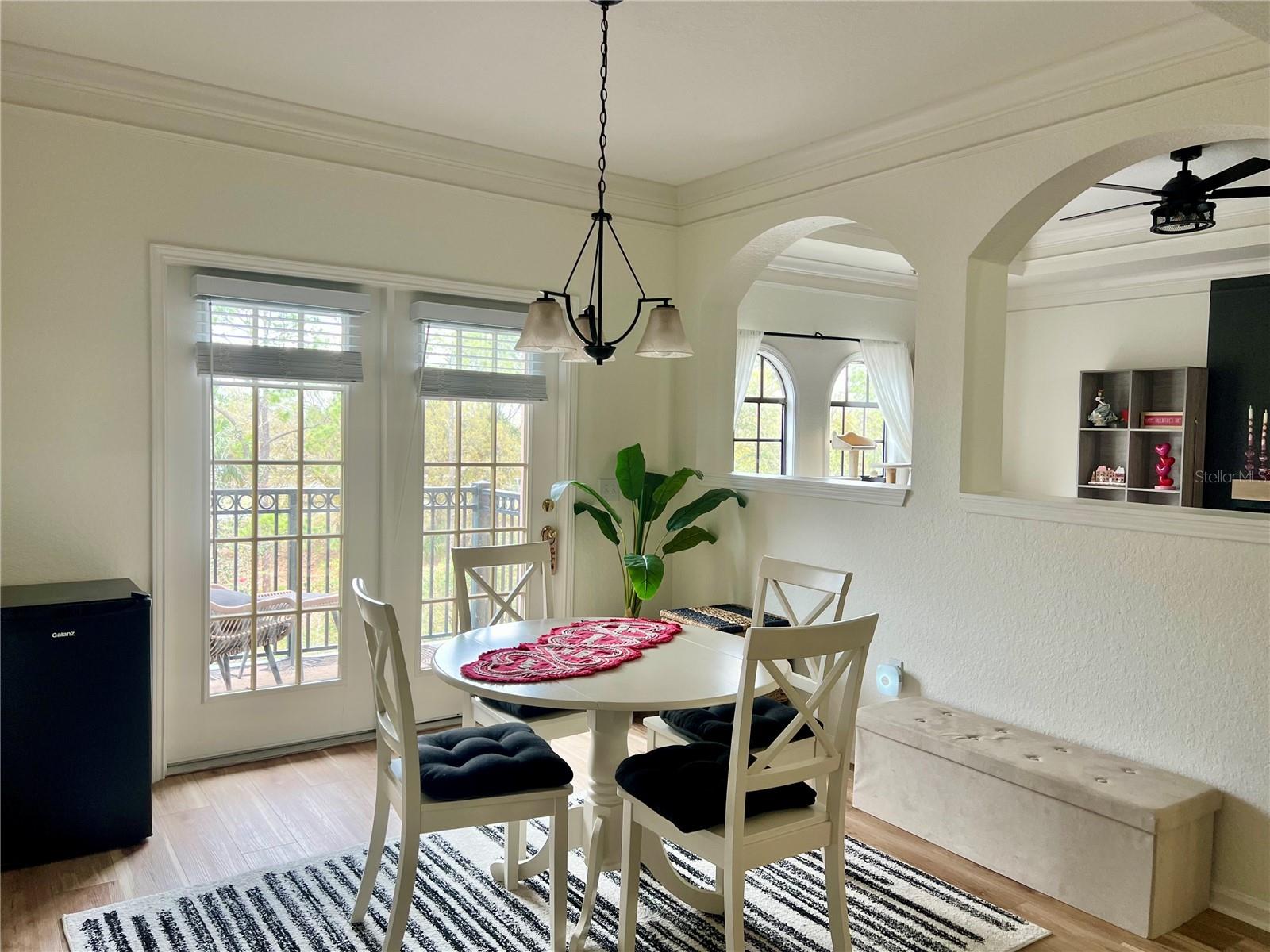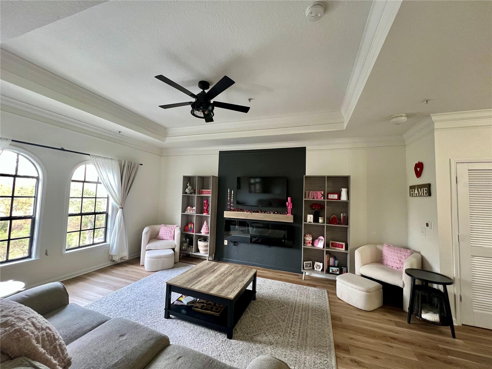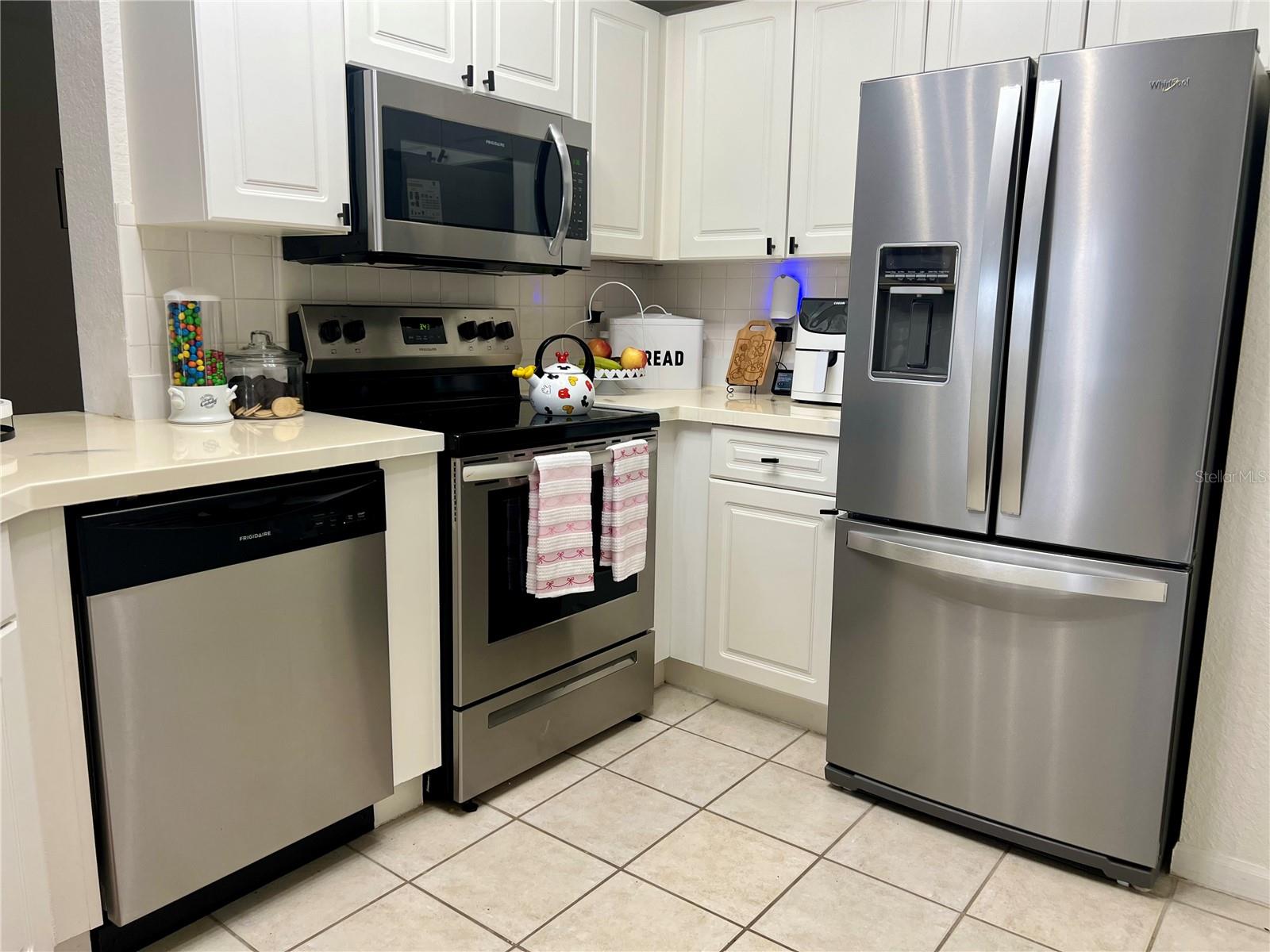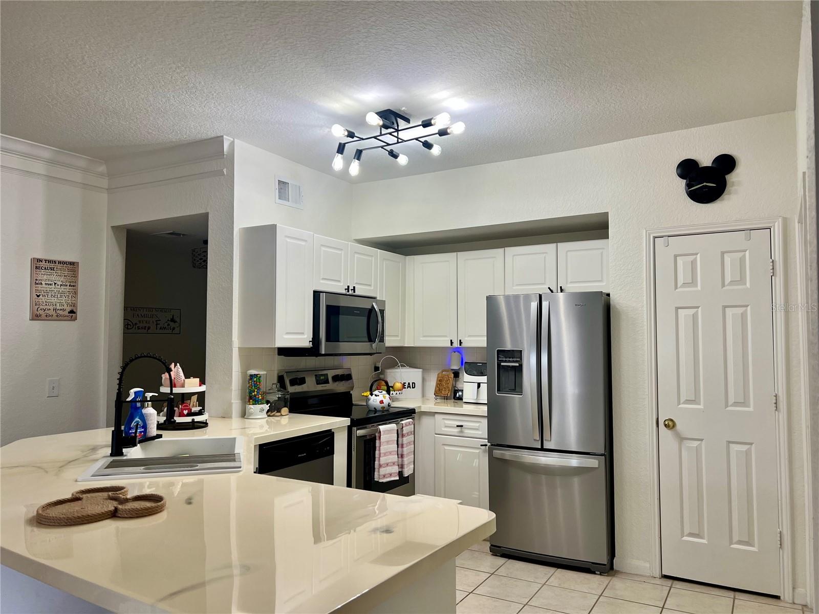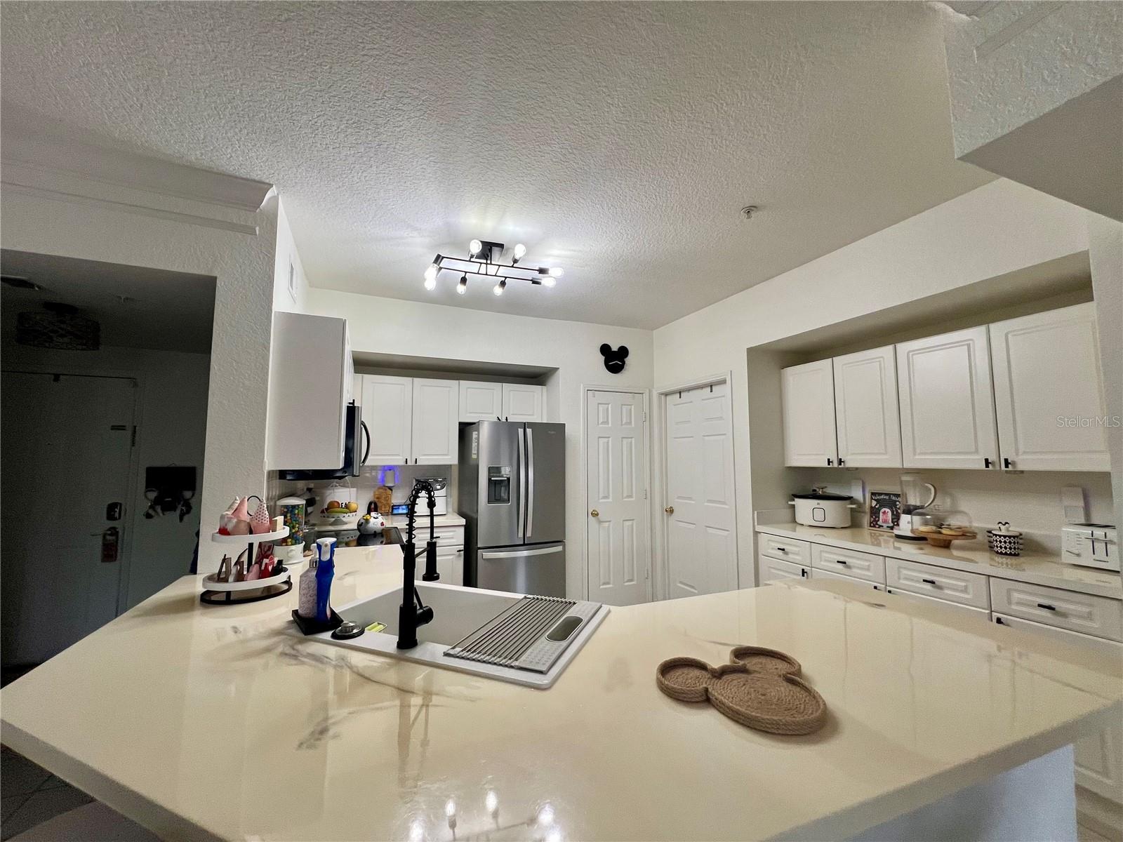 This charming updated condo located on the third floor of an elevator building is the perfect place to make your Florida dream life come true! New luxury vinyl tile has been laid throughout the home with the exception of the kitchen and bathrooms which have ceramic tile. A new AC unit was just installed to keep you cool in this tropical paradise. The interior of this condo was freshly painted within the last two years and new lighting fixtures were added throughout. As you enter this unit, you’ll find an oversized foyer that provides room for you to hang your bags and take off your shoes after you return from a jog through the miles of trails connecting each village or need to unwind from your workday. The recently updated kitchen features new stainless steel appliances, epoxy countertops, and professionally refinished wood cabinets. The redesigned counter height bar makes it the perfect spot to prep food or sit for a quick meal. The kitchen flows directly into the spacious family room. On a chilly winter day this is a cozy spot to curl up to read a book in front of the new fireplace. The architecturally pleasing arched windows in this room cast beautiful light which brightens the entire living area throughout the day. On the back wall of this room there are two arched pass throughs into the dining area that mirror the same shape as the exterior windows. The arched pass throughs open the formal dining area into the main living space.These three rooms are adequately sized and open to each other offering a comfortable entertainment area for you to host friends and family. As if that wasn’t enough, the dining area has French doors that open up onto a scenic balcony. Imagine sipping your morning coffee out here as you listen to the the morning birds sing. From the main living area you’ll find a hallway with an office nook. It is the perfect spot to work from home with ample space for a desk and some shelving. The primary bedroom features a large walk-in closet and its own private bathroom. The second bedroom is also spacious with a door that enters directly into the bathroom as well as one that opens to the hallway for guests. Each bathroom features updates which includes 2 new toilets while the bedrooms feature new Hunter Douglas, custom pleated shades.Georgetown in North Village is a highly sought after condo complex since it offers its own clubhouse with workout room and private pool. No need to leave the comfort of this home to do laundry. The new full sized washer and dryer are right inside this unit. Whether you are looking for a place to escape from harsh northern winters or need a year round residence, this condo in the fairy tale town of Celebration is the place to start! It is conveniently located close to major highways, golf, restaurants and Central Florida’s theme parks. Book an appointment and come see for yourself!
