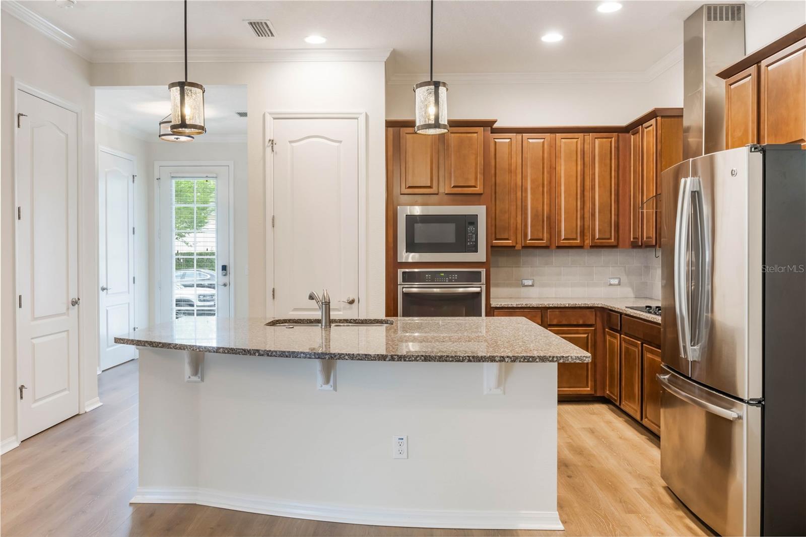 Embrace your Dream! Imagine stepping into your new home, where every corner tells a story and every room is filled with potential. This charming 3-bedroom, 2.5-bathroom residence, with an inviting 1,875 square foot layout, is ready to welcome your family. As you enter, the warm glow of brand new luxury laminate flooring guides you through the spacious living areas, freshly painted in soothing tones that create an atmosphere of comfort and tranquility. Picture family gatherings in the gourmet kitchen, where laughter and delicious meals come together effortlessly. The kitchen overlooks the dining and living areas, ensuring that the chef can always be part of the fun, whether it’s a weekend brunch or a cozy dinner. The primary bedroom is your private retreat, featuring a custom closet that makes organizing a breeze—perfect for busy mornings or quiet evenings. With two additional bedrooms, there’s plenty of space for everyone to have their own sanctuary, and the den offers a flexible space for a home office, playroom, or cozy reading nook. Imagine the convenience of a garage equipped with a built-in workstation, a refrigerator for those extra snacks, and two storage racks to keep everything tidy. It’s a space that blends functionality with the joy of creativity. But it’s not just the home that captivates—it’s the vibrant community of Celebration that truly enchants. Just a short stroll away, you’ll find the community pool and fitness center, inviting you to enjoy sunny afternoons and active weekends with neighbors and friends. Visit the local Farmer's Market on Sundays, or take part in the many town activities that bring family and friends together. This is more than just a house; it’s a place where your family can grow, laugh, and create lasting memories. Your new adventure begins here. Welcome home! ***VA Assumable Loan at 3.250% to eligible Veterans***