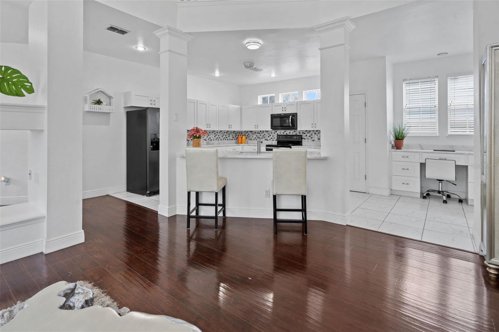 The desirable “Arabella” Floor Plan – 4 Bedrooms | 3 Baths | Double Porches with Park Views Welcome to this inviting Arabella home, designed for both comfort and flexibility. Double front porches open to serene parkland views, creating the perfect backdrop for morning coffee or evening relaxation. As you step inside, a flex room greets you to the right—easily adaptable into a fourth bedroom if desired—while a versatile office sits to the left. Nearby, an updated full bath adds convenience and functionality. The heart of the home is a spacious living room with soaring volume ceilings and expansive windows that fill the space with natural light. The kitchen blends functionality and style with crisp white cabinetry, a long raised breakfast bar, closet pantry, double sink, and even a built-in desk area. Adjacent, you’ll find an eat-in breakfast nook or sunroom, perfect for casual meals or lounging with a book. Upstairs, the generous owner’s retreat features a walk-in closet, full shower bath, and direct access to a private balcony. Two additional bedrooms, a hall bath, and a versatile loft-style sitting area complete the second floor. The home also offers a large attached 2-car garage with extra storage and a parking pad. Outside, the backyard provides space to design your own outdoor haven—think grilling station, dining table, or spa retreat. Set within the sought-after North Village, you’ll enjoy access to community amenities including a pool, playground, sand volleyball courts, and scenic walking and biking trails. This home is more than a floor plan—it’s a lifestyle.