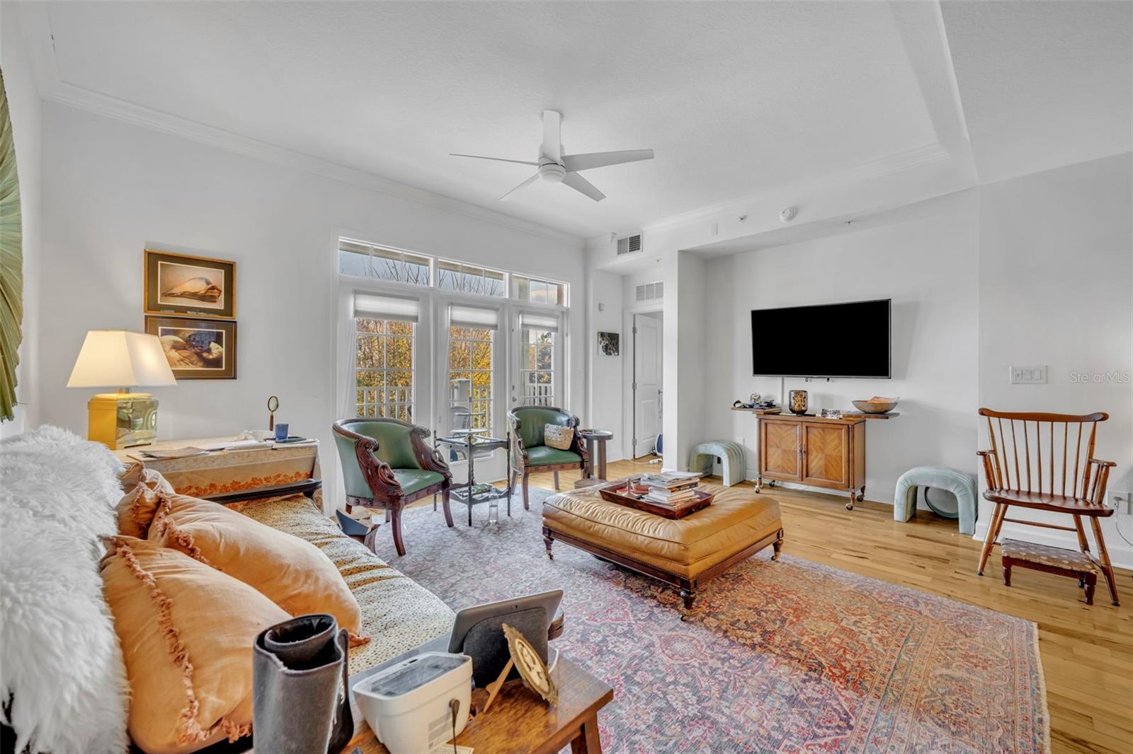 The Artisan Club in Celebration isn’t just a condominium, it’s a lifestyle! This beautiful neighborhood gives you access to the stunning community pool, hot tub, sauna, fitness center, walking trails, clubhouse with billiards and children’s corner, restaurant, bar and more! The exterior and grounds maintenance are covered in the quarterly dues, so you don’t have to worry about upkeep. You can access this condo on the 2nd floor via the elevator or stairs. The charming entryway opens to an office space/den at the front of the condo which opens to the kitchen. You’ll find 48” cabinetry with crown molding, solid countertops and a built-in desk in the kitchen. The passthrough to the dining space is large which gives the feel of an open floor plan. You can’t miss the real wood flooring, crown molding and fresh paint that make this condo feel like home. The owner’s suite has a tray ceiling, walk-in closet, ceiling fan and beautiful bathroom with dual sinks, step-in shower and large tub. The laundry room is spacious with great storage, plus the washer and dryer convey! The patio is large enough for a table and chairs so you can entertain outdoors. Additional upgrades and perks include a 1-car detached garage and an exterior storage unit. This neighborhood is just minutes away from downtown Celebration where you can enjoy great entertainment and restaurants. You’ll also be minutes from shopping and the Disney theme parks! Don’t miss your chance to make this lifestyle yours!