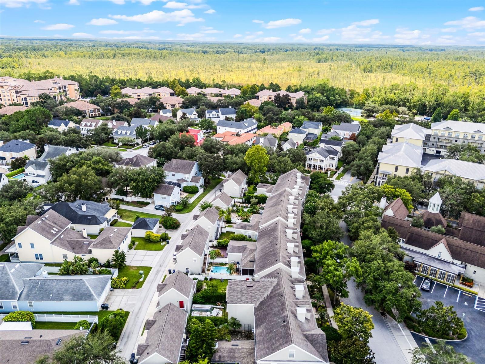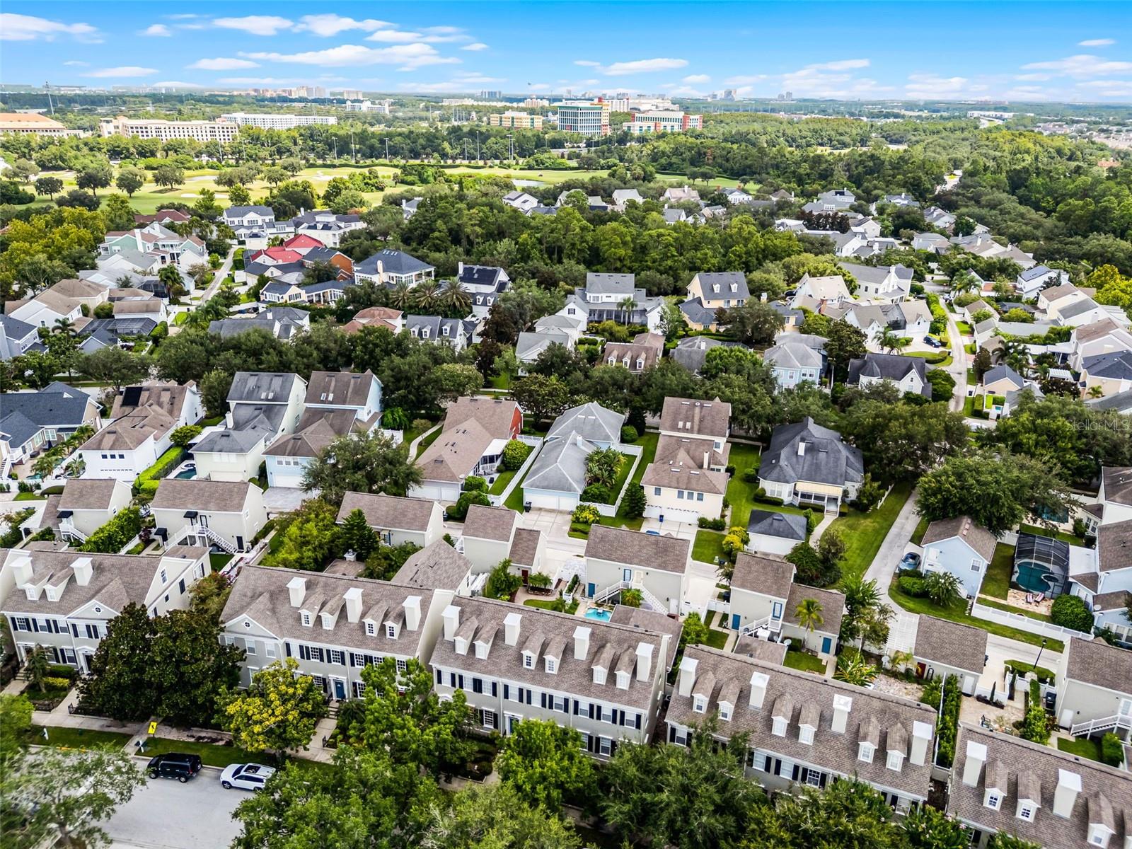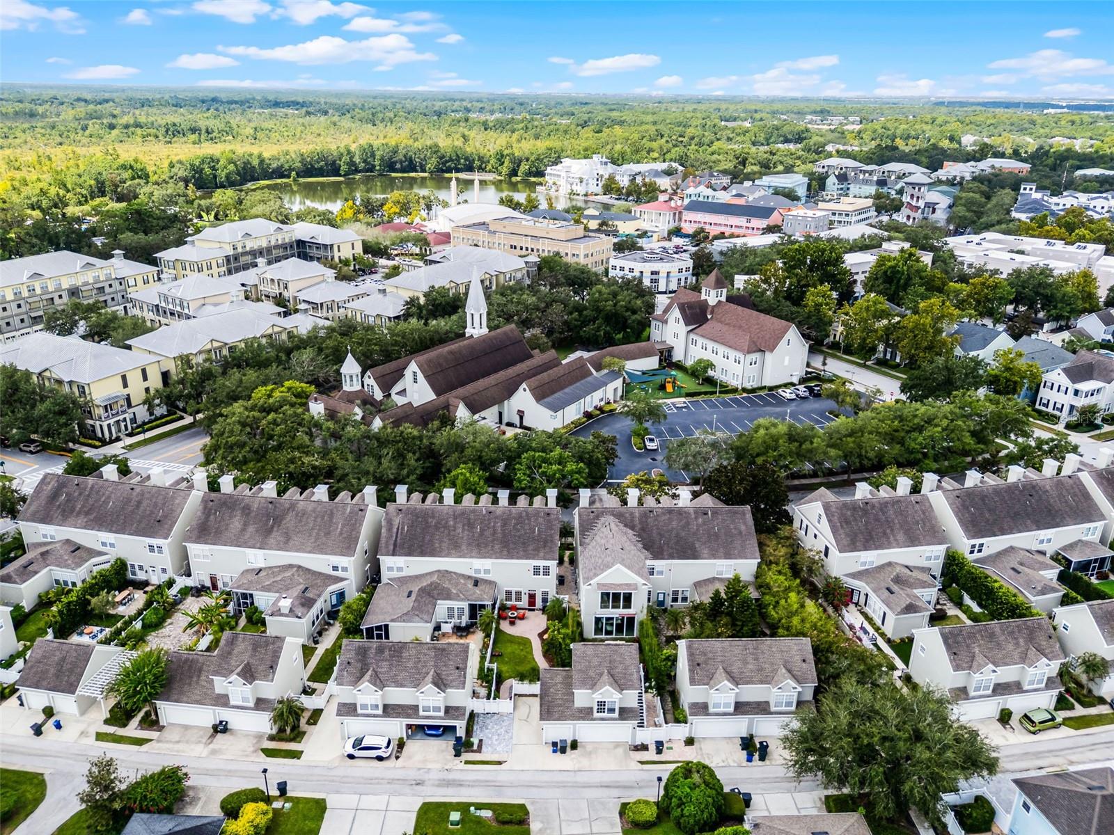 Welcome to a residence that embodies elegance, craftsmanship, and the timeless charm of Celebration, Florida. Tucked away in the heart of Celebration’s sought-after downtown Main Village, this exquisite four-bedroom, three-story townhome is a rare gem that combines sophisticated design with an unparalleled location. From the moment you step inside, you’re welcomed by a grand open foyer adorned with rich California hickory hardwood flooring and detailed 5¼" baseboards that gracefully flow throughout the main living spaces. The expansive dining and family room invite refined entertaining and everyday comfort alike. The thoughtfully designed kitchen is a true culinary showcase, featuring custom 42" white espresso cabinetry with crown molding and glass inserts, sleek granite countertops, and a striking glass mosaic tile backsplash. High-end stainless steel appliances include a VIKING microwave, GE Monogram dishwasher, a side-by-side refrigerator, and a glass-top range. A charming breakfast nook offers the perfect perch to enjoy morning coffee while overlooking the beautifully manicured yard. Upstairs, the luxurious primary suite serves as a serene escape, boasting a spa-inspired en suite bathroom complete with a soaking tub, glass-enclosed shower, dual vanity, mosaic tile accents, and oversized tile flooring. Two additional guest bedrooms and a full bath complete the second floor. Ascend to the third level to discover an expansive fourth bedroom with a large walk-in closet—ideal as a guest suite, home office, media room, or private retreat. Living in Celebration means more than just owning a home—it means embracing a lifestyle. Residents enjoy access to community pools, picturesque parks, playgrounds, and over 26 miles of scenic trails for walking and biking. With world-class dining, charming boutiques, and vibrant year-round events just steps away, this home offers the perfect blend of sophistication and convenience. Don’t miss the opportunity to own a true piece of Celebration’s architectural and cultural heart.