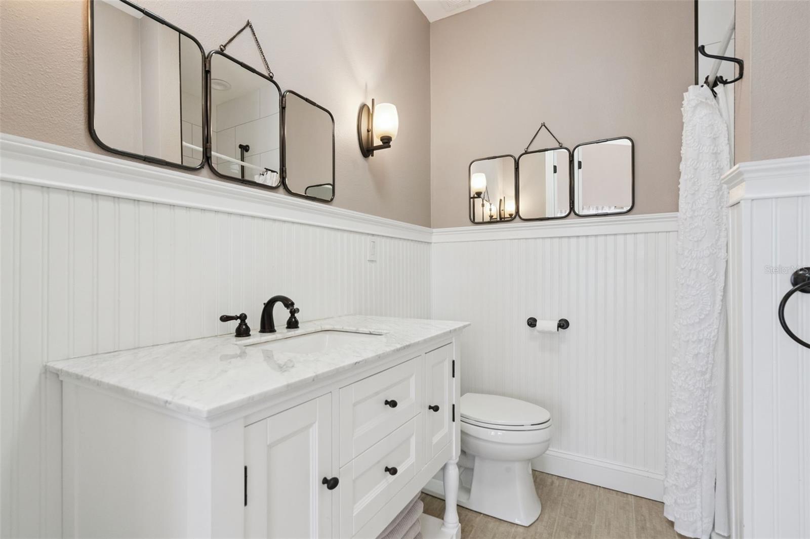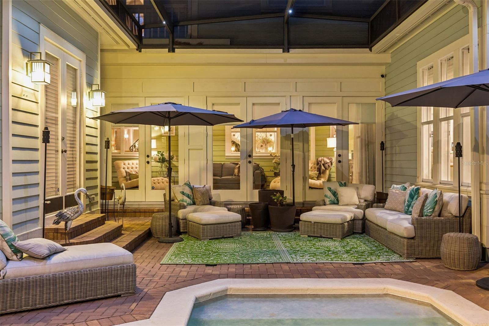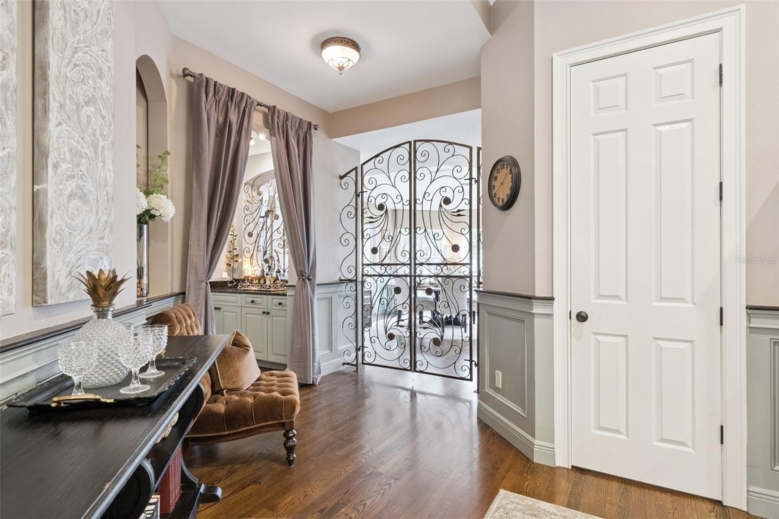 Welcome to life in Celebration, where morning light filters through cathedral oaks, neighbors wave from wide front porches, and golf carts hum softly toward coffee on Market Street. Conceived by The Walt Disney Company as a return to gracious architecture and walkable charm, Celebration is not simply a town. It is a rhythm of lakeside trails, a rolling golf course, and a downtown that glows at dusk. On a premier waterfront corner homesite framed by mature trees and water views sits a Victorian jewel originally crafted by Goehring & Morgan. Today, it has been completely reimagined. The current owners did not simply renovate. They elevated every surface and system for modern living. Step through the double entry doors into a grand foyer where a sweeping curved staircase rises beneath cathedral windows and a timeless chandelier. Rich hardwood floors, wainscoting, crown molding, and intricate iron detailing create cohesion throughout the main living spaces. The kitchen is the true gathering stage. Custom cabinetry, expansive granite counters, and an entertainer’s island anchor the space. Viking and Bosch appliances, built in refrigerators, double ovens, a five-burner gas cooktop, and a beverage cooler support everything from quiet mornings to large scale celebrations. The kitchen flows seamlessly into the family room and formal dining area, with a thoughtfully designed drop zone that doubles as a discreet hosting station. The primary suite is privately positioned on the first floor and features a fully renovated bath with a reimagined shower, new tub, updated vanities, and refined finishes. Also on the main level is an additional bedroom, currently styled as a library, offering flexibility for guests or office space. A first floor Florida room provides bright, relaxed living space to embrace seasonal breezes. Upstairs, additional en suite bedrooms provide comfort and privacy for family and visitors. Outdoor living unfolds across multiple inviting spaces including porches, sun decks, patios, and the showpiece courtyard pool. The pool has been resurfaced and enhanced with new pavers, improved drainage, a new heater, and fountain pump. Evening ambiance is elevated with a Nebula lighting system within the screened enclosure. An oversized rear parking pad offers generous additional space for vehicles and guests. Behind the scenes, the home has been comprehensively upgraded. A new 40 year Carriage House Victorian shingle roof crowns the property. Composite exterior materials add durability. Four TRANE HVAC systems installed or replaced between 2020 and 2024 pair with Nest thermostats. The irrigation system is controlled by Rachio. French drains, gutter guards, upgraded insulation with pest barrier, electrical enhancements, ADT security with cameras, and MyQ garage access complete the modernization. The detached apartment has also been refreshed with new hardwood flooring, updated appliances, fresh paint, and Nest Protect detectors, making it ideal for guests, extended family, or income potential. This is more than a Victorian home in Celebration. It is a waterfront estate where timeless architecture meets thoughtful innovation in one of Florida’s most beloved communities.