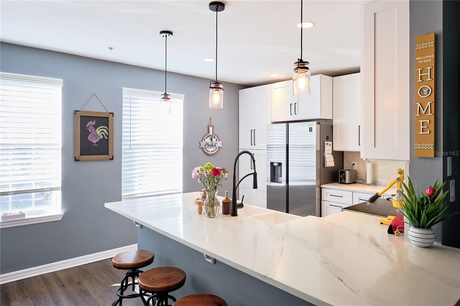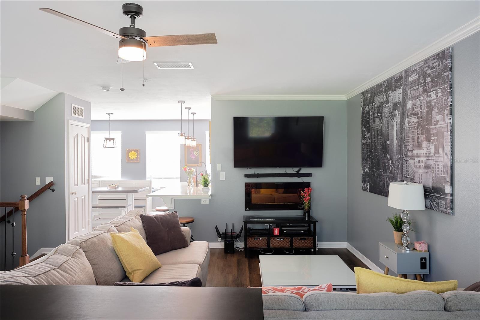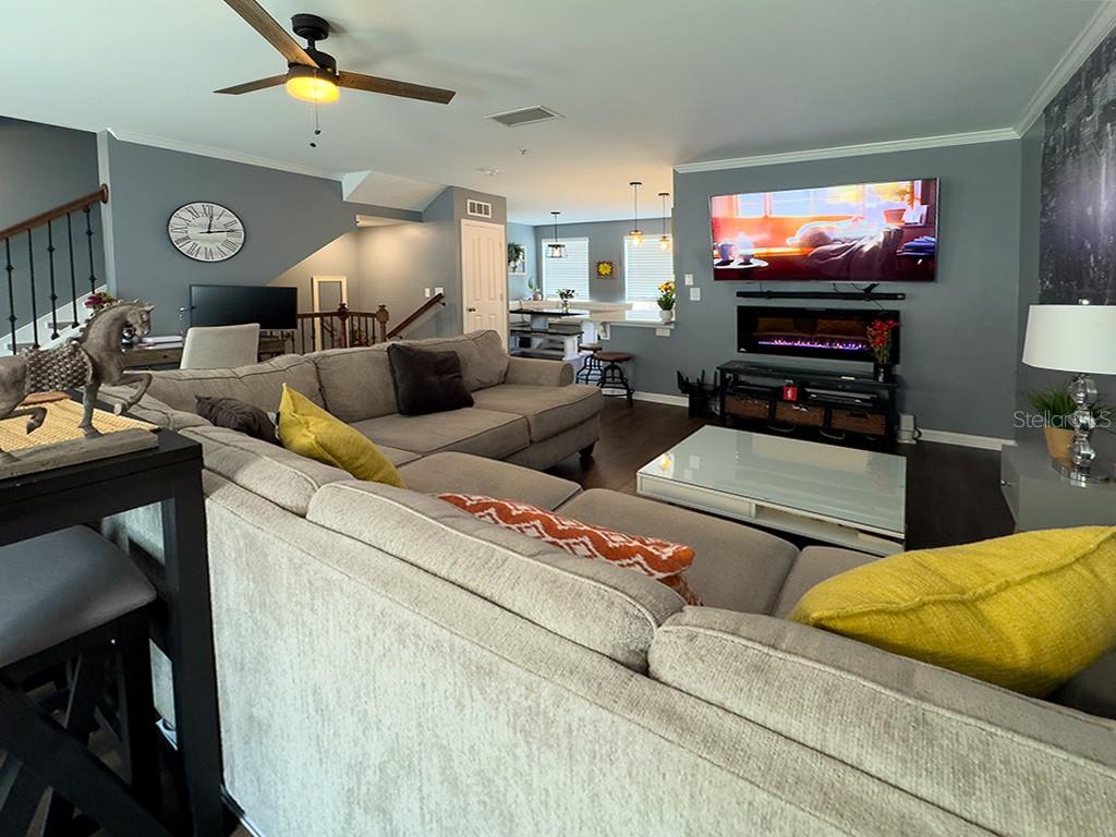 INCENTIVE: Seller will credit ONE FULL YEAR of Condo and HOA Fees to the buyer at closing! Step into luxury living with this fully renovated 3-bedroom, 2-bathroom townhouse style condo. Located in the heart of Celebration, a town designed by the Walt Disney Company, this home allows residents to indulge in a life of excitement and relaxation. Featuring all new appliances, furniture, updated bathrooms, and a remodeled kitchen, this townhouse style condo (renovated in 2022) is move-in ready and ideal for any prospective homeowner. Unique to this home are the beautiful conservation views and the oversized 2-car garage. Right as you enter, you are greeted by an open floor plan, freshly painted walls and LVP flooring. The first floor is perfect for an office or can be used as a cozy entertainment space. The garage doubles as a laundry room with washer and dryer hook-up, cabinets, and mounted ceiling storage units to keep all your belongings tidy and out of your way. The floor is coated in high-end epoxy seal. On the second floor, your eyes are drawn to the kitchen and living room space. The kitchen features one-of-a-kind quartz countertops imported from Spain, 42” white shaker cabinets, brand new Samsung appliances, a lazy susan, spice drawer, and a floor to ceiling pantry that make storage and cooking a breeze. The large living room is optimal for relaxing and entertainment, as it is updated with a special TV mount and wiring for TV/internet connections and a charming electric fireplace. The spacious primary bedroom, ensuite primary bathroom, two bedrooms, and the guest bathroom are all found on the third floor. All bedrooms boast generous closet space, big windows that let in tons of natural light, and ample space for furniture and décor that permit a comfortable living experience. The biggest draw of this home is its location - Celebration residents are minutes away from the stores and restaurants of downtown Celebration, Water Tower Shoppes, Celebration Pointe, and all Disney Parks and Resorts. Shopping, eating, and playing are integral to the Celebration lifestyle. Celebration offers innumerable amenities to community residents, like pools, fitness centers, playgrounds, miles of biking/walking trails, exclusive town events and functions, golf courses, parks, courts for volleyball, tennis, and basketball, and more. Easily accessible to I-4, 417, and 192 and conveniently located near Orlando, every attraction is at your fingertips. Whether you’re looking for a primary residence or a second home retreat, 726 Centervale Dr. is the perfect home for you!