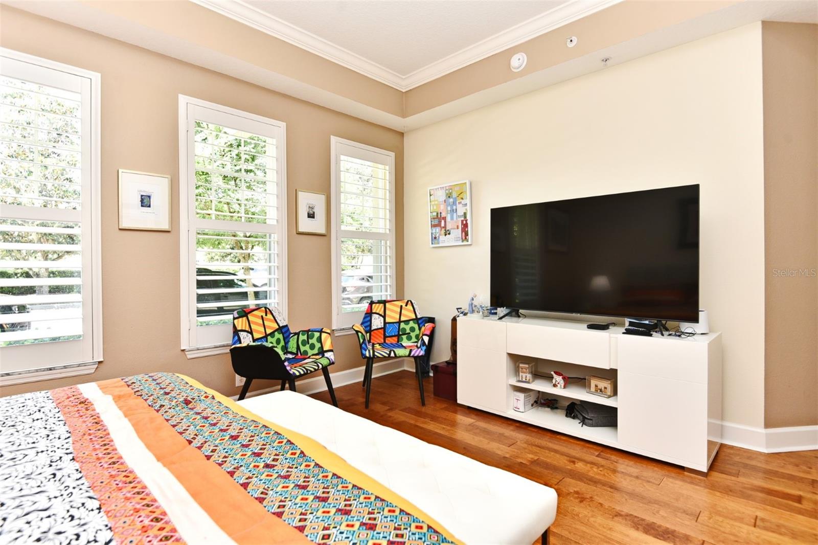 Welcome to your dream condo in Celebration’s Artisan Park. This rare and highly sought-after "Redmond" model is a stunning first-floor corner end unit with four (4) generous bedrooms and two (2) spacious bathrooms, this bright and airy condo features oversized Plantation Shutters, Luxury Vinyl Plank Flooring and Modern light fixtures throughout. Step inside to discover an inviting open floor plan that seamlessly combines the living, dining, and kitchen areas, perfect for entertaining. The living space features elegant Crown Molding, enhancing the ambiance. The Kitchen features newer Stainless-Steel appliances, 42" cabinets, and beautiful Granite Countertops, including a convenient Breakfast Bar for casual dining. Retreat to the primary bedroom, where you will find an extra-large custom walk-in closet. The En-suite primary bathroom offers a relaxing soaking tub, a separate shower, and ORNAMENTAL WHITE granite countertops, providing a spa-like experience at home. Additional highlights include a dedicated laundry room with ample storage cabinetry, ensuring that you can be highly organized. French doors from the living area leads to a charming, covered patio, perfect for enjoying morning coffee or evening relaxation while overlooking the picturesque park. The attached garage offers the ultimate convenience, opening directly into the condo, making unloading groceries or luggage a breeze. As a resident of Artisan Park, you will have access to the exclusive Clubhouse Amenities, including a Resort-style Pool & Spa, Bar/Restaurant, Fitness Center, Banquet Room, Outdoor Kitchen, and social planned activities for residents.