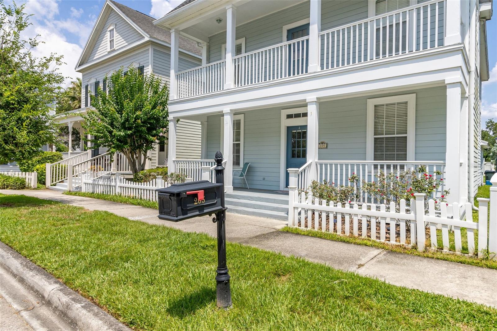 Welcome to 205 Norfolk Place, a beautifully remodeled residence located in the heart of Celebration's North Village. This modern and elegant home offers 4 bedrooms PLUS Study, 3 FULL bathrooms, and a generous 2077 square feet of living space, all situated with VIEWS of an Oversized Park ideal for enjoying time with friends and family. Upon arrival, the FULL DOUBLE PORCH provides a charming vantage point to enjoy private park views, creating the perfect setting for relaxing evenings with neighbors. Inside, the home features warm wood-inspired laminate flooring throughout the formal areas and lower bedroom, exuding a sense of spaciousness and coziness. The living room, adorned with vaulted ceilings and oversized windows, provides ample natural lighting throughout the home. The layout seamlessly flows into a chef-inspired dream kitchen, complete with white Shaker style cabinets with brush chrome pulls, deep/large single sink, mosaic-style matching backsplash, and white/grey colored quartz countertops. Stainless steel/black appliances, including a side by side refrigerator, built-in microwave, and range, further enhance the kitchen's allure. On the LOWER LEVEL, you'll find the 1st GUEST BEDROM parallel to the formal study with glass French doors offering lots of natural light. This Guest bedrooms is directly located across from the FIRST FULL BATHROOM is located DOWNSTAIRS, offering a full Walk-in shower with matching tiles and mosaics. Upstairs, the primary bedroom exudes luxury with its fully remodeled bathroom, featuring a frameless enclosure walk-in shower, single vanity topped with quartz, and a large walk-in closet. The primary bedroom also offers a second balcony with tranquil views of the park in front of the home. The secondary bedrooms and bathroom on the second floor offer a stylish and functional space for family or guests. This pet-friendly home is just blocks away from the North Village Sports area and Pool. Additional features include a new roof installed in 2018, and 2 car garage making this home a true gem in an idyllic location. Don't miss the opportunity to make this exceptional property your new home. Welcome home to 205 Norfolk Place!