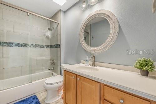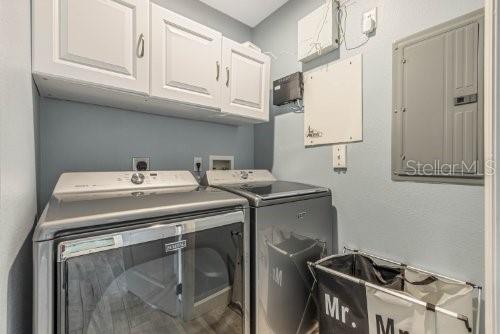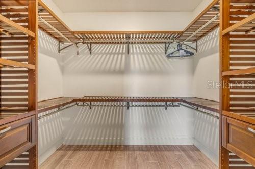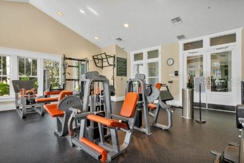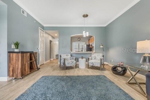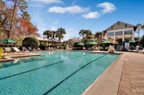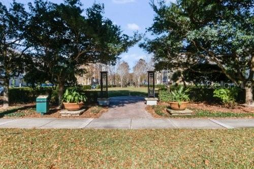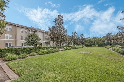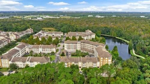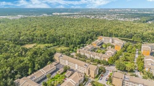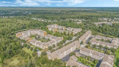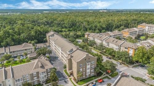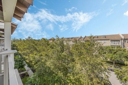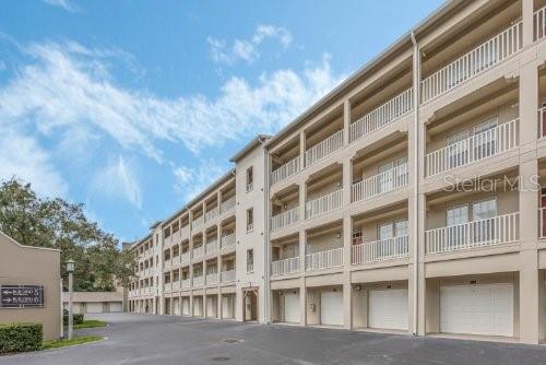 Welcome Home to Penthouse Living! This beautiful two bedroom/two bath condominium is located on the top floor with breathtaking views of the gorgeous Artisan Park Village in the exciting town Disney developed — Celebration, Florida! Take the elevator to the highest level and feel a sense of pride as soon as you enter your new condo. It has been beautifully updated with lovely, non-slip driftwood porcelain tile floors and crown molding throughout, classy lighting/ceiling fans, upgraded bathrooms, high-level wood shutters throughout, and top-of-the-line appliances (including large capacity Maytag washer and dryer). The kitchen features 42" raised panel maple cabinets, a built-in desk which provides a convenient place for your paperwork, newer dark grey stainless steel appliances, a farmhouse sink with a pullout spray faucet, and a light and bright breakfast nook/eat-in area. The split bedrooms afford privacy with the luxurious primary suite featuring a trey ceiling, a spacious walk-in closet with custom built-ins, and a classy bathroom that's complete with dual sinks and a large, walk-in shower boasting an extra-large Rain showerhead. French doors in the combination living/dining room lead to the amazing balcony... the perfect place to start and end your day! You'll love the extra storage cabinets in the laundry room and the outside storage cage that is a short walk from the condo. The air conditioner and water heater are only seven years old and this condo comes with a one-car garage. The furniture can also be purchased. The clubhouse in Artisan Park is awesome with a restaurant, bar, billiard room, fitness center, outdoor kitchen, banquet room, and a fabulous resort-style heated pool and spa. The Artisan Park condos are adjacent to one of the wonderful walking trails of Celebration and is a short drive (or walk) to the downtown area which offers restaurants, shops, and a charming hotel. What a wonderful place to call home!