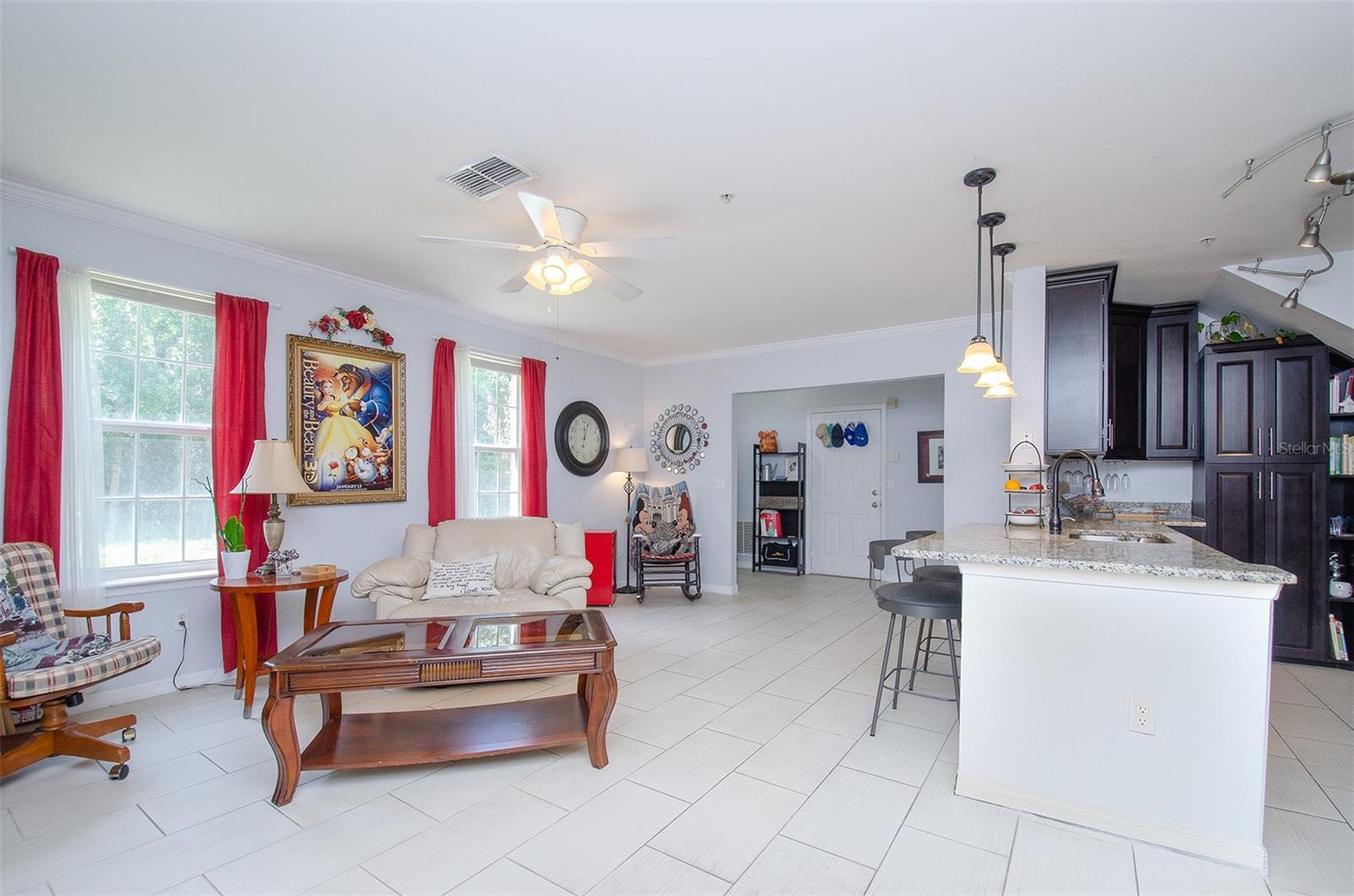 Welcome to this spacious townhome in the heart of Celebration, offering the feel of a single-family home with only one common wall of about 14 feet. This charming 4-bedroom, 2-bathroom townhouse is centrally located within Celebration, providing easy access to I-4 and Highway 192. Set in a cottage-like setting with a greenbelt just across the street, this home offers a serene environment while being close to all the amenities. The first floor features a flex room that can be used as an office or an extra bedroom, complete with a Murphy bed. The kitchen has been recently updated with new refrigerator, and the owner already has plans drawn up to add an additional bathroom on the first floor. 2017 first floor new tile, baseboards, and all new lighting was added. As you make your way upstairs, you'll notice a charming bump-out with a window that allows for additional natural lighting, adding to the home's bright and airy feel. The second floor houses the laundry room for added convenience, along with the bedrooms. The master bathroom exudes cottage vibes with a charming window that provides lovely views of the natural setting outside. This townhome also includes an attached two-car garage, offering plenty of storage and parking space. 2018 new Wifi garage door was installed. Siena at Celebration is known for its large, mature oak trees that provide ample shade, creating a peaceful atmosphere. Residents can enjoy the beautiful, quiet pool, clubhouse, and fitness center. With Siena’s central location within the town, you're just a short drive from the downtown shops, restaurants, Celebration K-8 school, and the high school. Orlando International Airport is only 20 minutes away, and all of Orlando's theme parks are just around the corner. New AC 2014, 2019 Blue Light Push & Pull AC cleaning system added, 2022 new water tank added. Don’t miss out on this wonderful opportunity. Schedule a viewing of your dream home today. All information is intended to be accurate it is the buyer and buyers agents responsibility to verify all details.