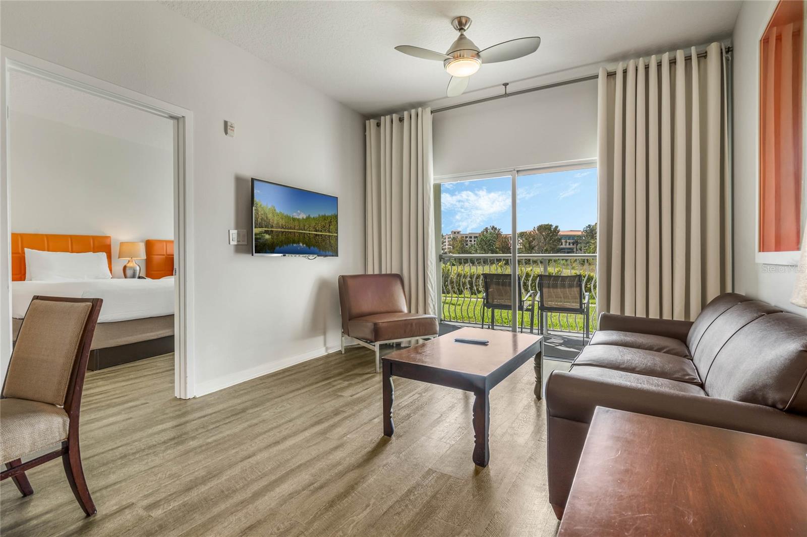 Welcome to Your Home Away from Home! This perfect retreat is a lovely fully furnished 2 Bedroom 2 Bath Split Plan Corner Unit found in the heart of Celebration and it is PET FRIENDLY! As a condominium hotel, it provides great accommodations, amenities and services for owners and guests. This fully furnished unit (including towels, kitchen supplies, etc.) has upgraded kitchen and bathrooms, living room with a hide-away couch for additional sleeping, 2 covered balconies, housekeeping and room-service is also available! The Melia offers an impressive array of amenities, including a community resort pool with a 360-degree vanishing edge, a poolside restaurant and bar, a gift shop, executive conference rooms, unlimited Wi-Fi Access, Theme Park Transportation, Discounts at Celebration Health Gym & Spa and Celebration Golf Course. Additional features include a dog walking park, a beach volleyball court, mini soccer/football pitch, a picnic area and so much more! The hotel is renowned for its excellent customer service and maintenance standards. The Melia is conveniently located – across the road from AdventHealth Celebration Hospital, minutes from all theme parks, shopping, restaurants and about 20 minutes to Orlando International Airport! All information given is intended to be accurate, but it is the buyer or the buyer’s agent’s responsibility to verify all details within the resort. You can also own it as an investment property that can be managed by The Melia - the hotel manages the property effectively during non-use periods, providing a hassle-free investment. Schedule your viewing today! Come & discover YOUR new getaway to a life of comfort & luxury.