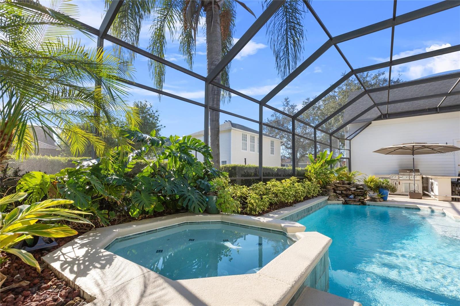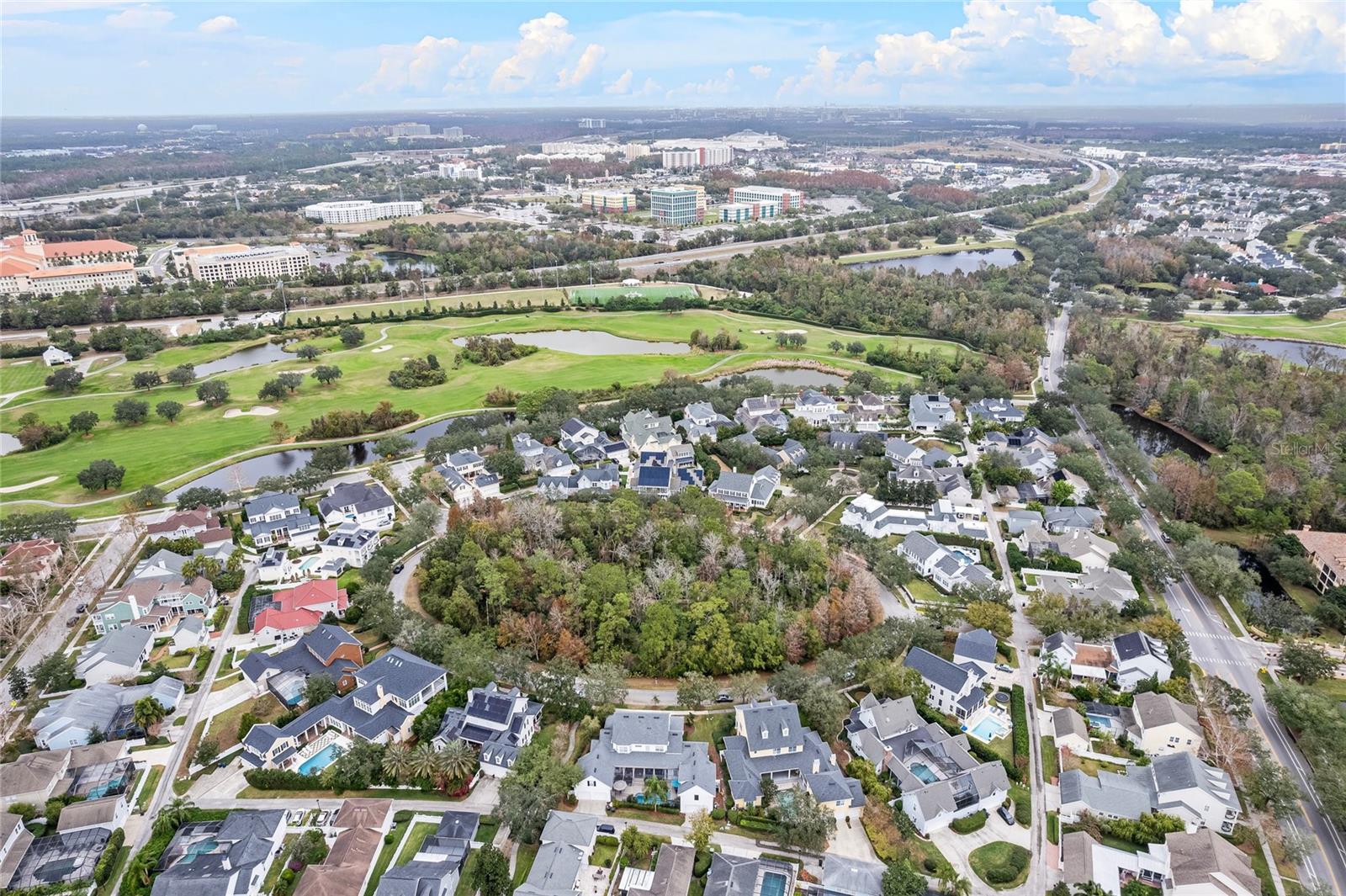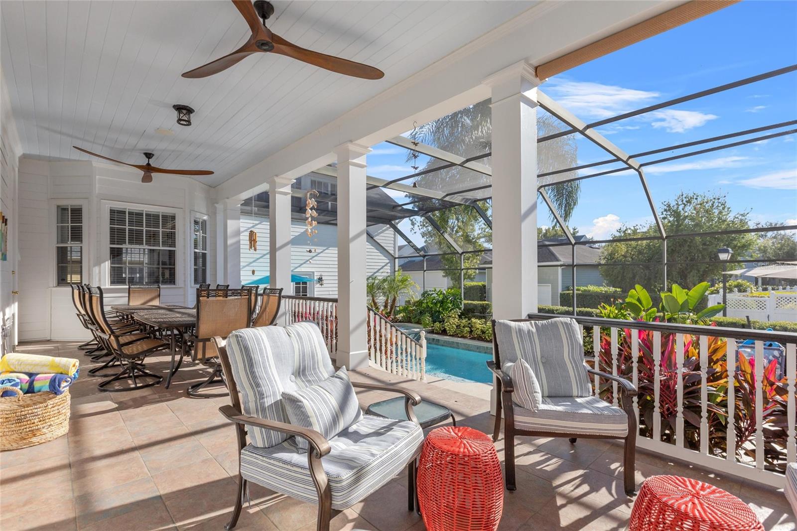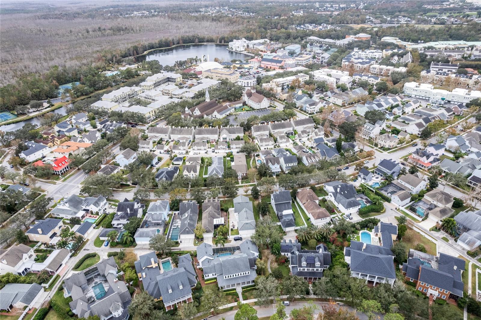 This custom-designed Estate coastal-style home, nestled in the heart of Celebration, Florida is located on one of the most coveted Main Village streets - just steps away from downtown restaurants & shops, and mere minutes from Walt Disney World. This exquisite 5-bedroom, 5.5-bathroom home offers over 5,000 square feet of living space and an array of recent enhancements including: two New Water Heaters (2024), Whole-home Water Softener system, Resurfaced Pool, an Outdoor Kitchen with stunning stone bar, grill, and mini-fridge — perfect for entertaining family and friends. ** BE SURE TO REVIEW THE 3D FLOOR PLAN - INTERACTIVE VISUAL TOUR ** The massive wrap-around Flagstone Porch faces lush conservation with a canopy of Mature Trees on a quiet street. Inside, the open floor plan showcases non-textured painted interiors and gleaming Wood Floors. The bright Chef’s Kitchen is a dream, featuring many new high-end appliances including a double refrigerator, oven (KitchenAid), cooktop and dishwasher (Bosch). Expansive wrap-around bar seating seamlessly connects the kitchen to the family room and eat-in area - with custom built-ins, a Gas Mini-Fireplace and picturesque views of the sparkling south-facing pool. The first-floor Primary Suite is your private retreat just off the family room, offering a sitting area, spa-like bathroom with its six-jet massage and rain shower, Two Walk-in Closets and a convenient stackable washer and dryer. Step directly from your suite to the screened patio and pool area for ultimate relaxation. Upstairs, three spacious bedrooms include a Second Primary Suite with a luxurious bath, and two bedrooms sharing a Jack-and-Jill bathroom. A versatile loft area at the top of the main staircase completes the second floor - perfect for relaxing or gaming. This property also features TWO OVERSIZED GARAGES with built-in shelving, accommodating up to FOUR VEHICLES. Above one garage is a bonus room with wood floors - perfect for an office, media room, or an additional bedroom. Above the other garage sits a studio apartment with private entrances from the pool patio or the garage interior, with a full kitchen, bathroom and closet space —ideal for guests or rental income. The backyard is a true oasis, boasting a Resurfaced Heated pool - with Waterfall and Spa - surrounded by lush landscaping, and an expansive patio with a newly added Outdoor Kitchen and Bar for al fresco dining.