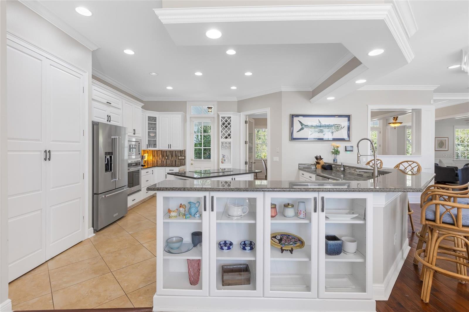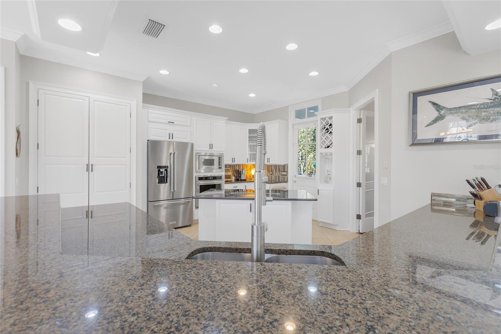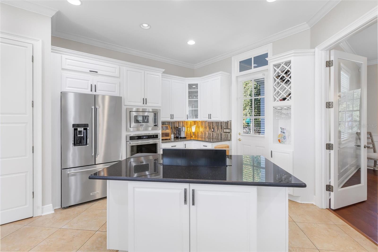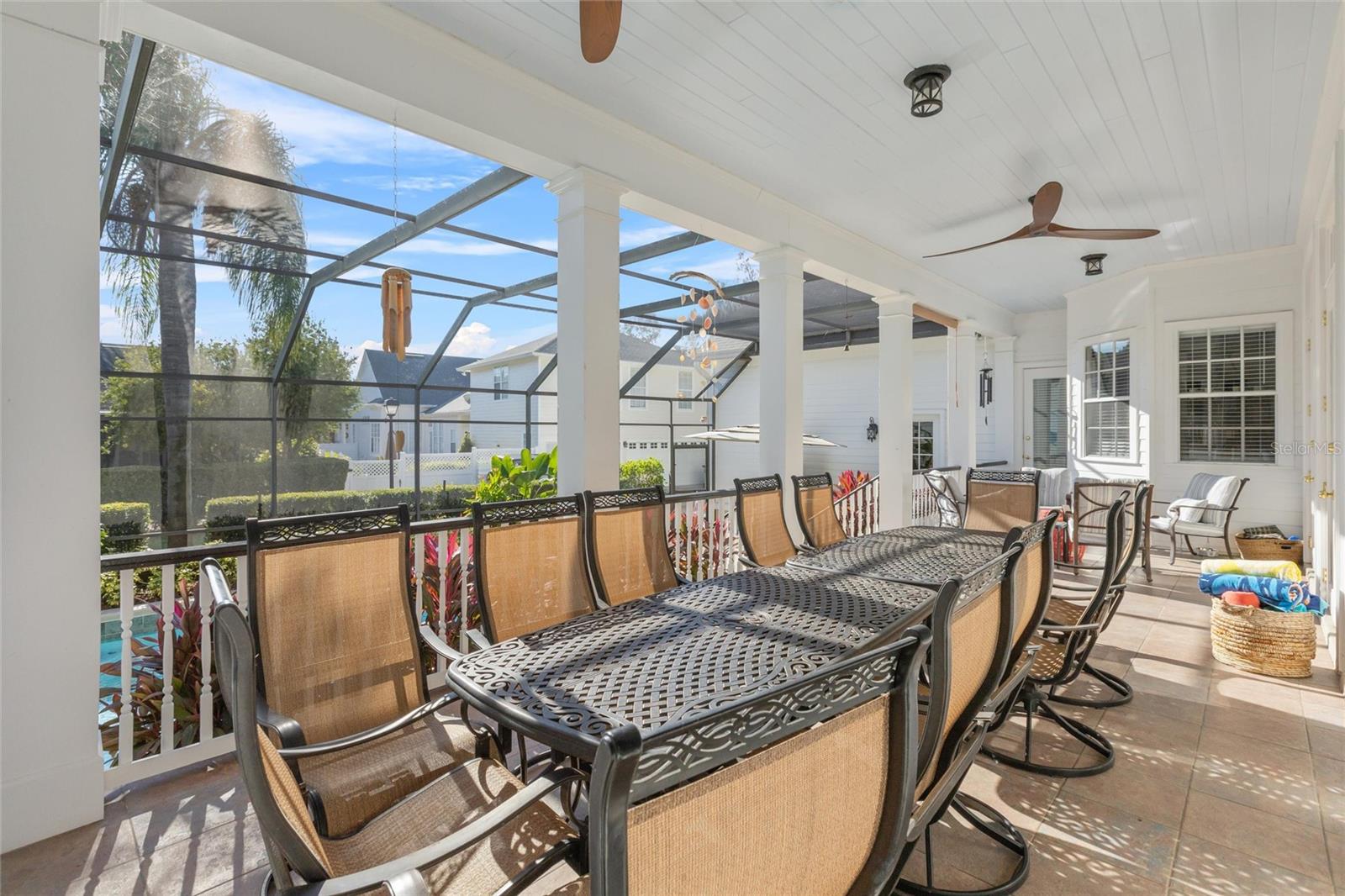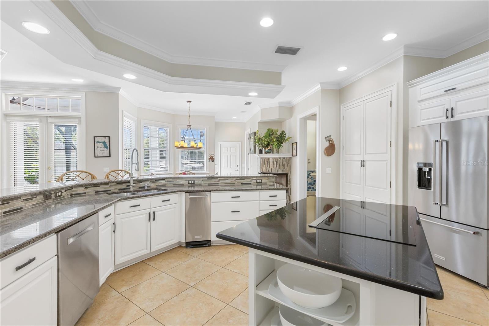 This custom-designed Estate coastal-style home, nestled in the heart of Celebration, Florida is located on one of the most coveted Main Village streets - just steps away from downtown restaurants & shops, and mere minutes from Walt Disney World. This exquisite 5-bedroom, 5.5-bathroom home offers over 5,000 square feet of living space and an array of recent enhancements including: two New Water Heaters (2024), Whole-home Water Softener system, Resurfaced Pool, an Outdoor Kitchen with stunning stone bar, grill, and mini-fridge — perfect for entertaining family and friends. ** BE SURE TO REVIEW THE 3D FLOOR PLAN - INTERACTIVE VISUAL TOUR ** The massive wrap-around Flagstone Porch faces lush conservation with a canopy of Mature Trees on a quiet street. Inside, the open floor plan showcases non-textured painted interiors and gleaming Wood Floors. The bright Chef’s Kitchen is a dream, featuring many new high-end appliances including a double refrigerator, oven (KitchenAid), cooktop and dishwasher (Bosch). Expansive wrap-around bar seating seamlessly connects the kitchen to the family room and eat-in area - with custom built-ins, a Gas Mini-Fireplace and picturesque views of the sparkling south-facing pool. The first-floor Primary Suite is your private retreat just off the family room, offering a sitting area, spa-like bathroom with its six-jet massage and rain shower, Two Walk-in Closets and a convenient stackable washer and dryer. Step directly from your suite to the screened patio and pool area for ultimate relaxation. Upstairs, three spacious bedrooms include a Second Primary Suite with a luxurious bath, and two bedrooms sharing a Jack-and-Jill bathroom. A versatile loft area at the top of the main staircase completes the second floor - perfect for relaxing or gaming. This property also features TWO OVERSIZED GARAGES with built-in shelving, accommodating up to FOUR VEHICLES. Above one garage is a bonus room with wood floors - perfect for an office, media room, or an additional bedroom. Above the other garage sits a studio apartment with private entrances from the pool patio or the garage interior, with a full kitchen, bathroom and closet space —ideal for guests or rental income. The backyard is a true oasis, boasting a Resurfaced Heated pool - with Waterfall and Spa - surrounded by lush landscaping, and an expansive patio with a newly added Outdoor Kitchen and Bar for al fresco dining.